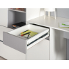 Письменный стол Торонто удачно дополнит интерьер современной комнаты. На просторной столешнице помещается ноутбук и необходимые в работе материалы. Модель дополнена тумбой для хранения различных канцелярских мелочей. Небольшие зазоры позволяют отказаться от привычных ручек и легко открывать ящик и дверцу за край фасада.