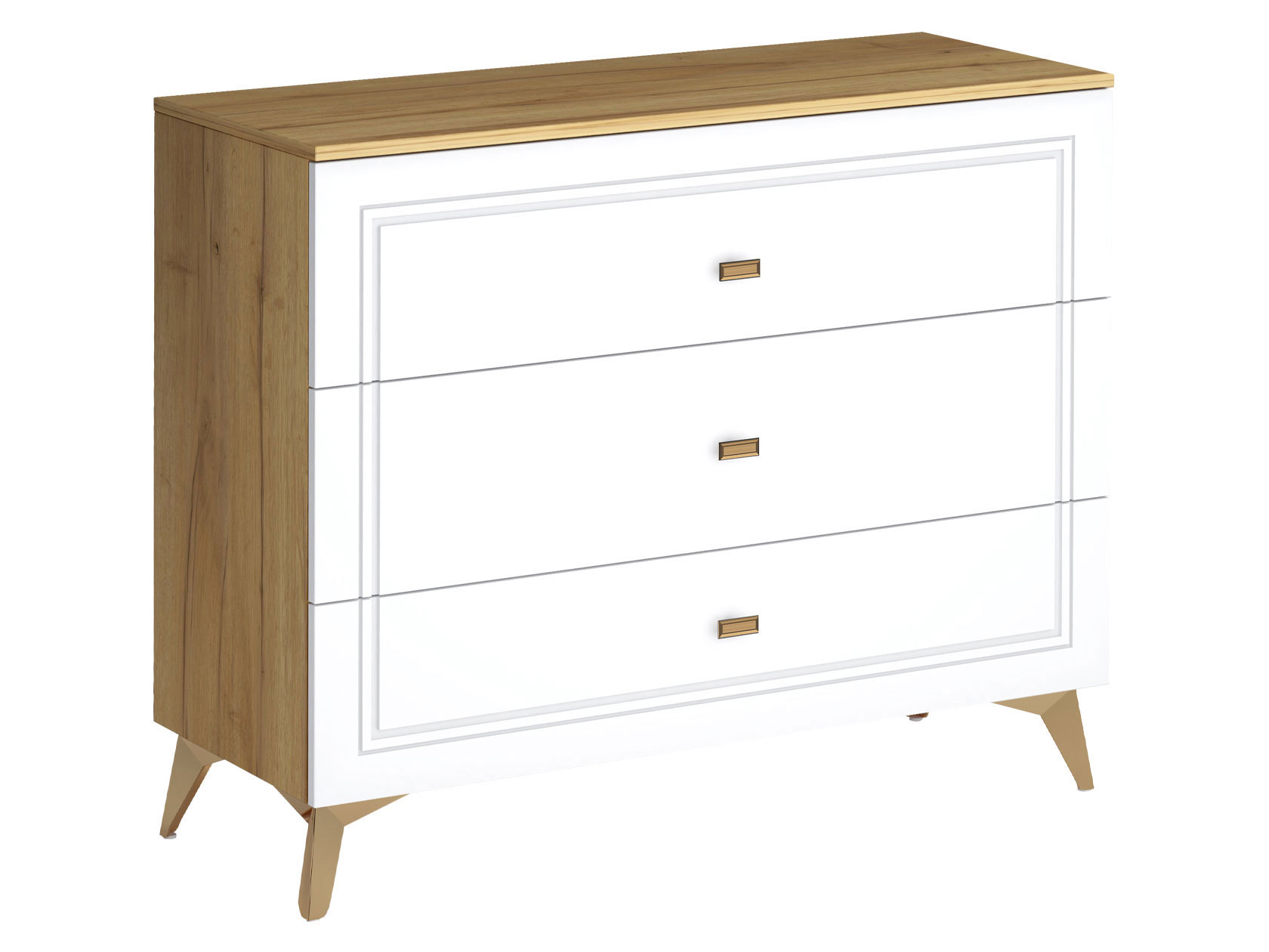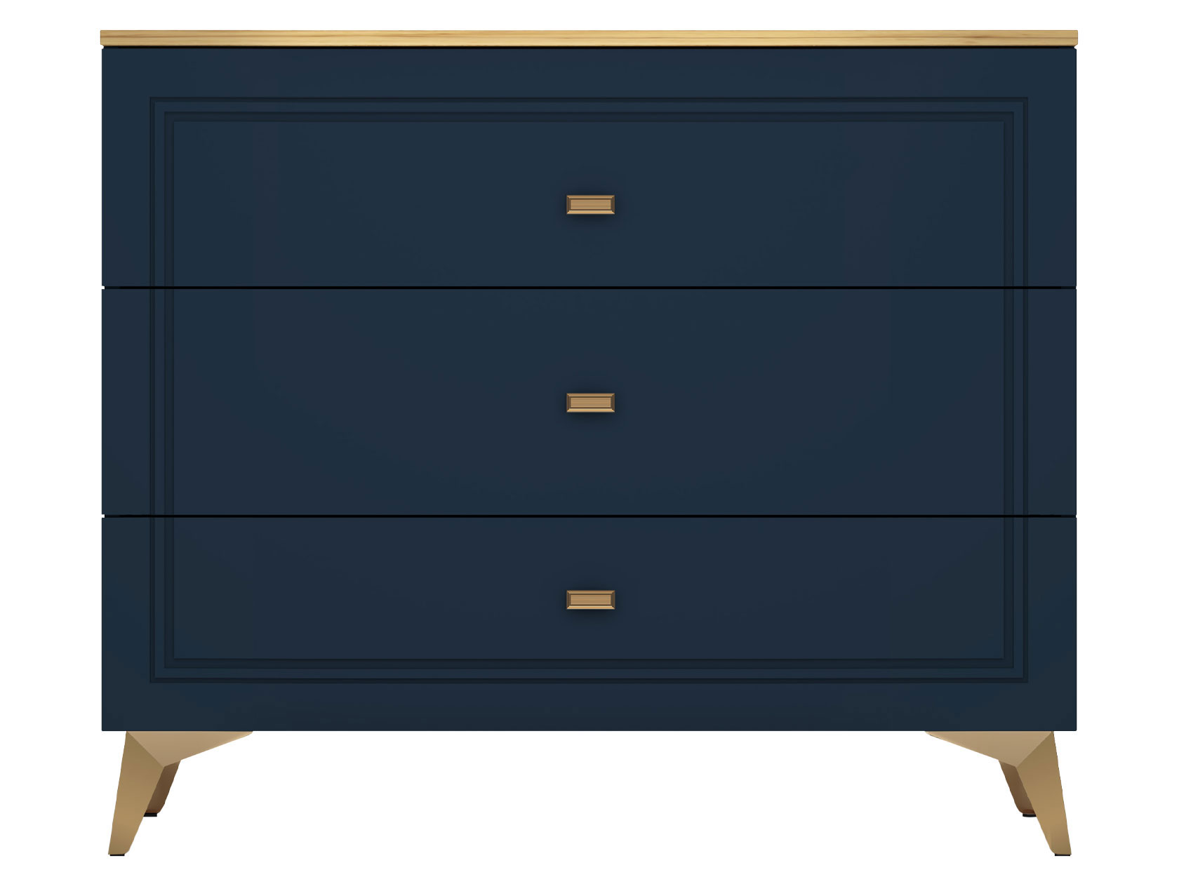 Комод Вега Сапфир оснащен тремя широкими ящиками, которые помогут поддерживать порядок в вещах. Высокие ножки служат эффектным акцентом модели и упрощают уборку. Тонкие линии фрезеровки и миниатюрные ручки в золотом декоре создают элегантный облик.