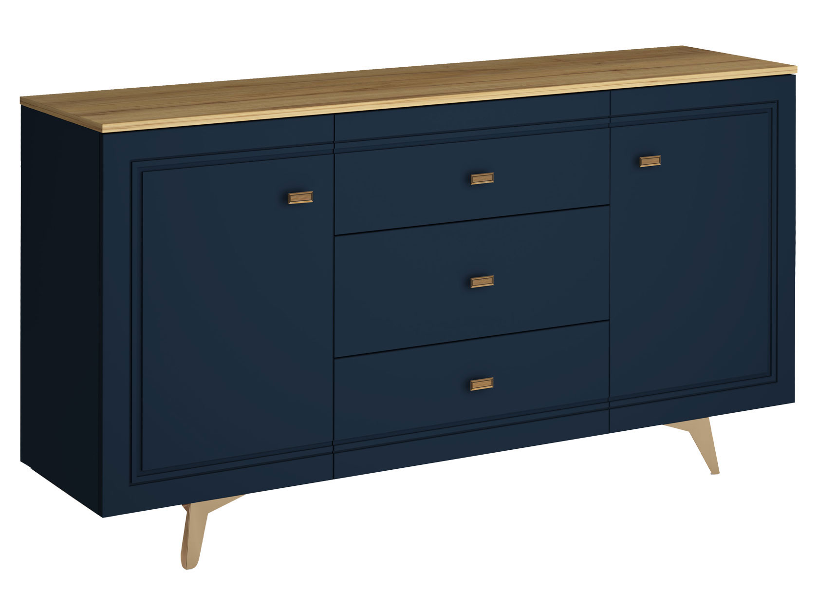 Комод Вега Сапфир — эстетичная модель с комбинированным наполнением. Фасады декорированы элегантной фрезеровкой и миниатюрными ручками в оттенке золота. Эффектный облик завершают оригинальные акцентные ножки. В ящиках и на полках удобно хранить самые разные вещи и предметы обихода.