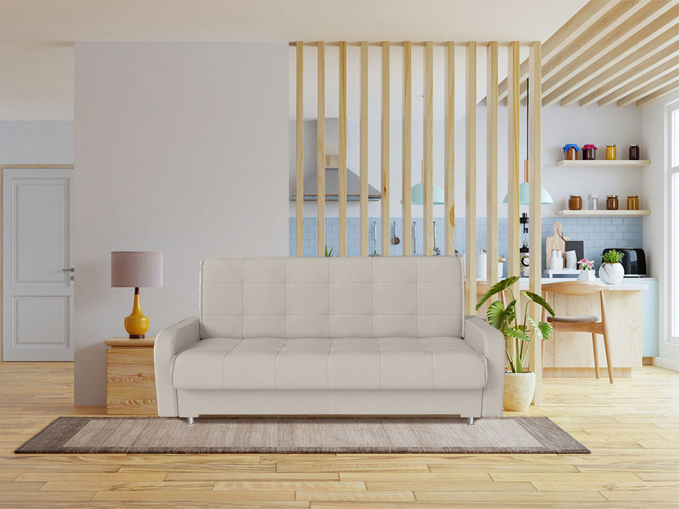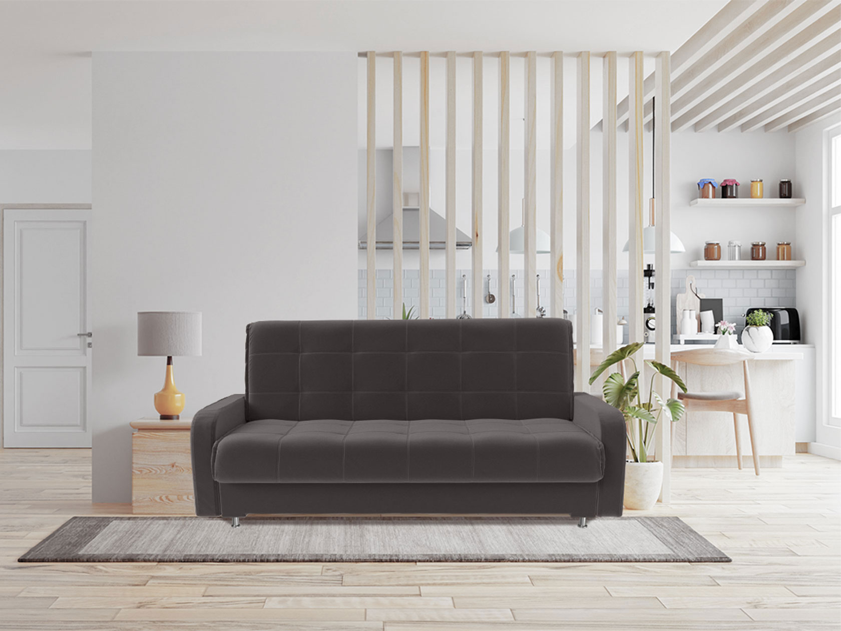 Прямой диван Норман украсит интерьер гостиной, спальни или детской. Дизайн с симметричной прострочкой подчеркивает лаконичный силуэт модели и адаптируется под разные интерьерные стили. Благодаря простому механизму диван легко раскладывается и образует ровное спальное место. Бельевой короб подходит для хранения различных принадлежностей.