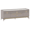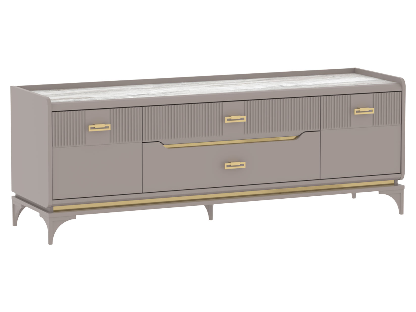 Гостиная Сиде оживит и украсит интерьер. Вставки из затемненного стекла, фрезеровка на фасадах в виде строгих линий и фурнитура в золотом оттенке придают мебели роскошный вид. В наборе есть всё необходимое, чтобы обустроить место для мультимедийной техники и хранения личных вещей.