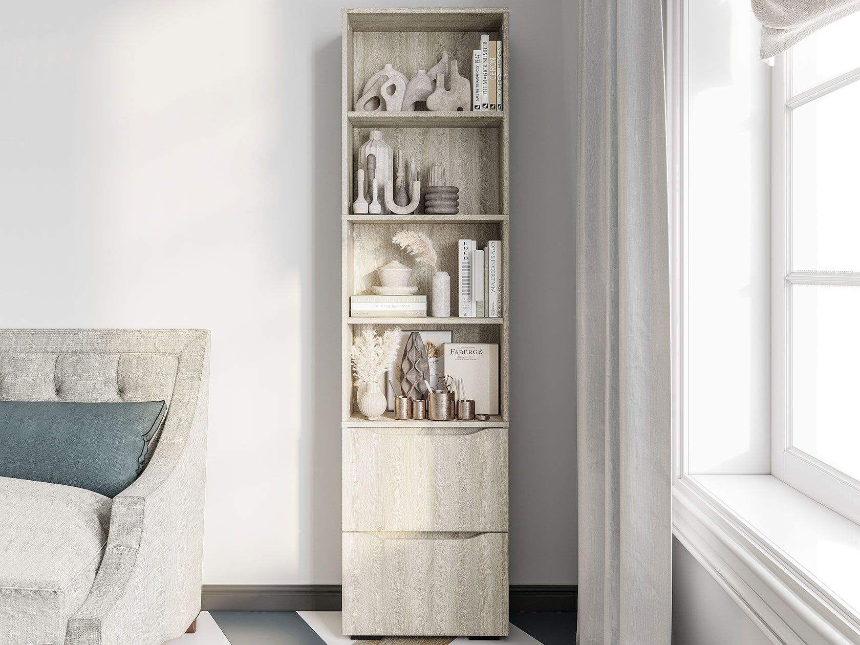 Стеллаж Оливер расширит систему хранения и придаст интерьеру визуальную легкость. На полках можно разместить книги, рамки с фотографиями и всё то, что должно находиться в быстром доступе. Фасады скроют от посторонних глаз бытовые мелочи и личные вещи.