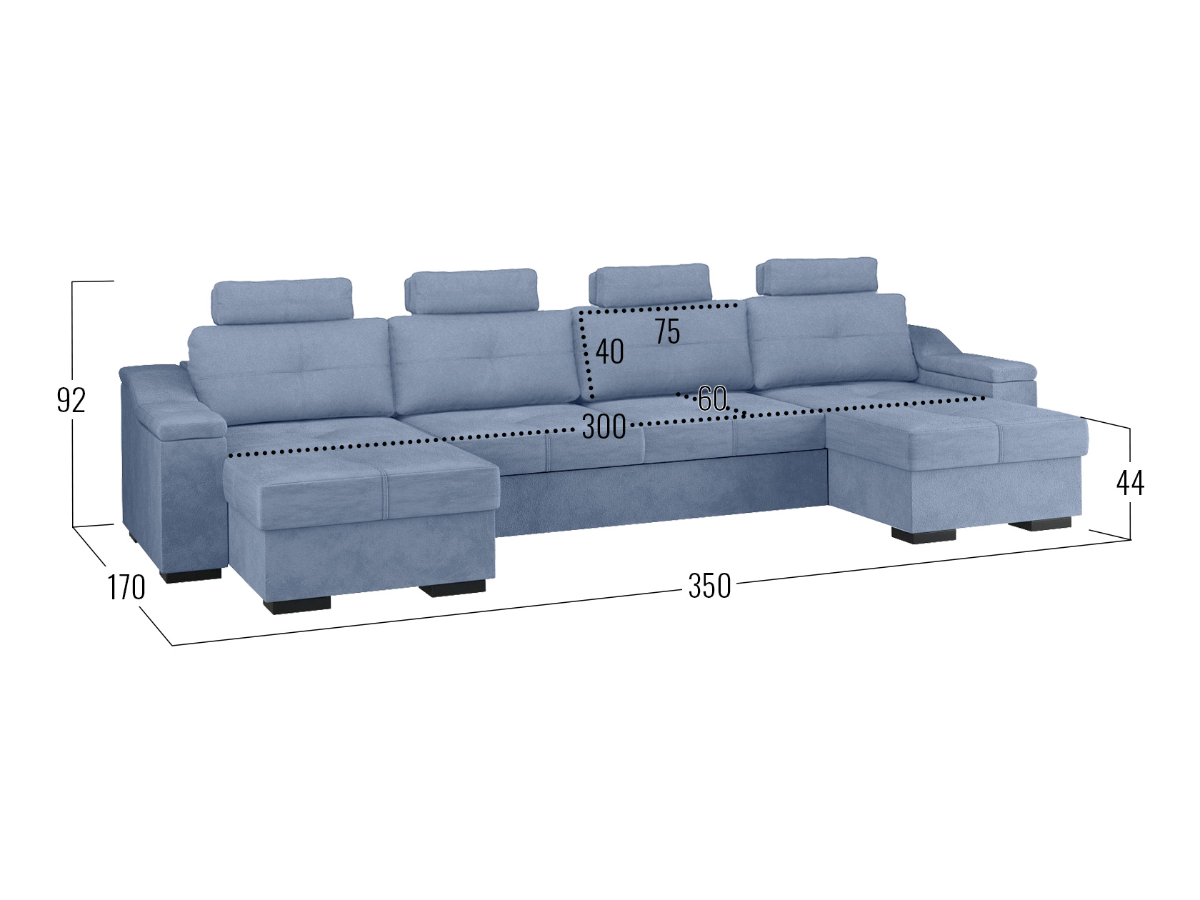 Потрясающе просторный П-образный диван с оттоманками Триумф — максимально функциональный и комфортабельный предмет мебели, который займет центральное место в интерьере. Мягкие подушки с удобными подголовниками создадут уютные островки для отдыха и любимых занятий, а ниши для хранения позаботятся о порядке в комнате.