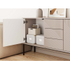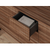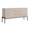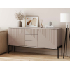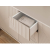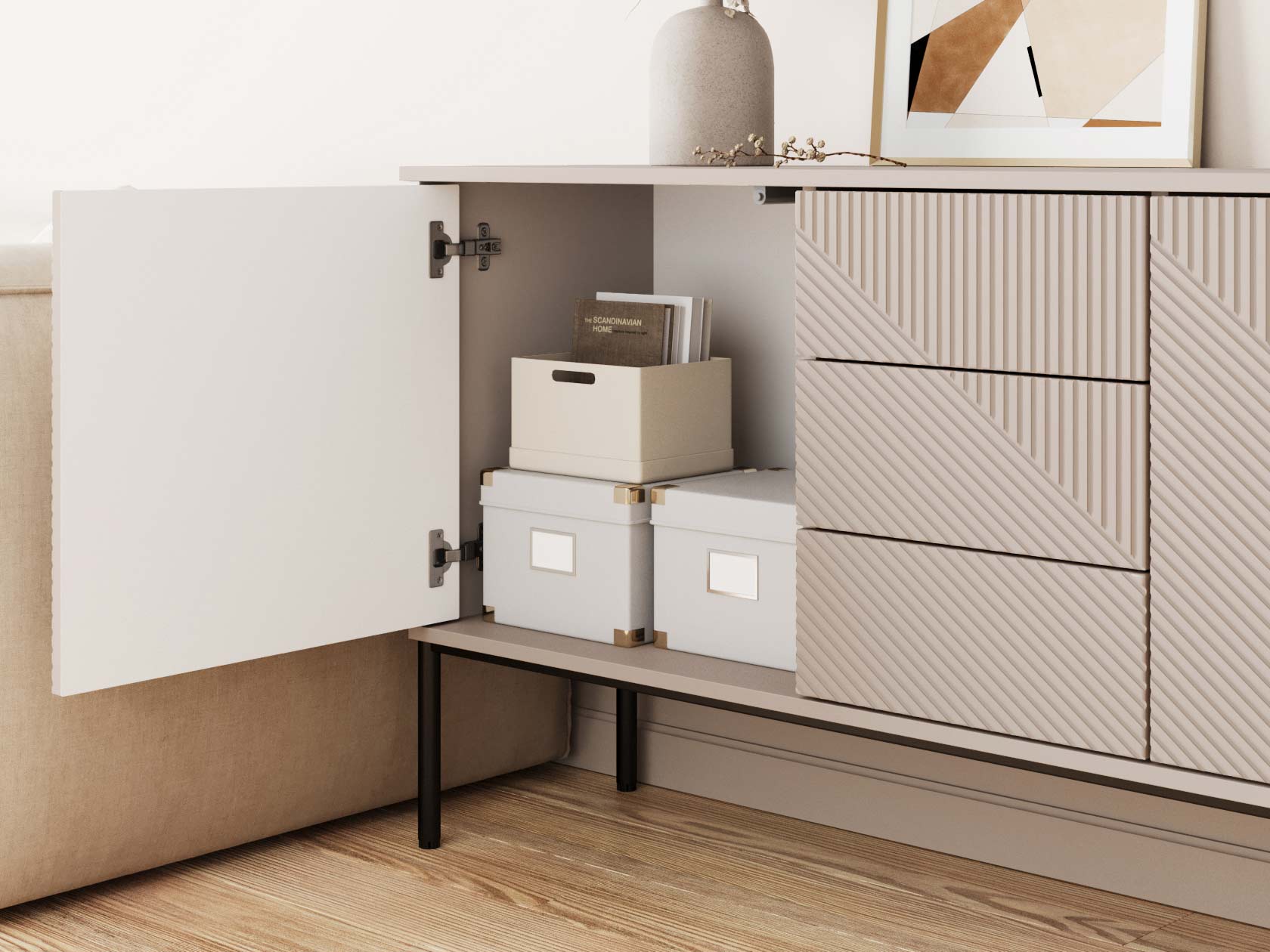 Комод Азуми 3 ящ 2 дв — прекрасный способ упорядочить хранение вещей и разнообразить интерьер. Фрезеровка на фасадах выполнена в виде геометрического узора. Такой дизайн актуален и очень привлекателен. Благодаря высоким опорам комод смотрится невесомо и подходит даже для небольшой комнаты.