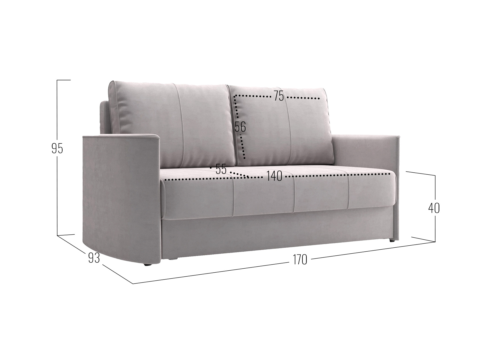 Посадочное место без подушек (ВхГ): 140 х 77 см.