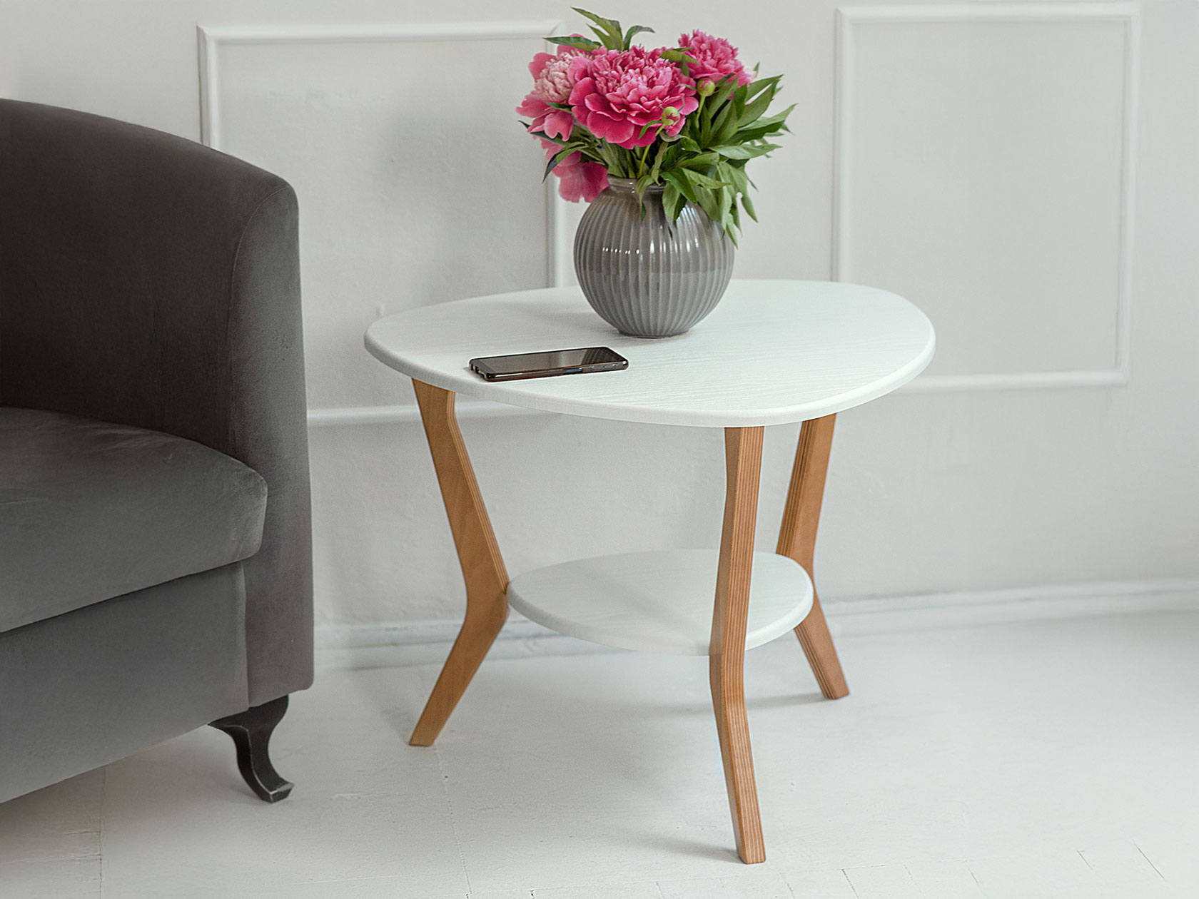 Журнальный столик Бьюти 15 — идеальное решение для меблировки зоны отдыха. Форма мягкого треугольника элегантно смотрится в большинстве интерьеров. Ножки изготовлены из массива натурального дерева, который всегда роскошно выглядит. Модель удобно использовать, чтобы сервировать еду и напитки.