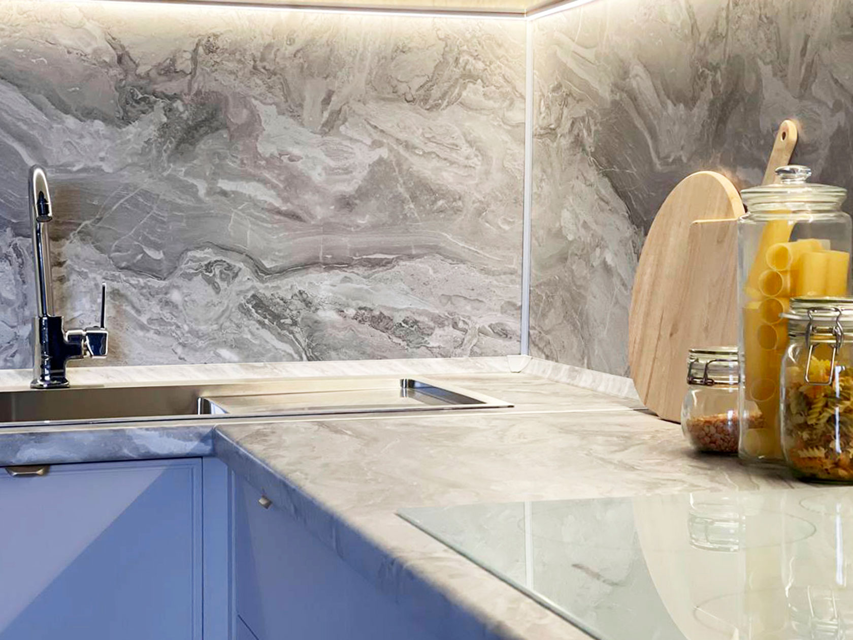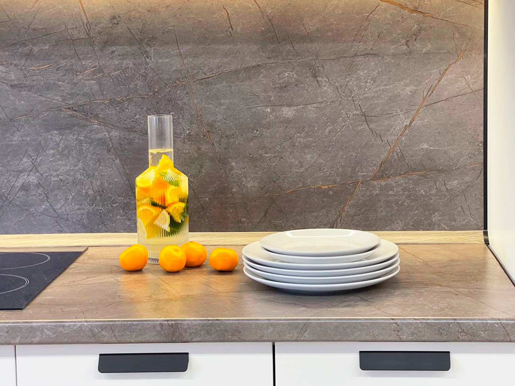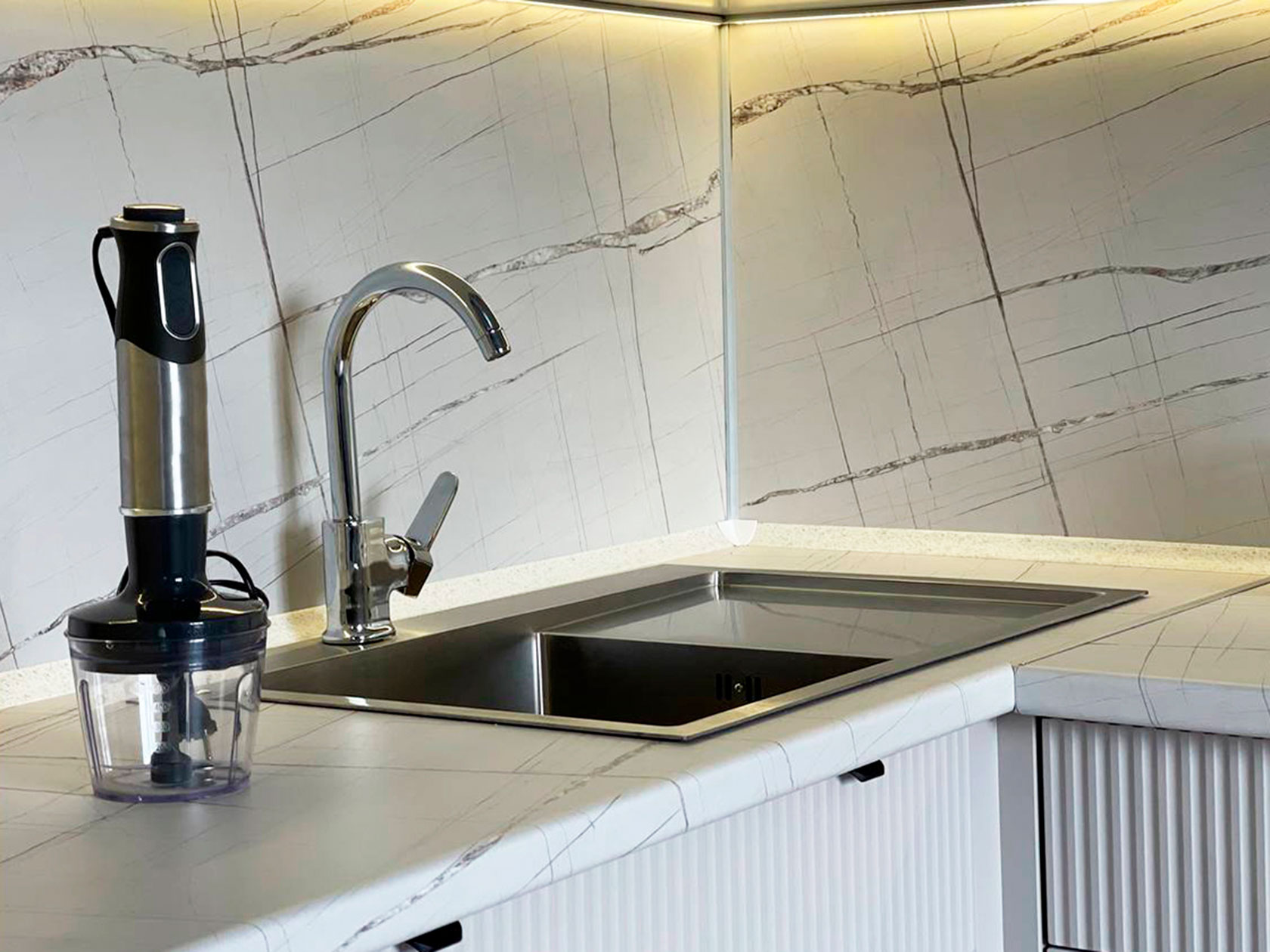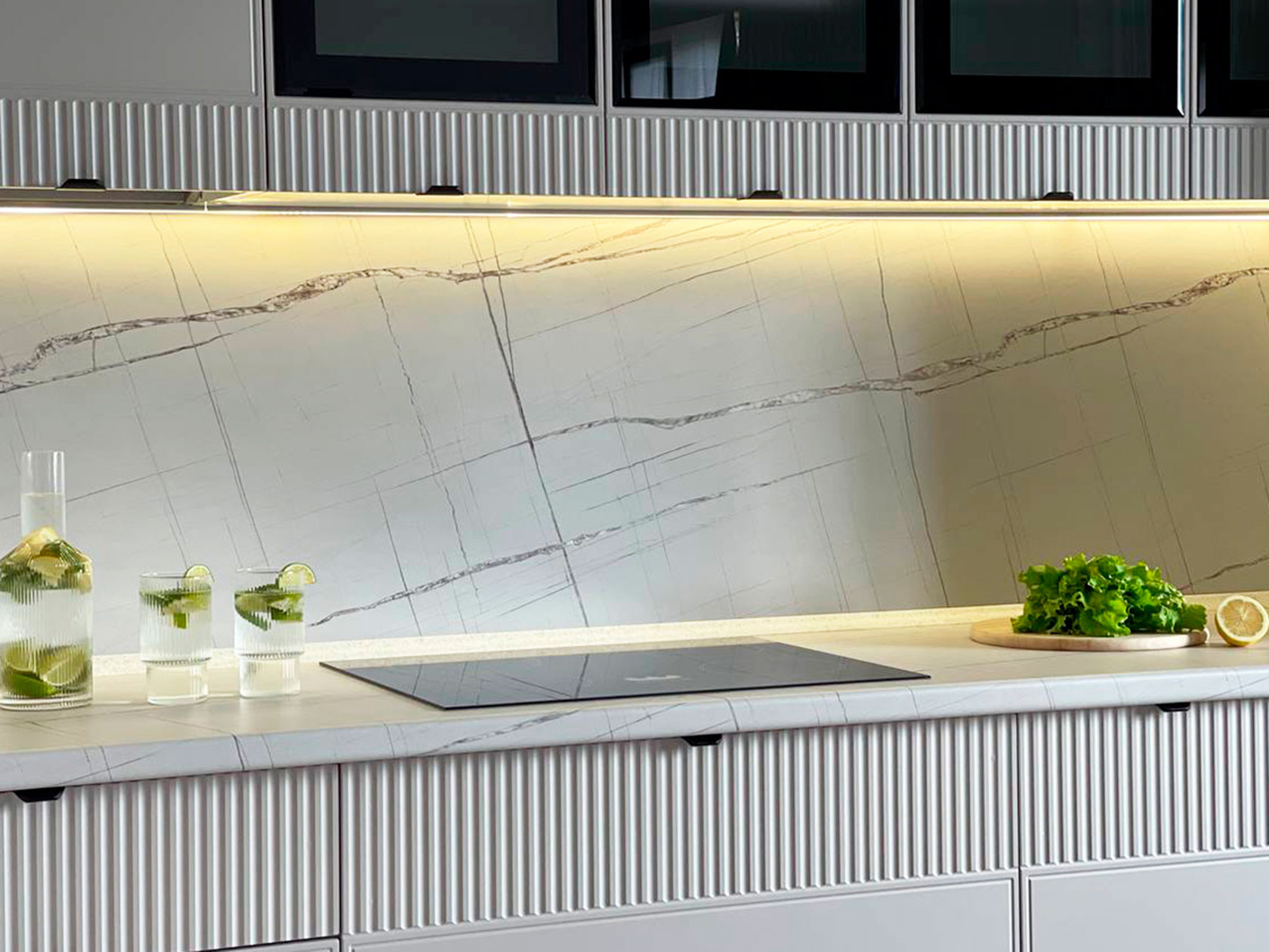 Стеновая панель поможет создать оригинальную и стильную обстановку кухонного пространства. Материал устойчив к царапинам, воздействию влаги и перепадам температур, что особенно важно при приготовлении пищи. Возможность выбора матовой или глянцевой поверхности придаёт кухне индивидуальный стиль.