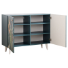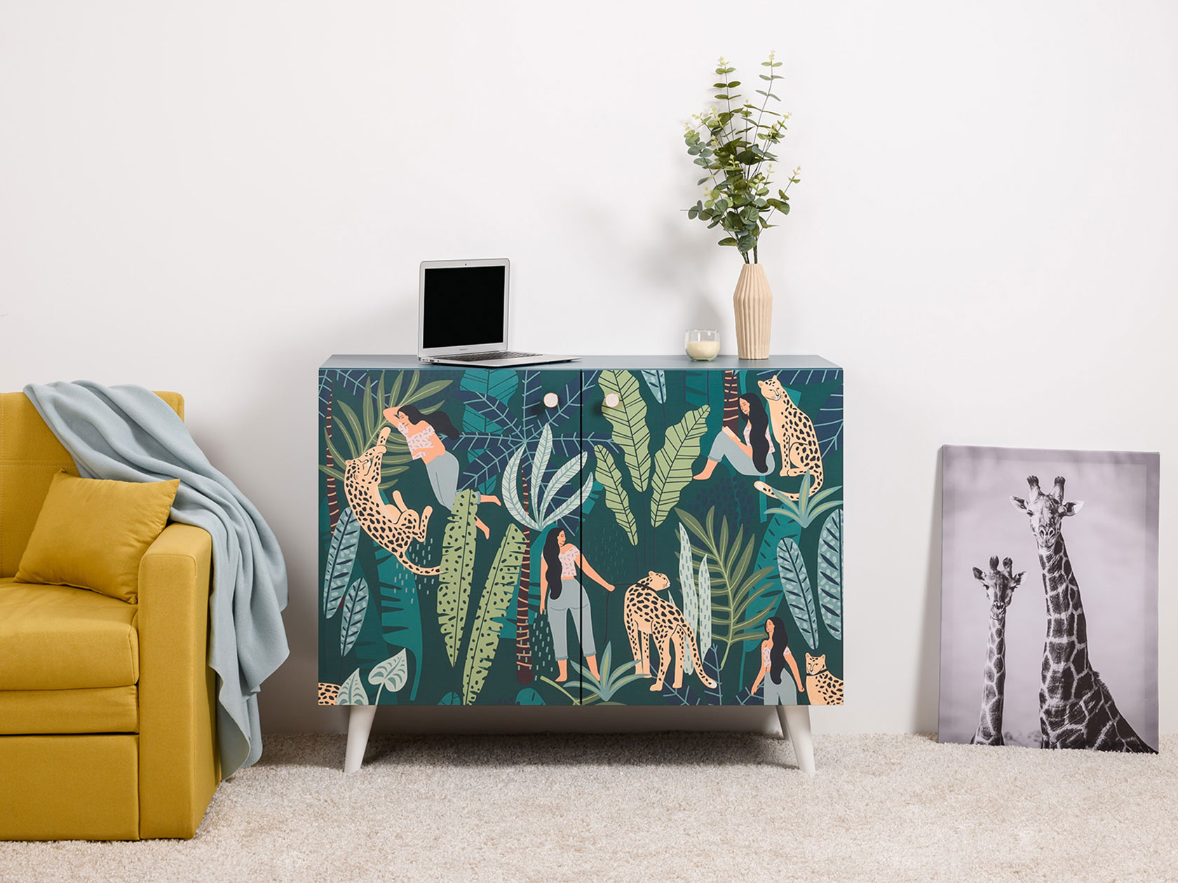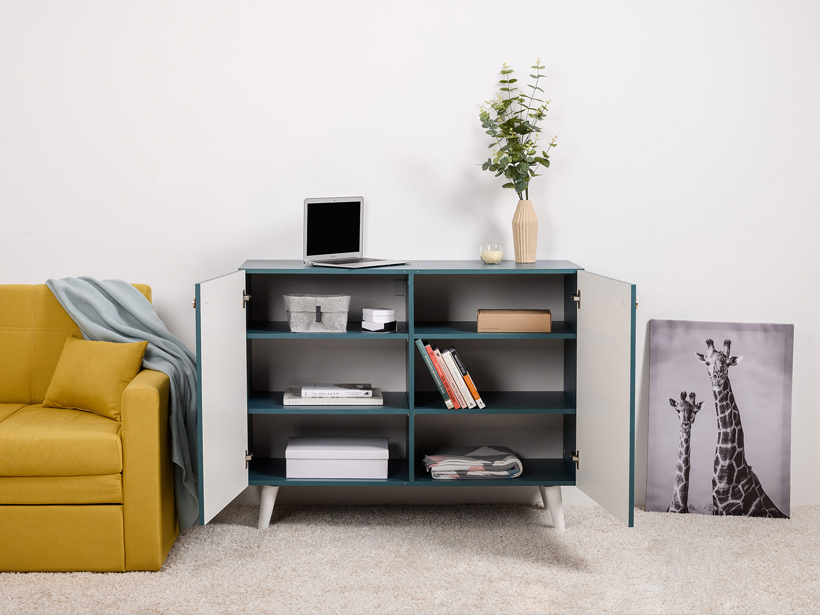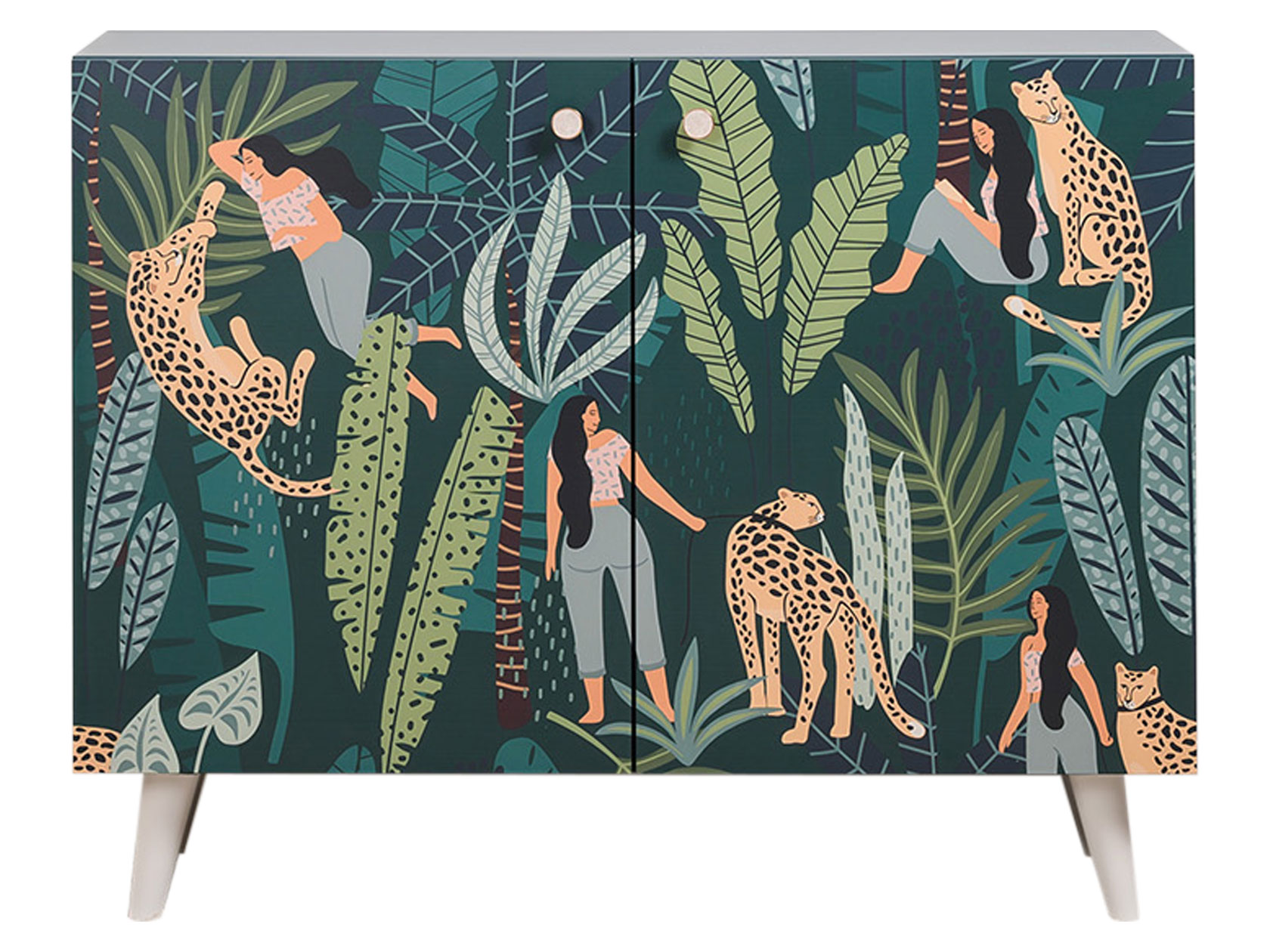 Комод Либера станет ярким украшением современного интерьера. За распашными дверцами находятся вместительные полки, где удобно хранить одежду, книги, постельное белье и аксессуары. Деревянные ножки в основании, расположенные под небольшим наклоном, позволяют легко проводить уборку. Фасады декорированы стильным принтом, который сделает комод эксклюзивным элементом меблировки.