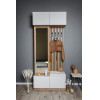 Прихожая Бостон — компактный и практичный вариант размещения верхней одежды и обуви в небольшой комнате. Модель включает несколько отделений за распашными фасадами, удобные крючки, большое зеркало и мягкое сиденье.