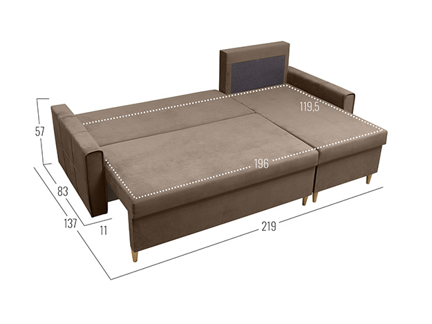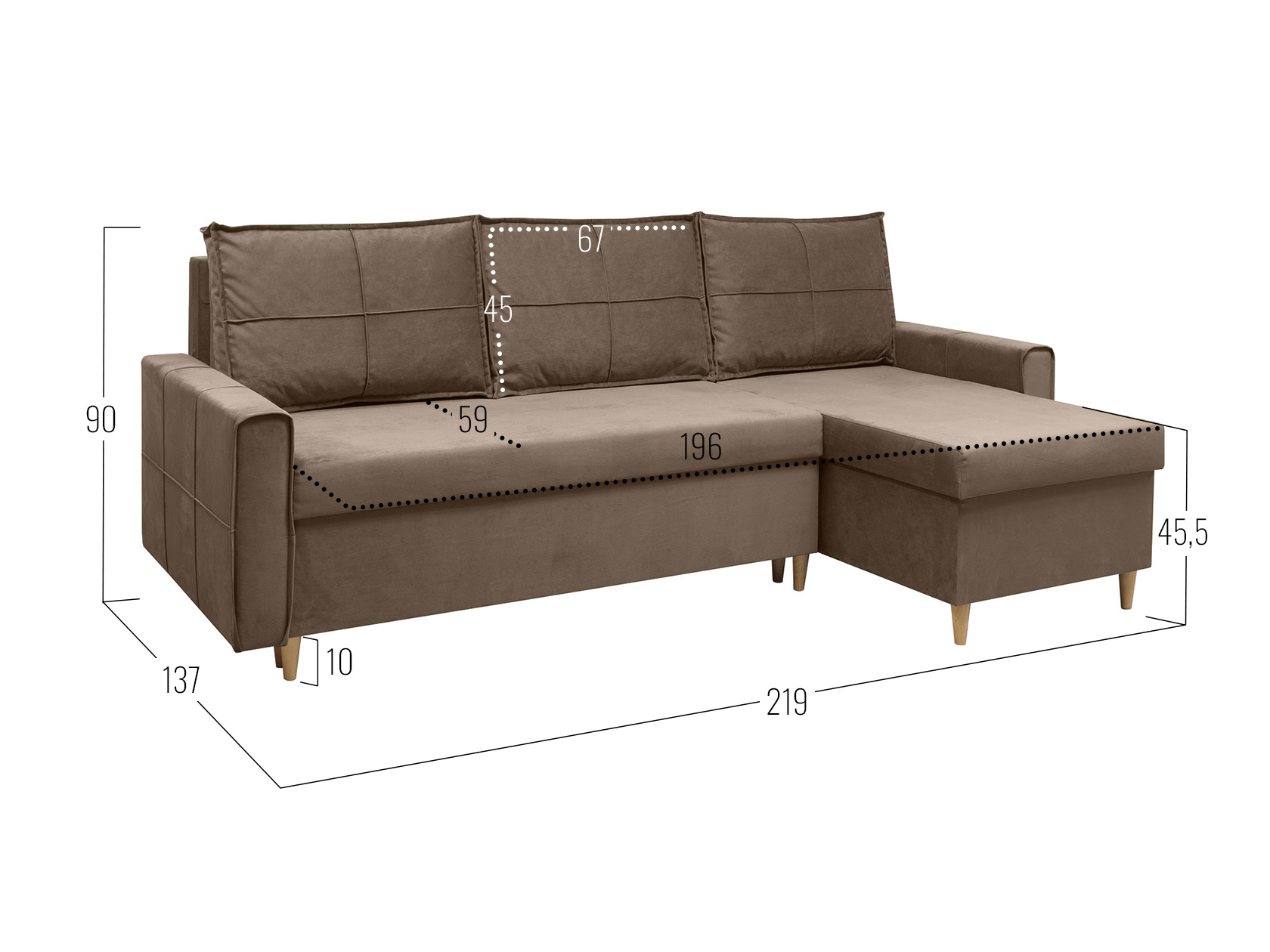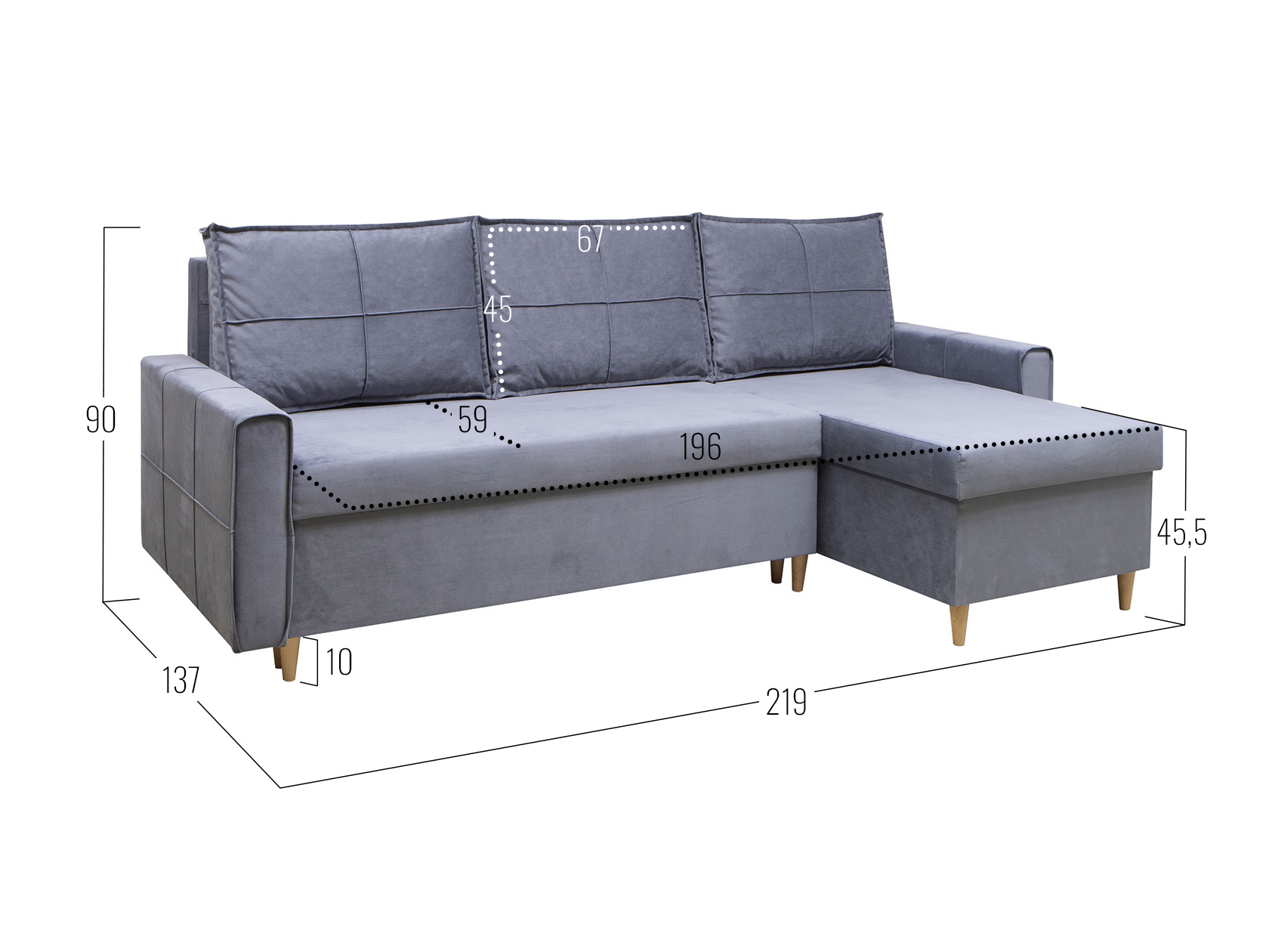 Угловой диван Толедо гармонично дополнит интерьер современной гостиной. На нём можно расположиться сидя или полулежа. Декоративная строчка подчеркивает лаконичный дизайн мебели. Мягкие приспинные подушки обеспечат удобную посадку и поддержку спины. Простой механизм позволяет трансформировать модель в спальное место, которое по комфорту сравнимо с полноценной кроватью. Невысокие ножки и ящик для белья обеспечивают дополнительные преимущества дивана.