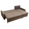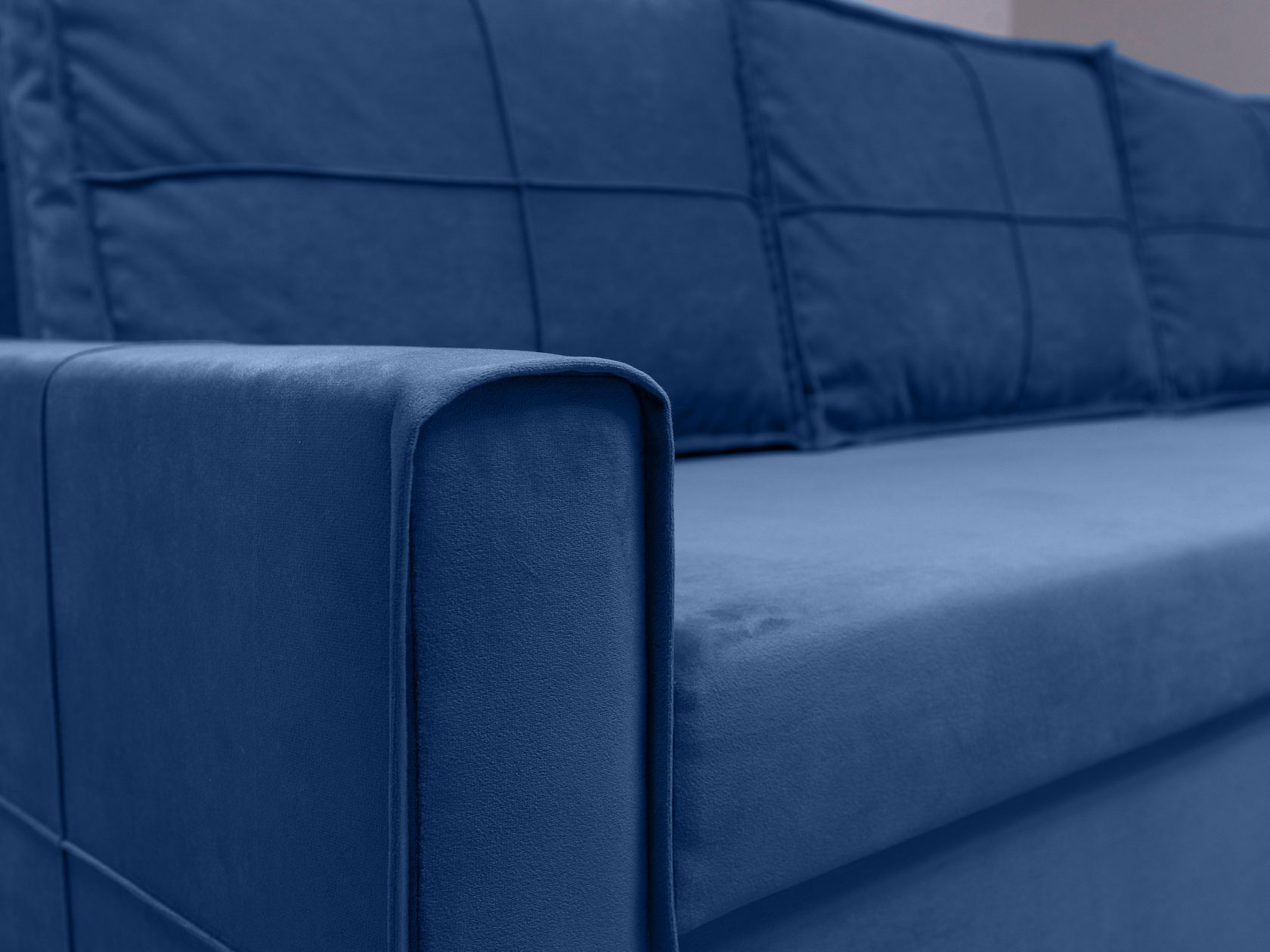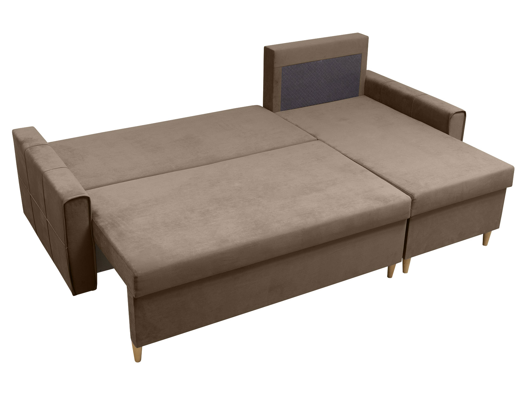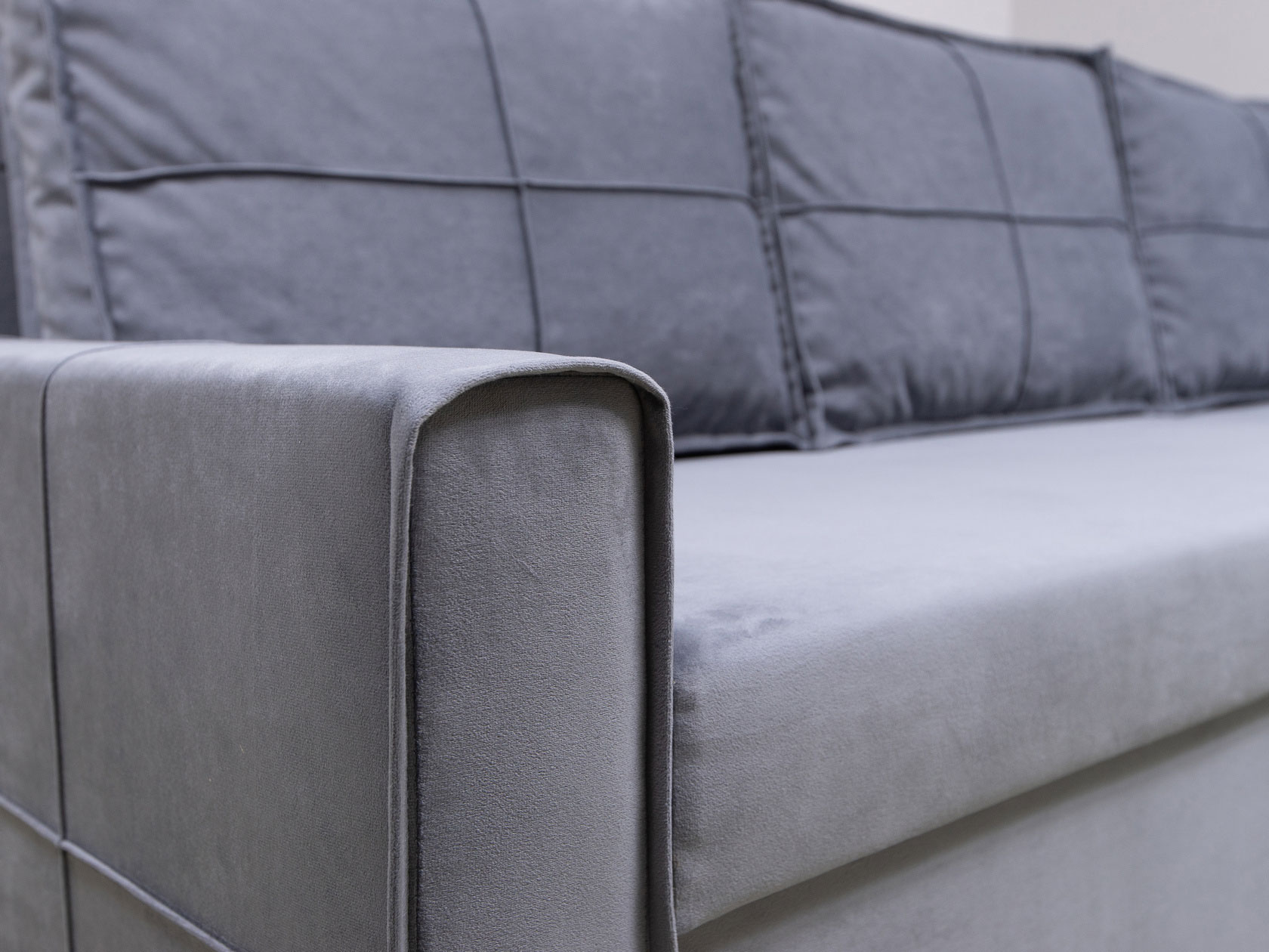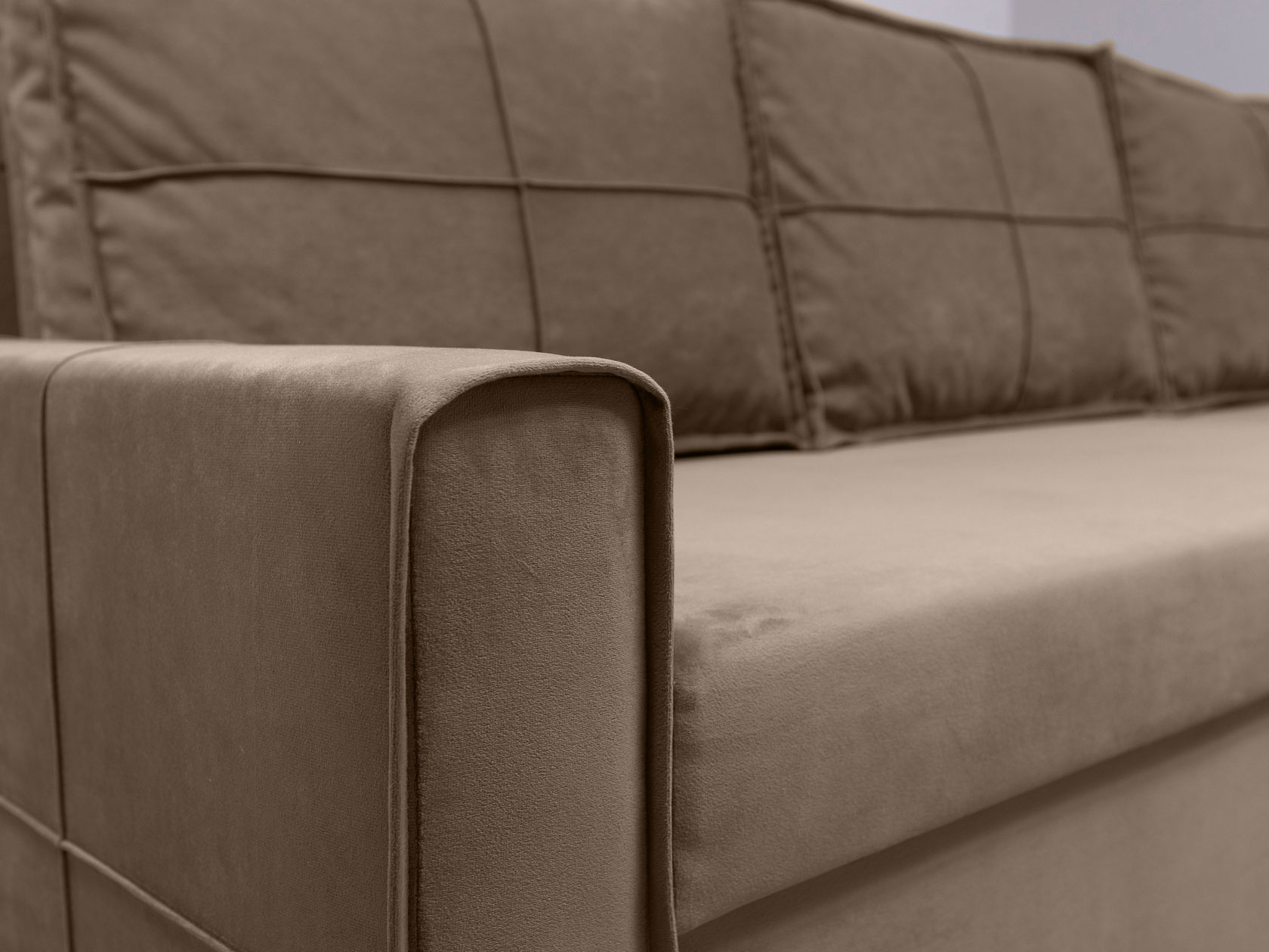 Угловой диван Толедо гармонично дополнит интерьер современной гостиной. На нём можно расположиться сидя или полулежа. Декоративная строчка подчеркивает лаконичный дизайн мебели. Мягкие приспинные подушки обеспечат удобную посадку и поддержку спины. Простой механизм позволяет трансформировать модель в спальное место, которое по комфорту сравнимо с полноценной кроватью. Невысокие ножки и ящик для белья обеспечивают дополнительные преимущества дивана.