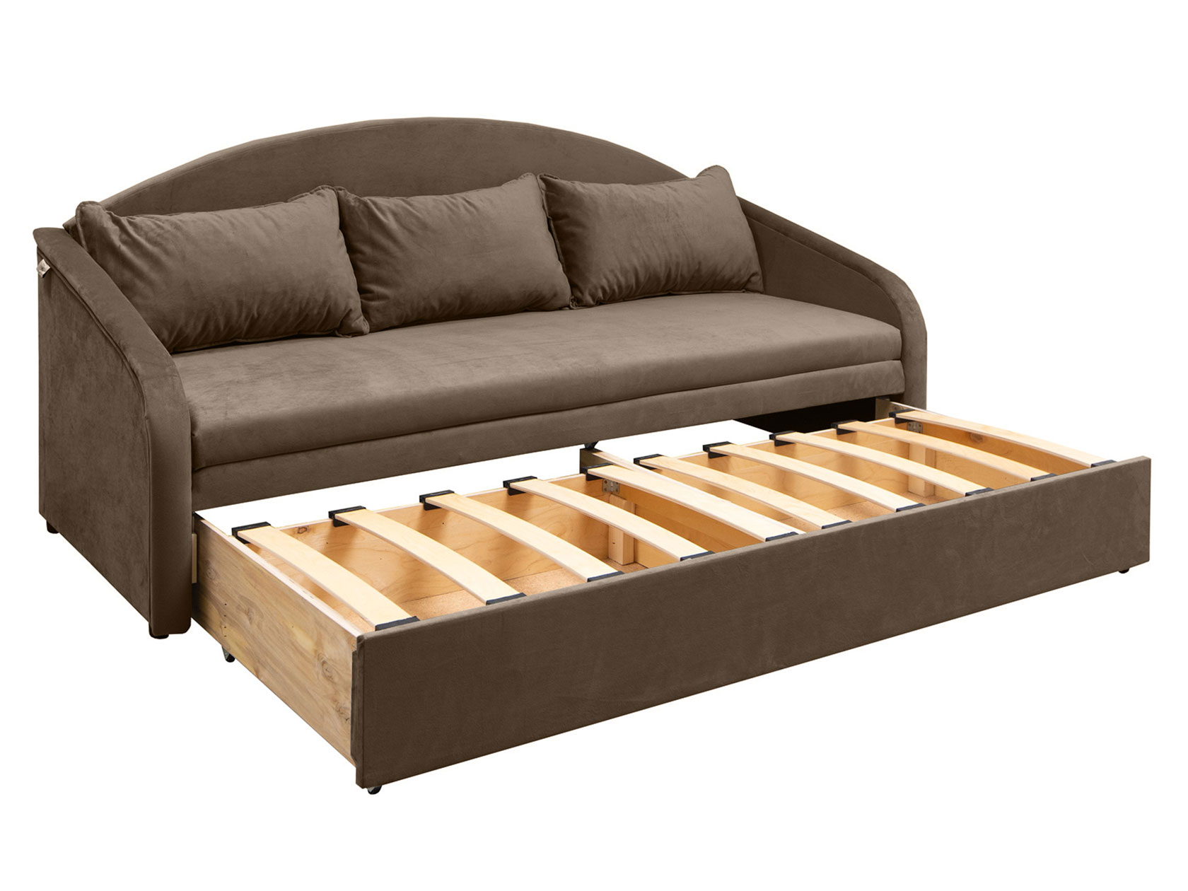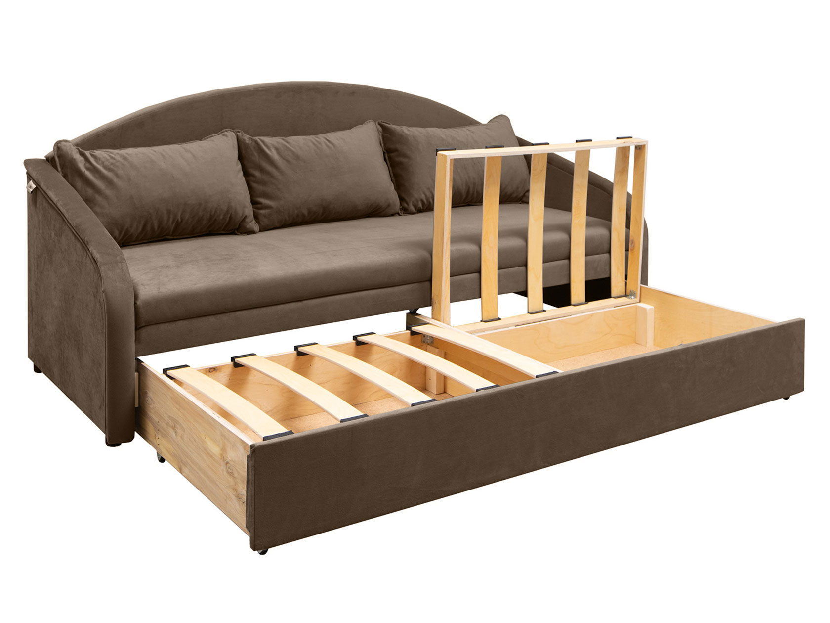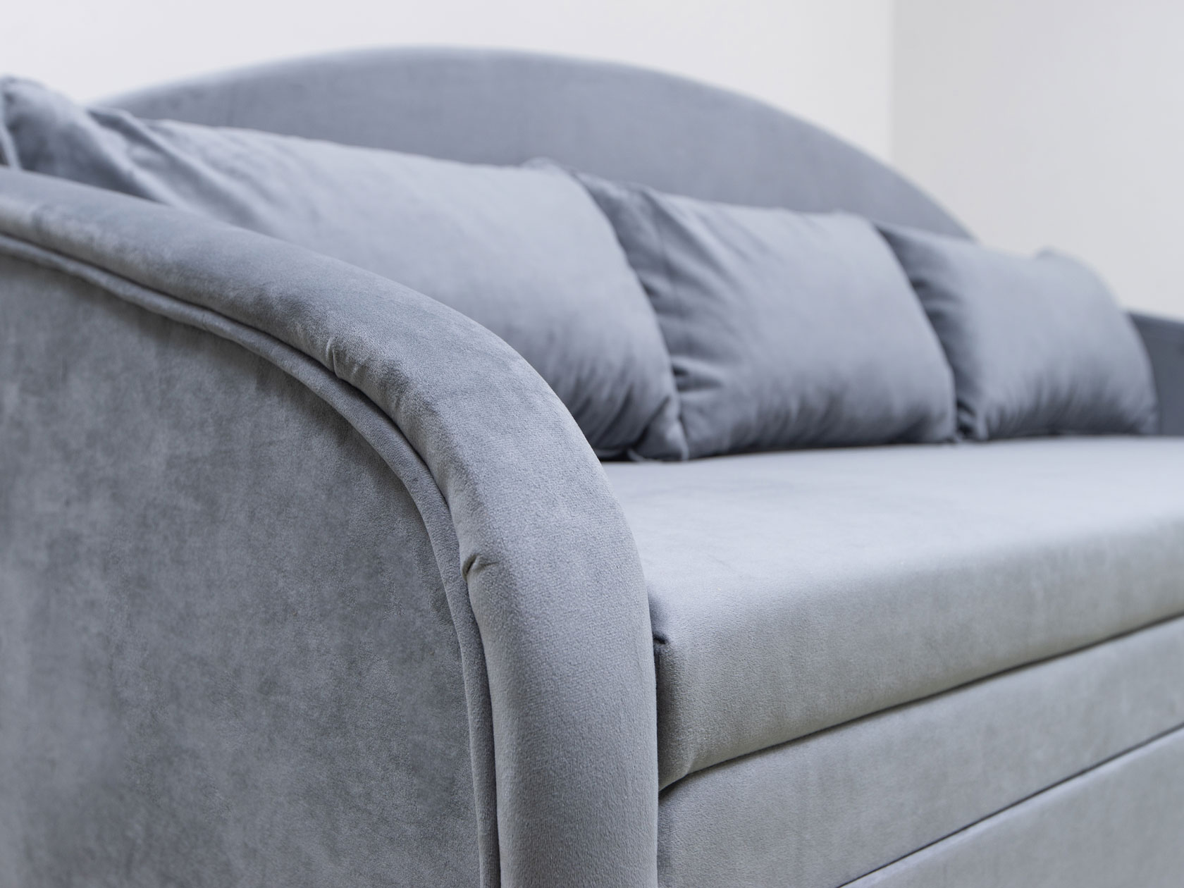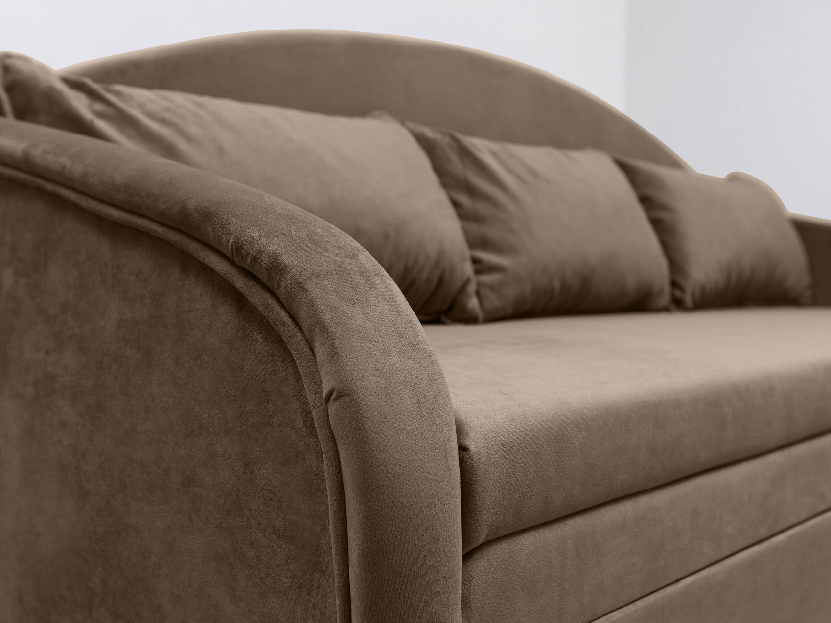 Прямой диван Вито идеален для небольшой зоны отдыха. Компактная модель с приспинными подушками послужит уютным уголком для релакса. Плавные линии подлокотников подчеркивает декоративный кант в тон обивки. Диван легко раскладывается, превращаясь в просторную двуспальную кровать. В бельевом ящике удобно хранить постельные принадлежности, когда модель сложена.