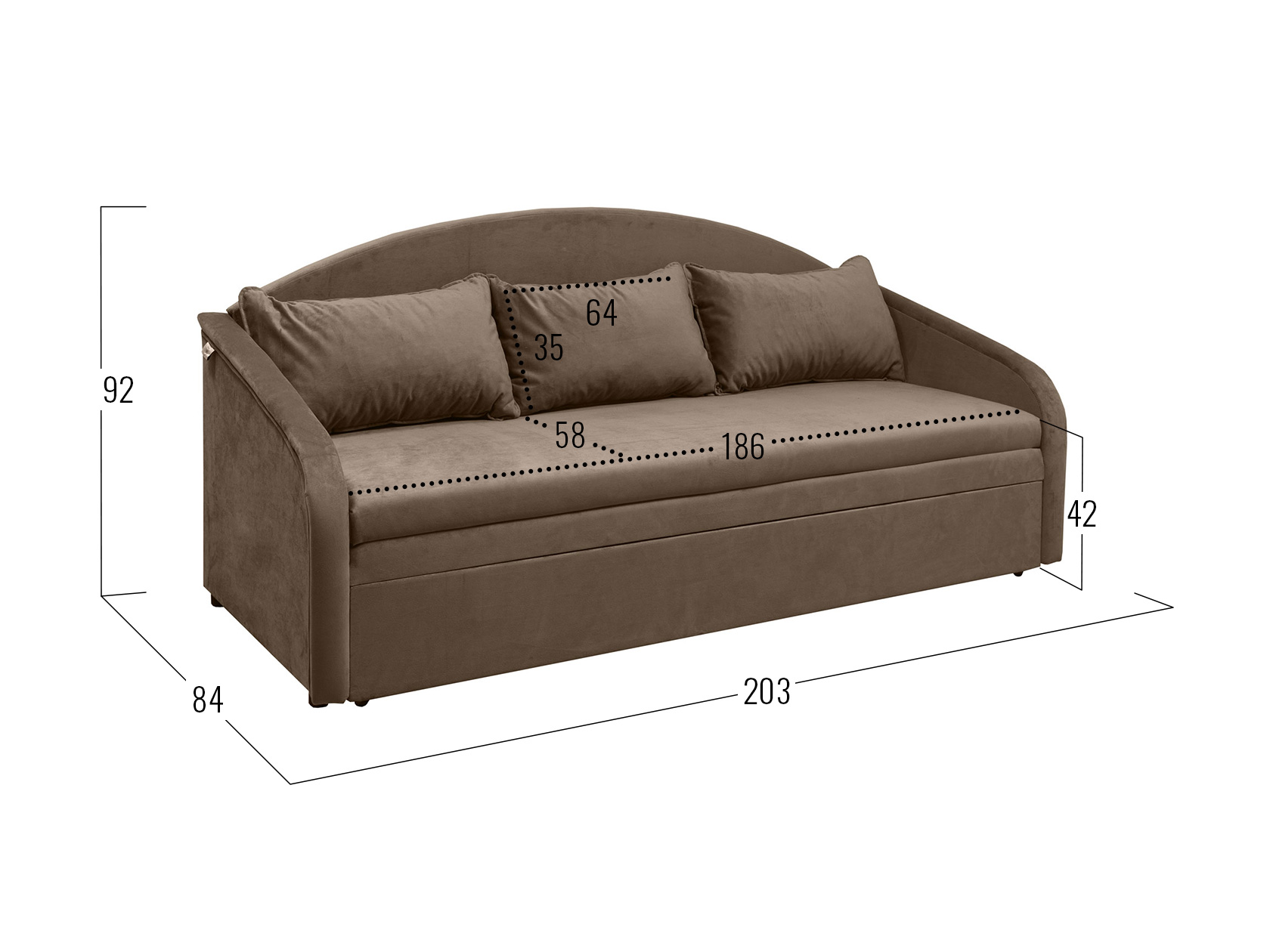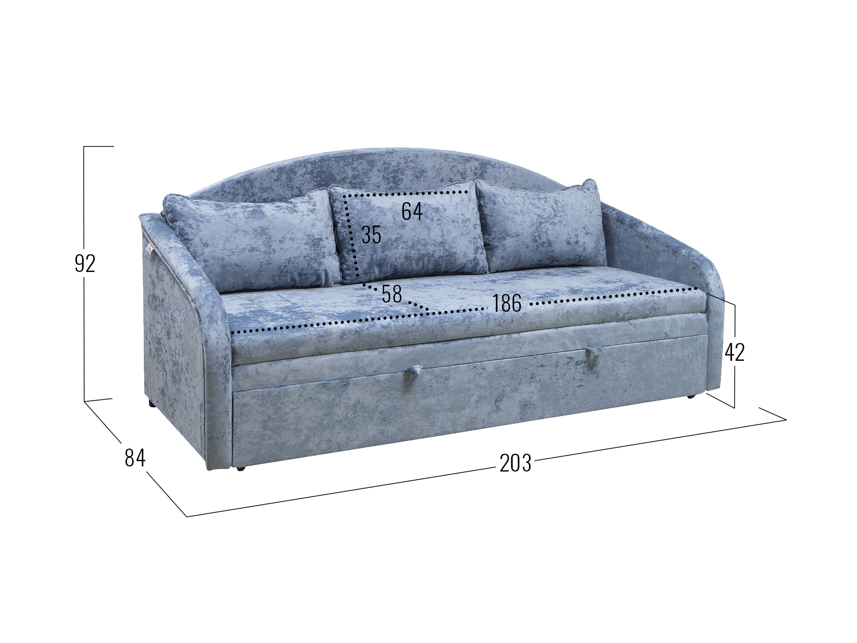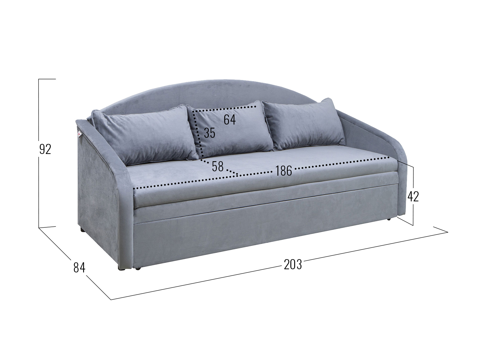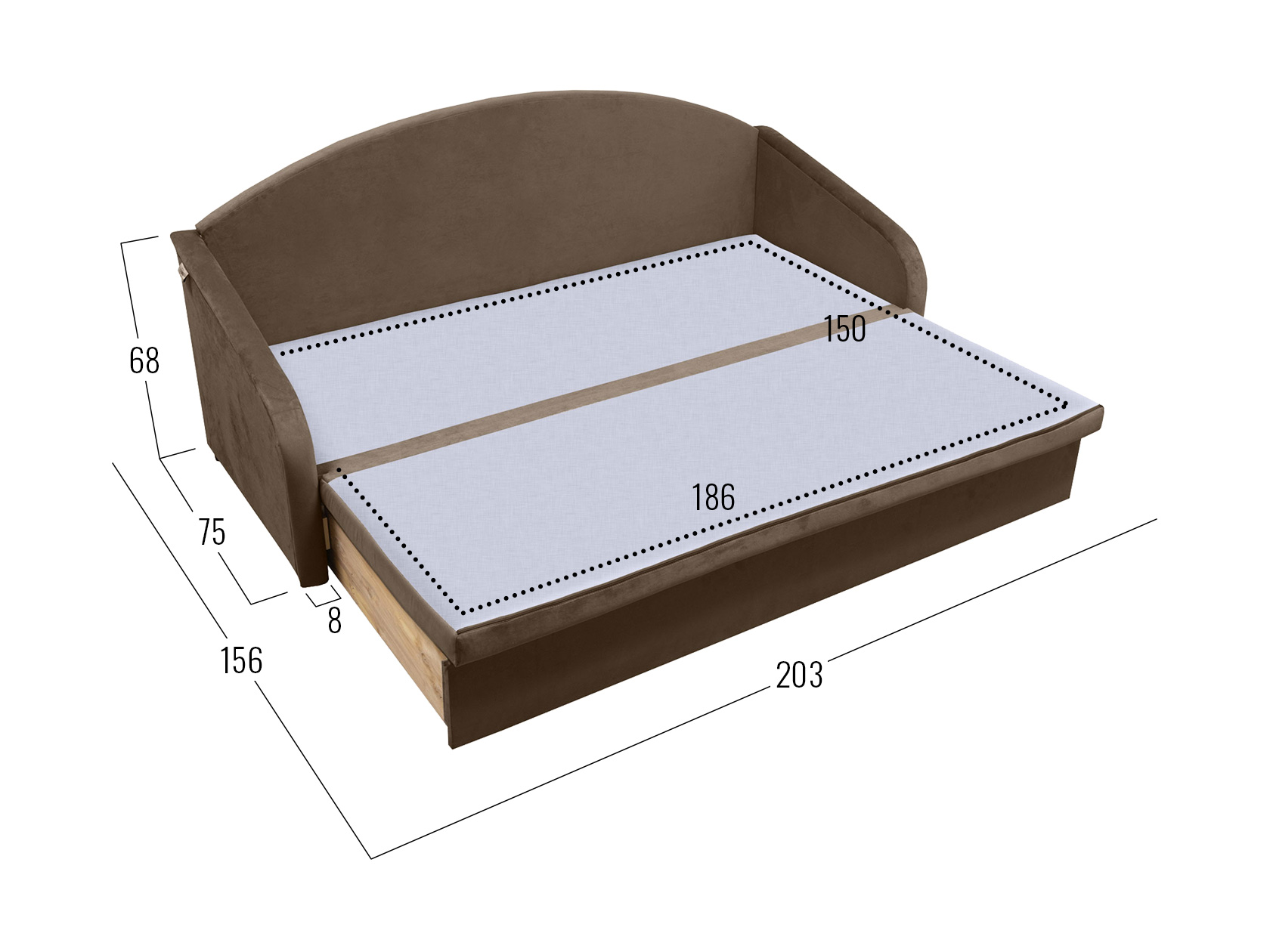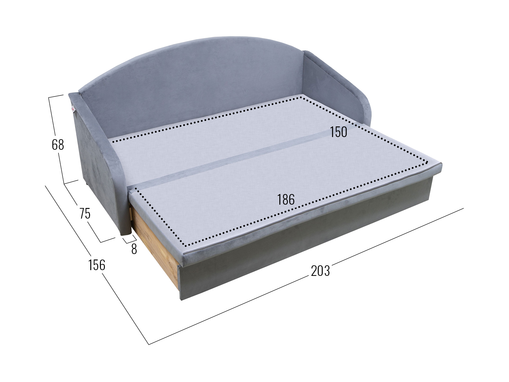 Посадочное место без подушек (ШхГ): 186 х 76 см.