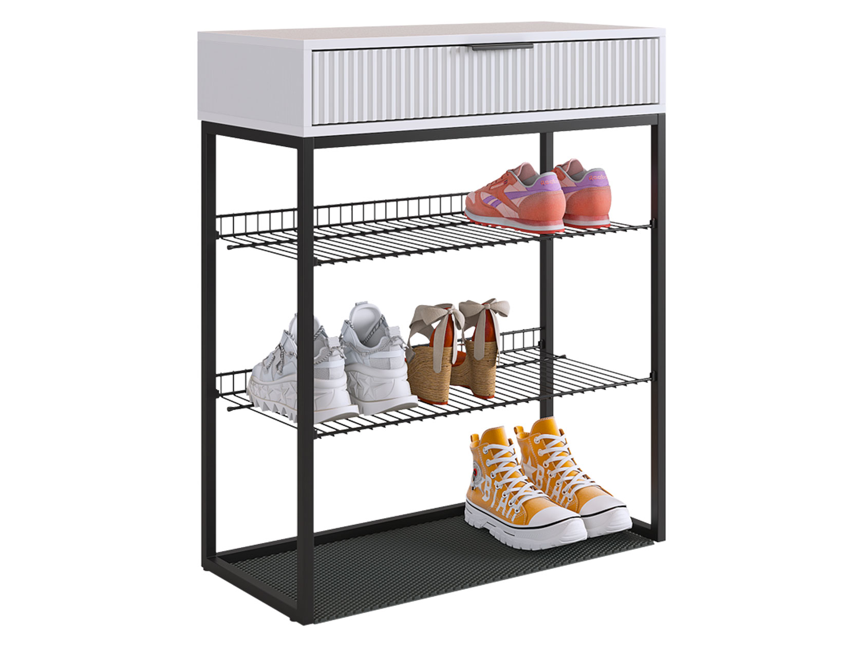 Обувница Вельвет — практичная модель для организации порядка в прихожей. Обувница рассчитана на несколько пар, поэтому идеально подходит для небольшой семьи. Выдвижной ящик позволяет быстро найти всё необходимое перед выходом из дома: средства для ухода за обувью, ключи, очки, расческу и косметику.