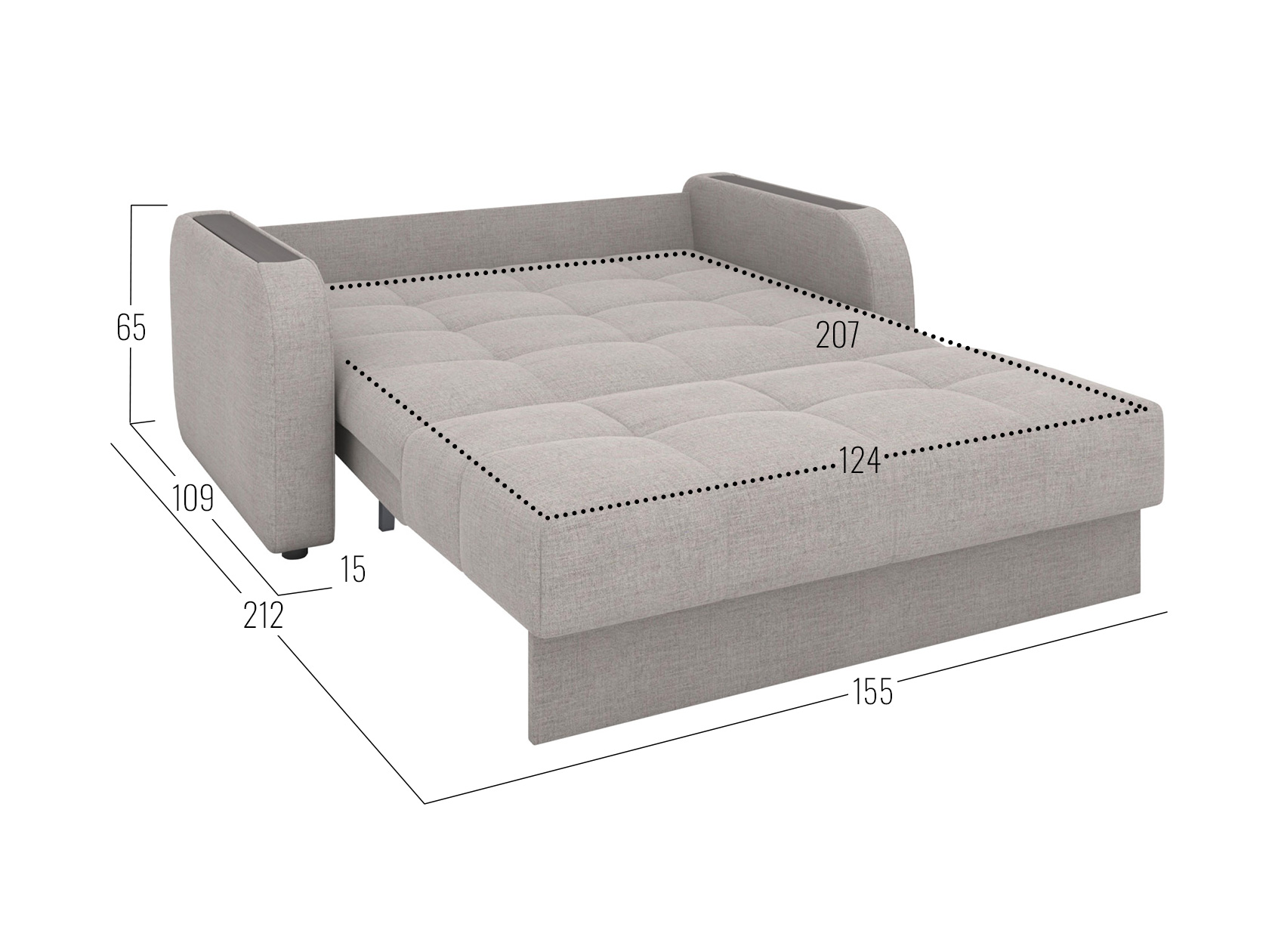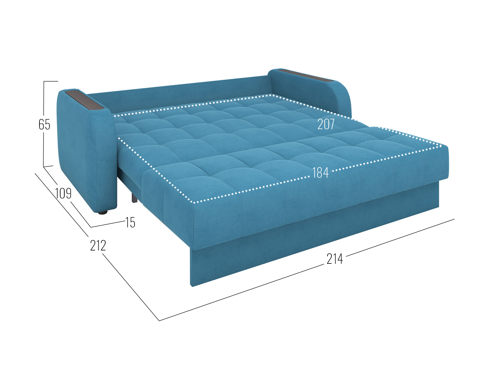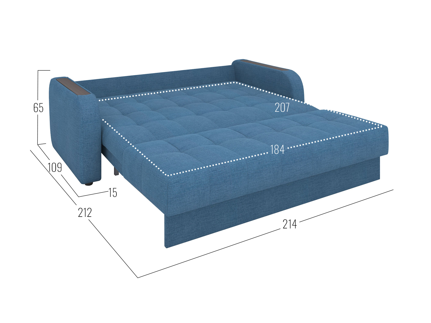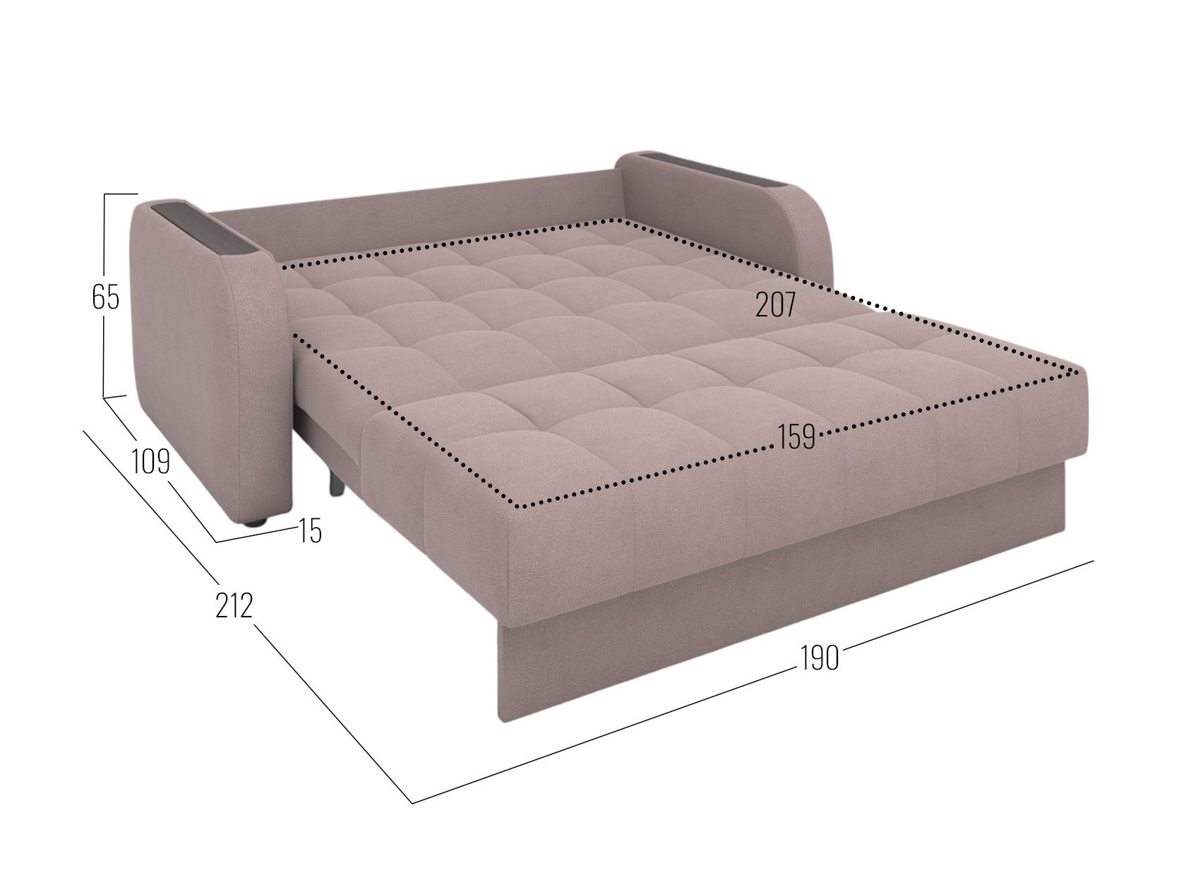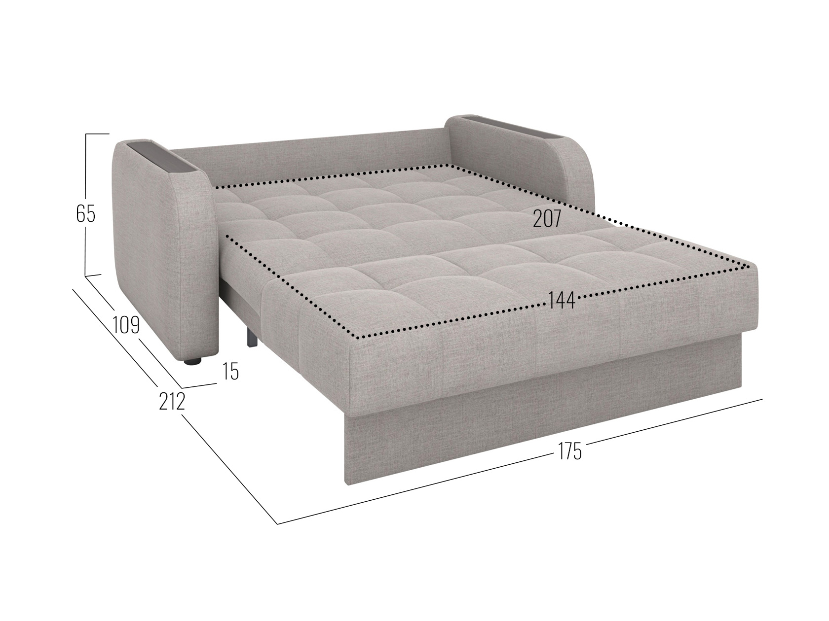 Диван легко и быстро раскладывается, образуя комфортное место для сна. Небольшая планка в изголовье защищает от контакта со стеной. Износостойкая ткань приятна на ощупь и нетребовательна в уходе.
