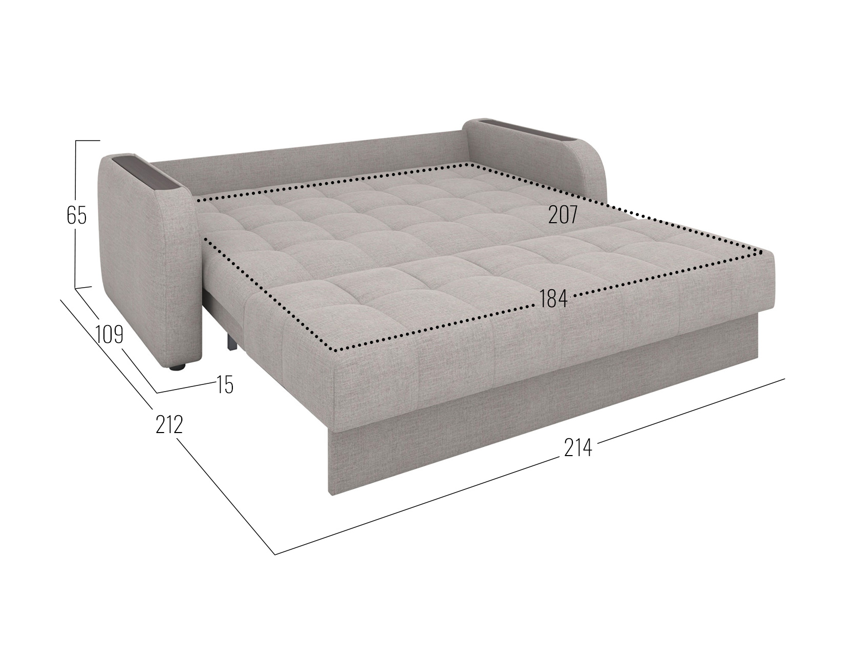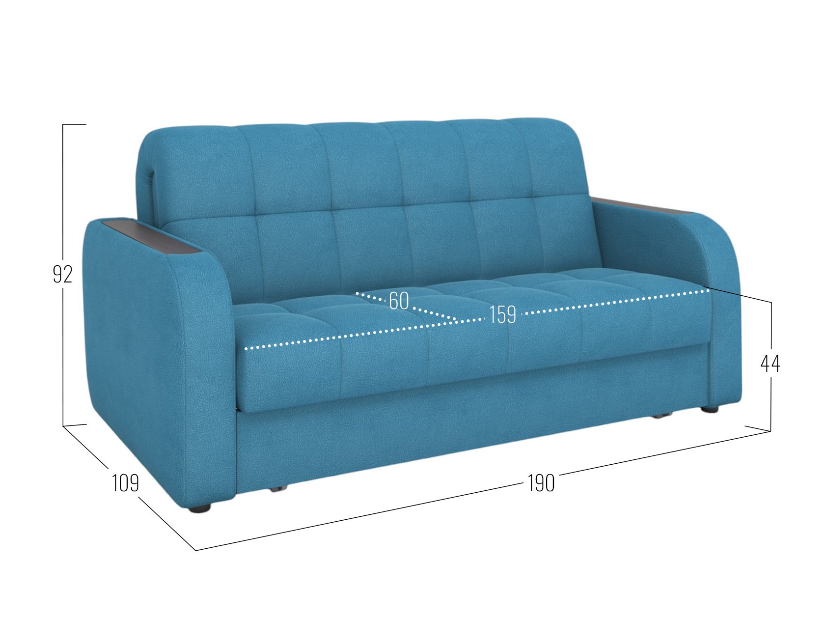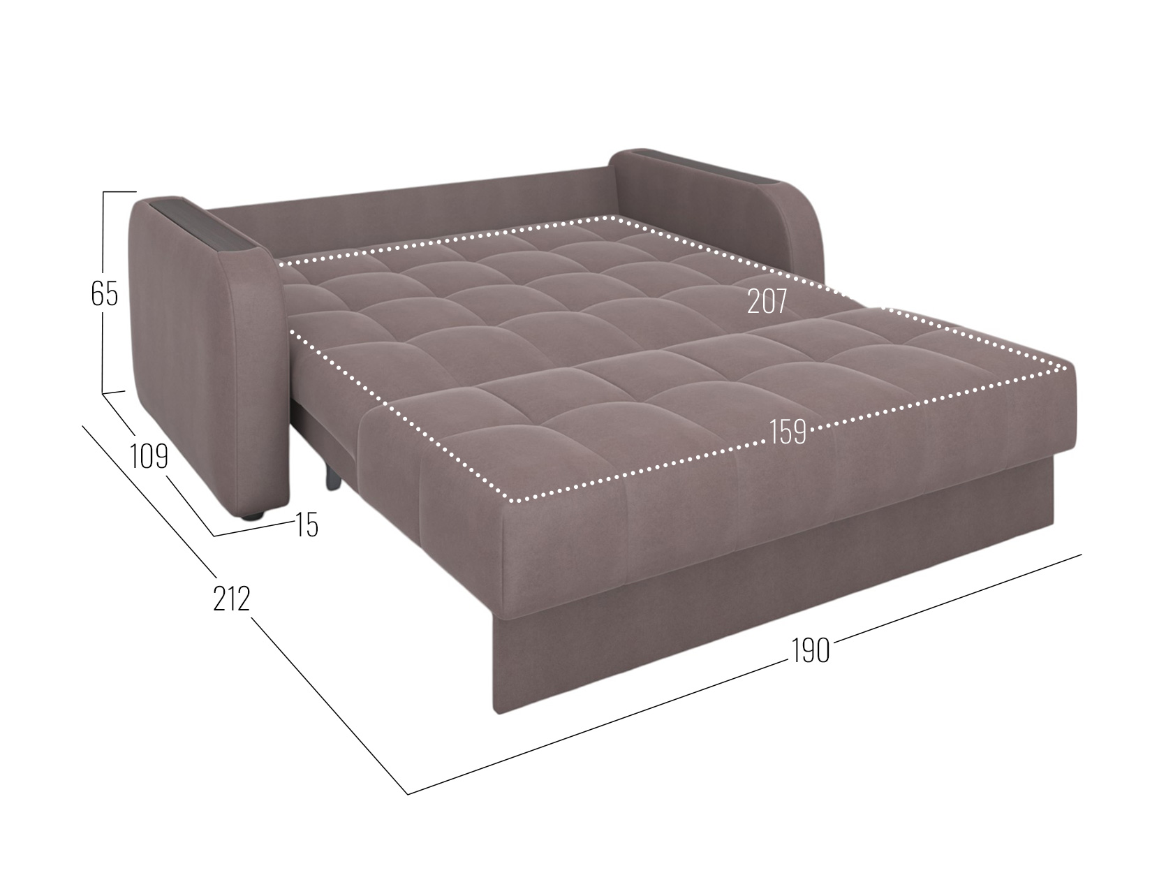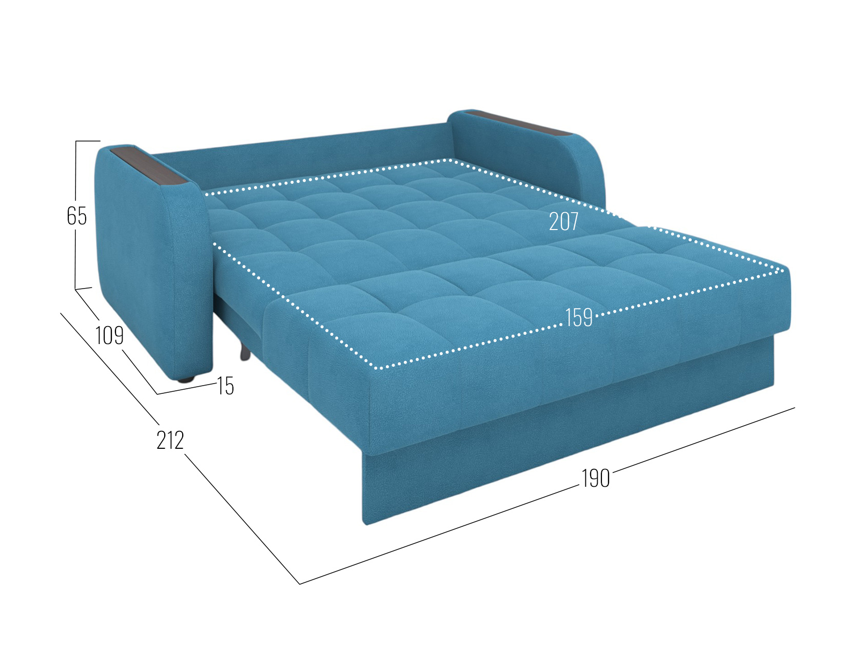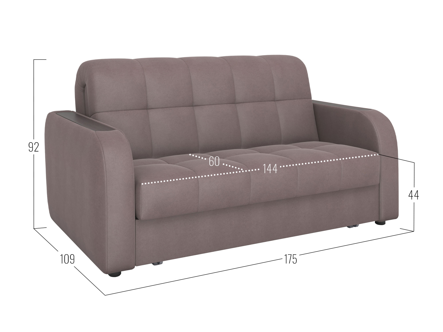 Диван легко и быстро раскладывается, образуя комфортное место для сна. Небольшая планка в изголовье защищает от контакта со стеной. Износостойкая ткань приятна на ощупь и нетребовательна в уходе.