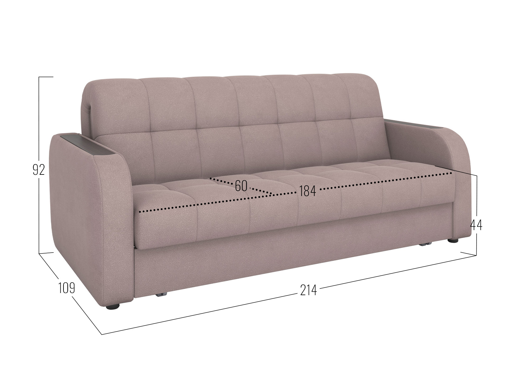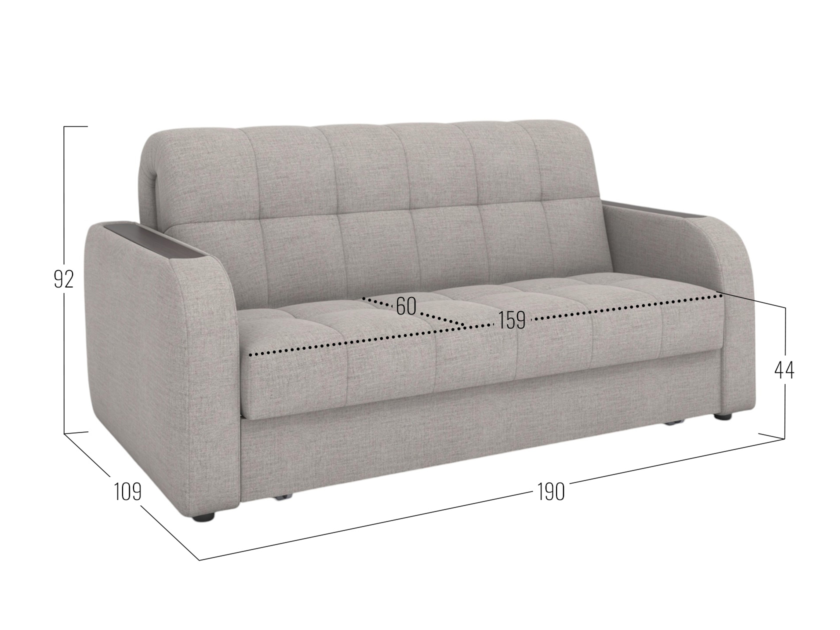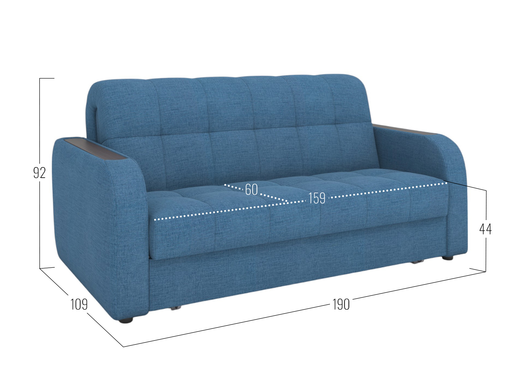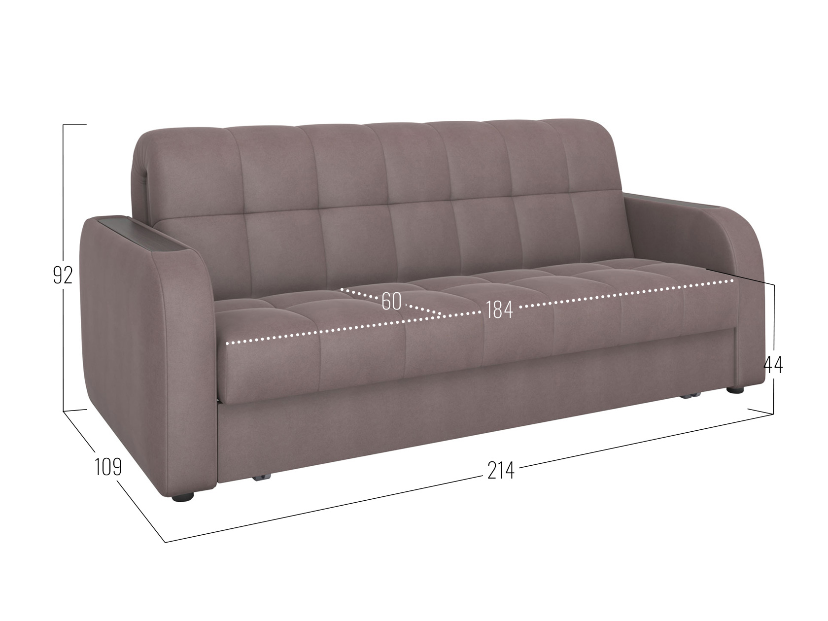 Диван легко и быстро раскладывается, образуя комфортное место для сна. Небольшая планка в изголовье защищает от контакта со стеной. Износостойкая ткань приятна на ощупь и нетребовательна в уходе.