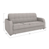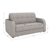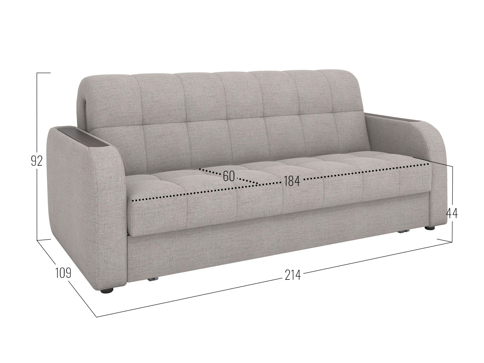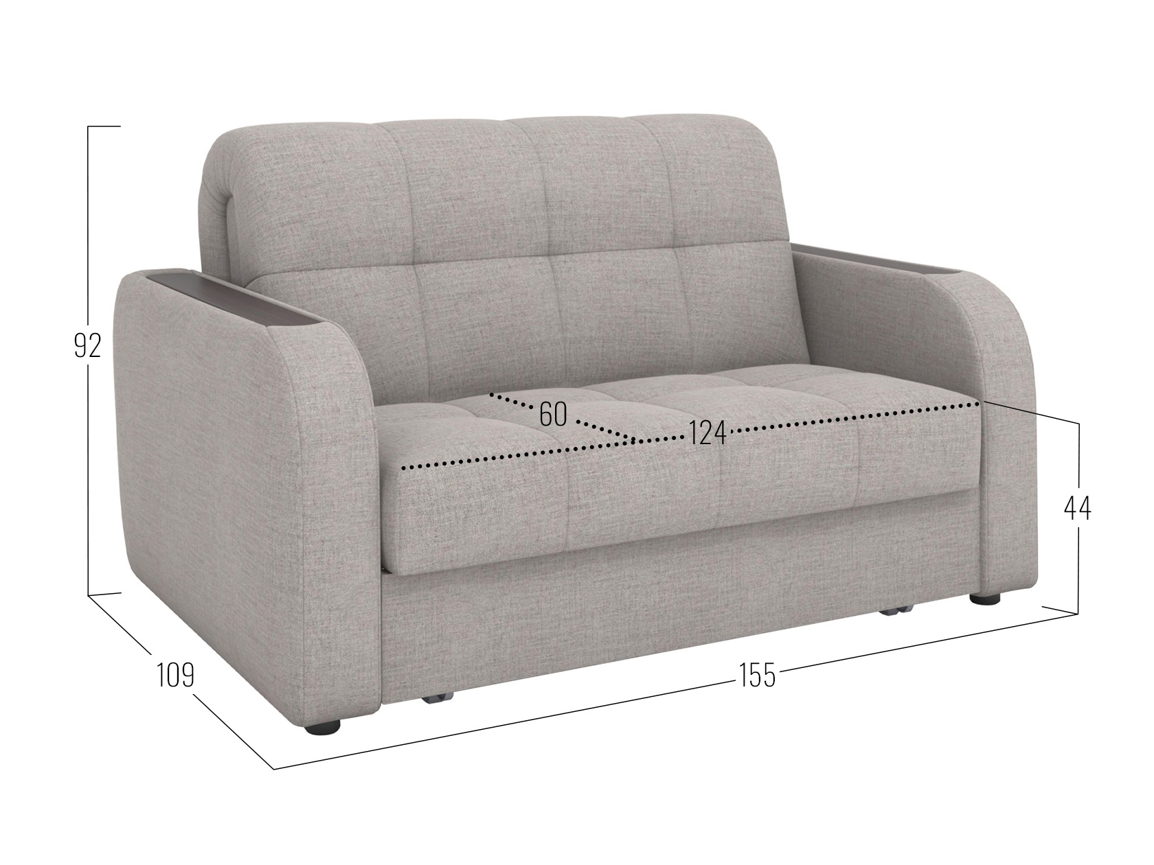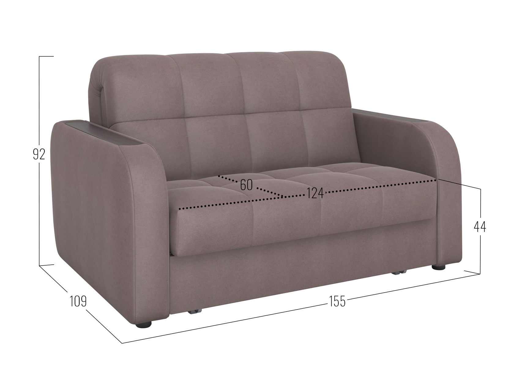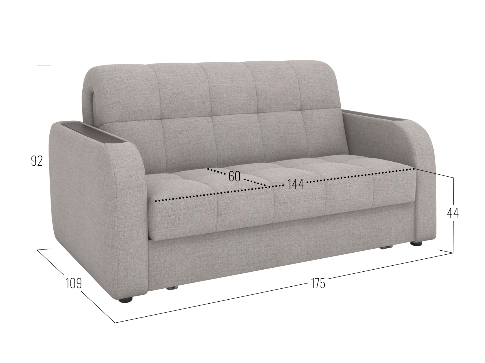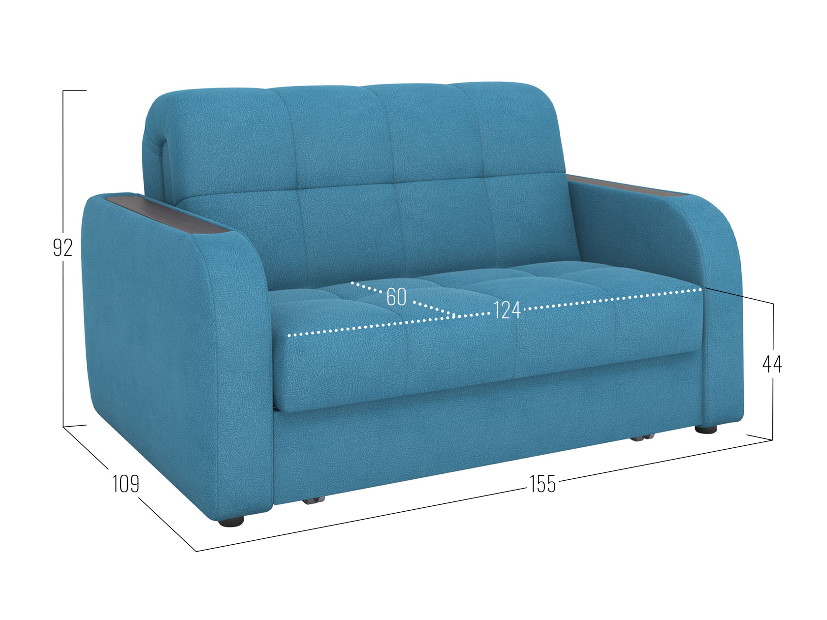Диван легко и быстро раскладывается, образуя комфортное место для сна. Небольшая планка в изголовье защищает от контакта со стеной. Износостойкая ткань приятна на ощупь и нетребовательна в уходе.