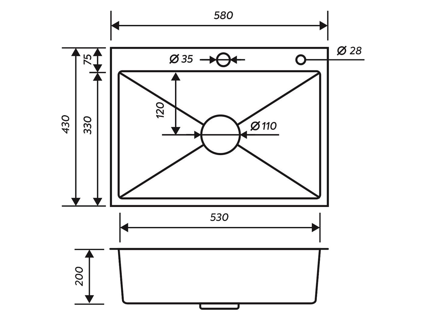 Толщина стали мойки: 0,1-0,3 см.