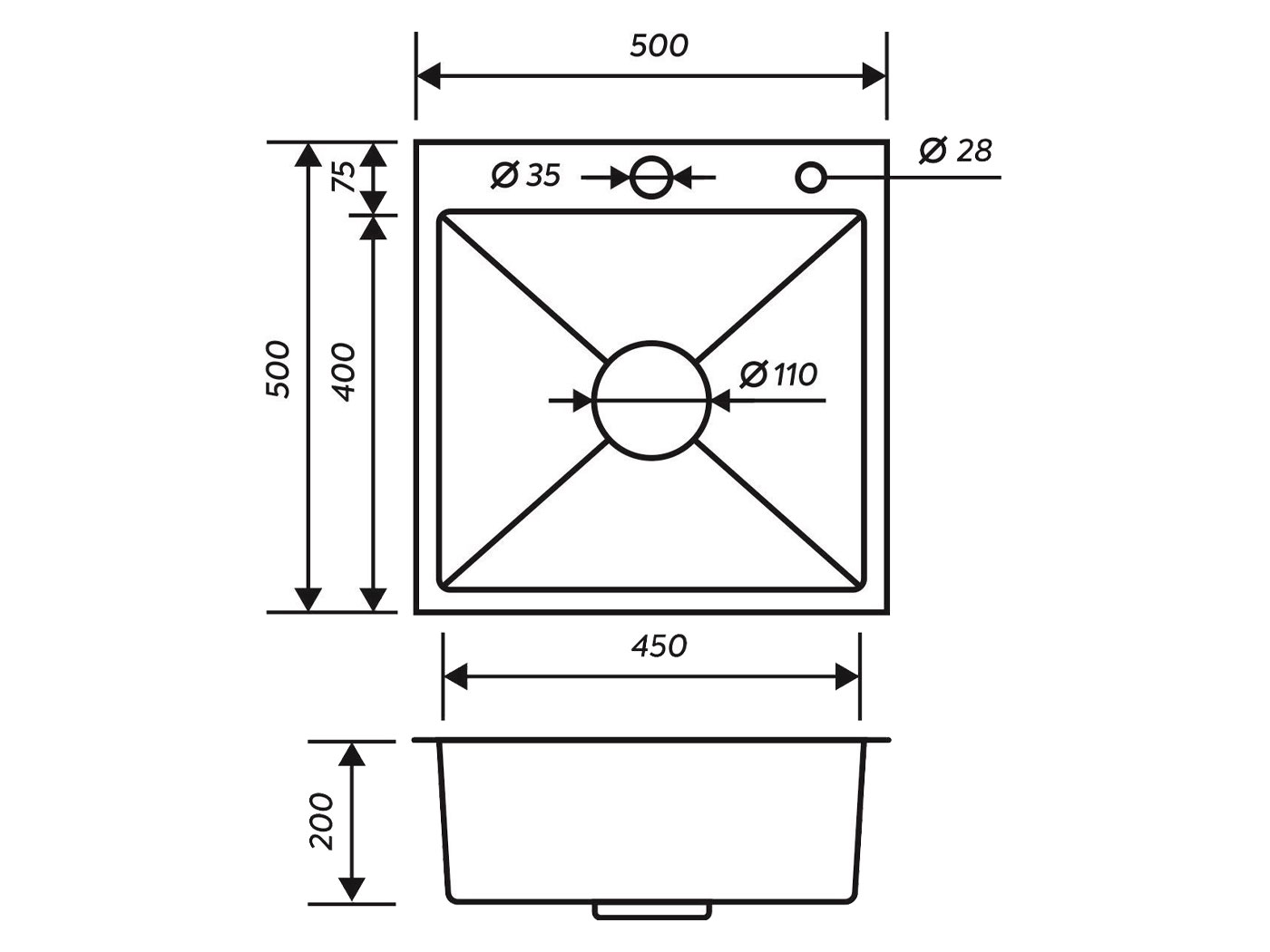 Форма мойки: прямоугольная.