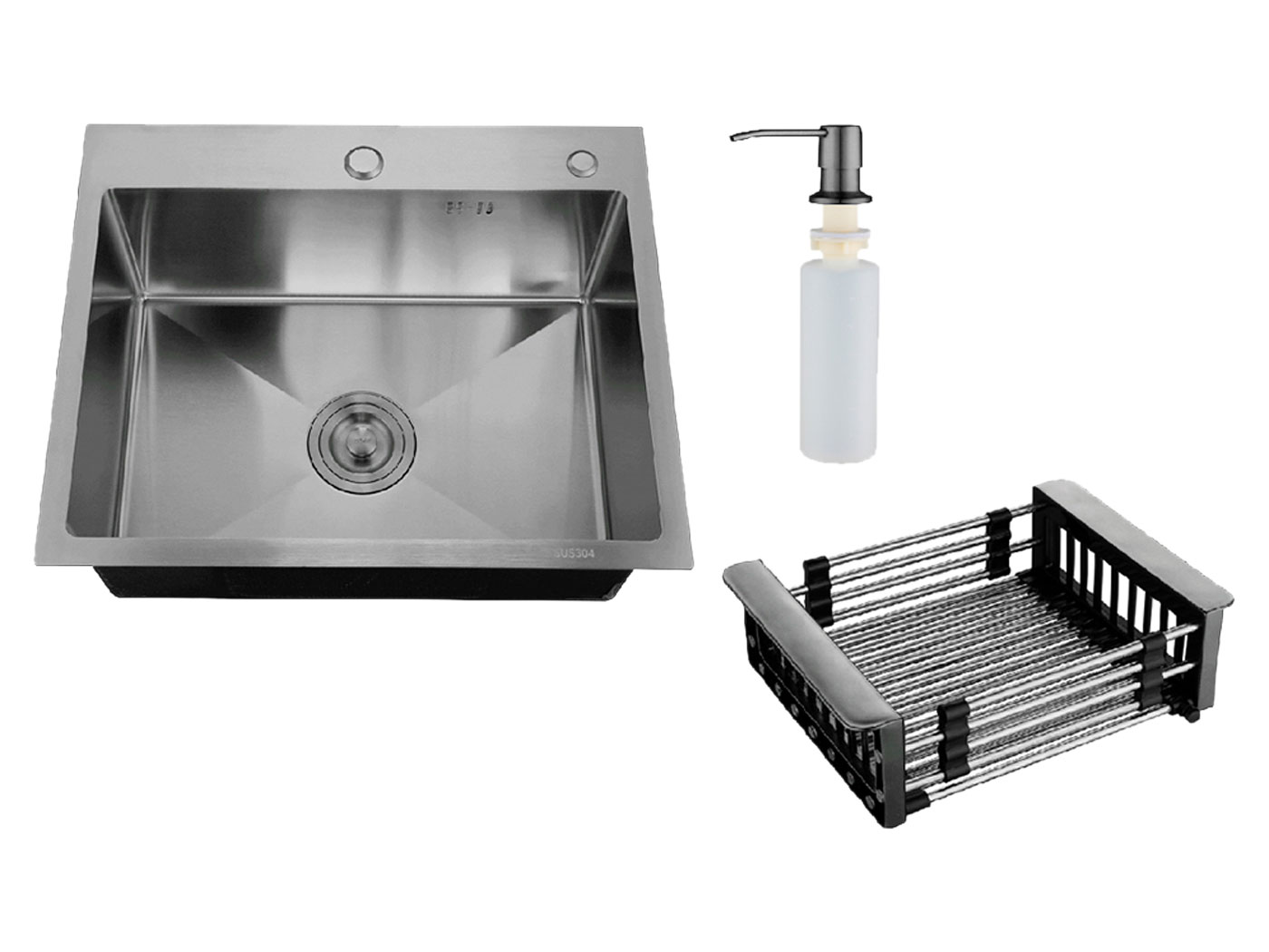 Врезная мойка с корзиной и дозатором MR-5050 — оптимальный выбор для завершения гарнитура. Набор содержит всё необходимое для ежедневных хлопот на кухне. Широкая мойка обеспечит комфортное мытье посуды, раздвижная корзина подойдет для сушки овощей, а в удобный дозатор можно набрать жидкое мыло или моющее средство.