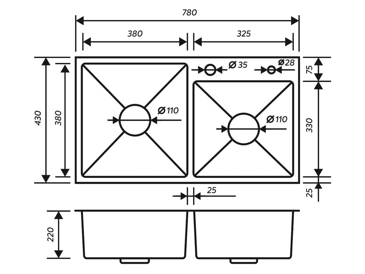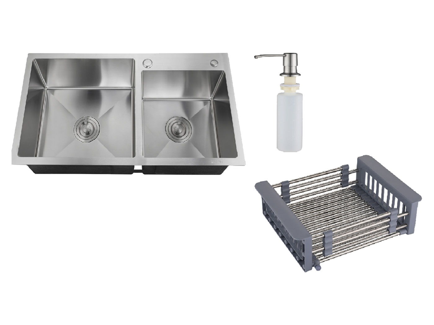 Врезная мойка с корзиной и дозатором MR-7843 обеспечат порядок на кухне и аккуратный внешний вид гарнитура. Мойка из двух отсеков позволяет разделить чистую и грязную посуду. Удобная корзина подходит для сушки и размораживания продуктов. Дозатор позволяет держать под рукой моющие средства.