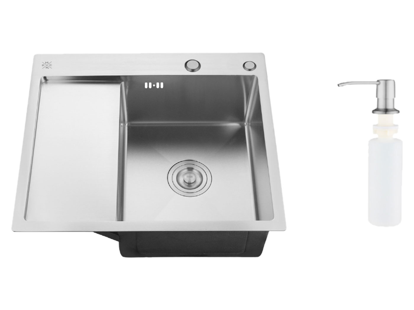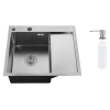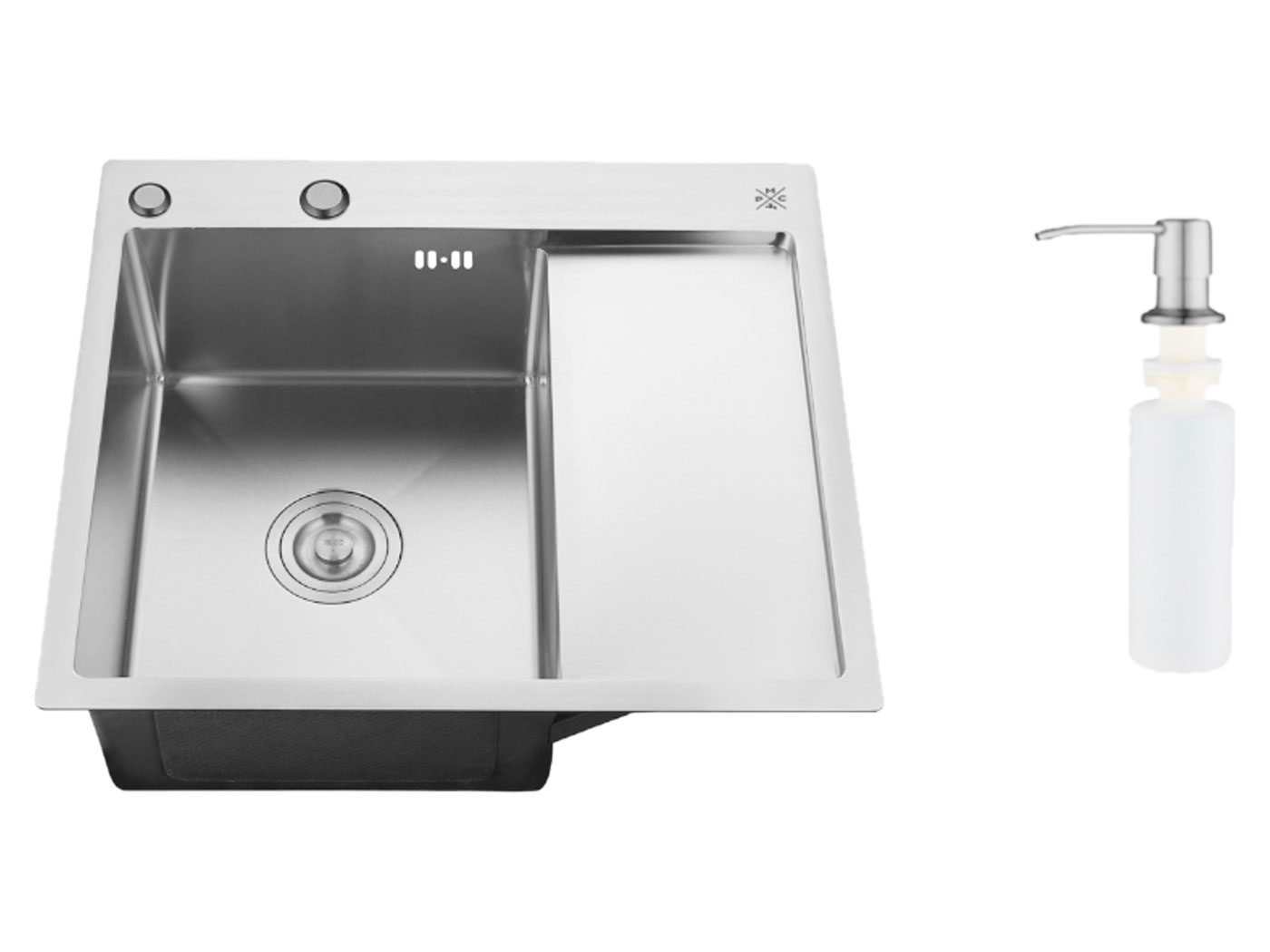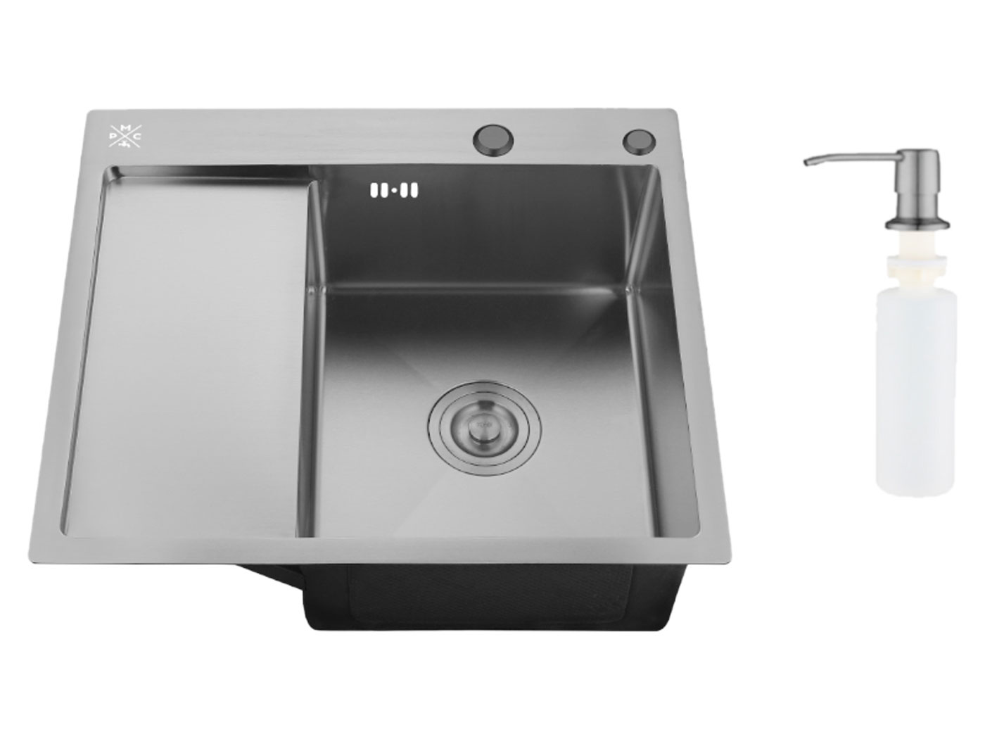 Врезная мойка с дозатором MRK-5851 помогут создать комфортное пространство для выполнения повседневных дел на кухне. Мойка с глубокой чашей позволяет наполнять емкости разного размера, а боковая вставка в виде крыла создаст дополнительное место для чистой посуды. Дозатор облегчает процесс уборки поверхностей: его можно заполнить как жидким мылом, так и моющими средствами.