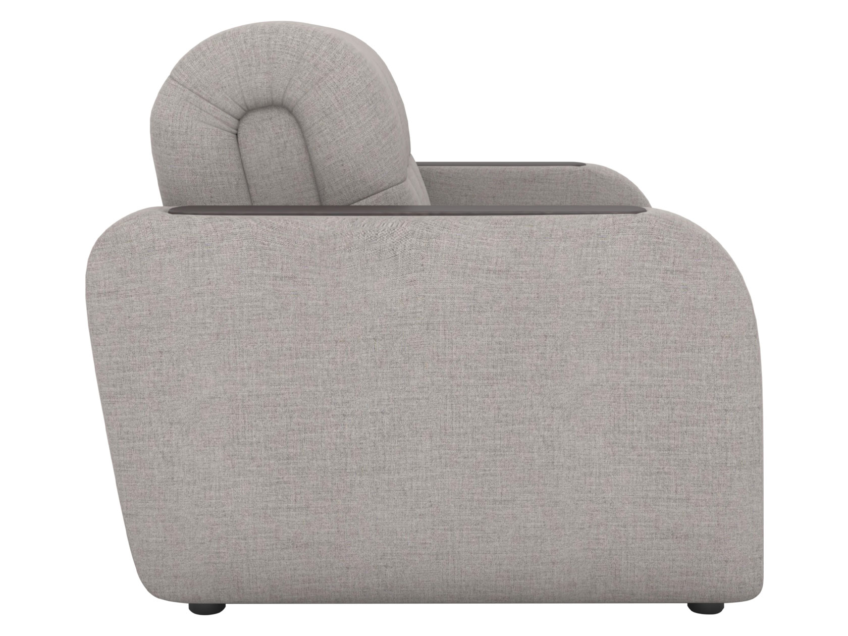 В дизайне сделан акцент на плавные и округлые линии, что создает гармоничный силуэт. Накладки на подлокотниках — декоративный акцент и удобное дополнение модели. Кресло полностью обито основной тканью, поэтому его можно расположить спинкой на виду, а не только вдоль стены.