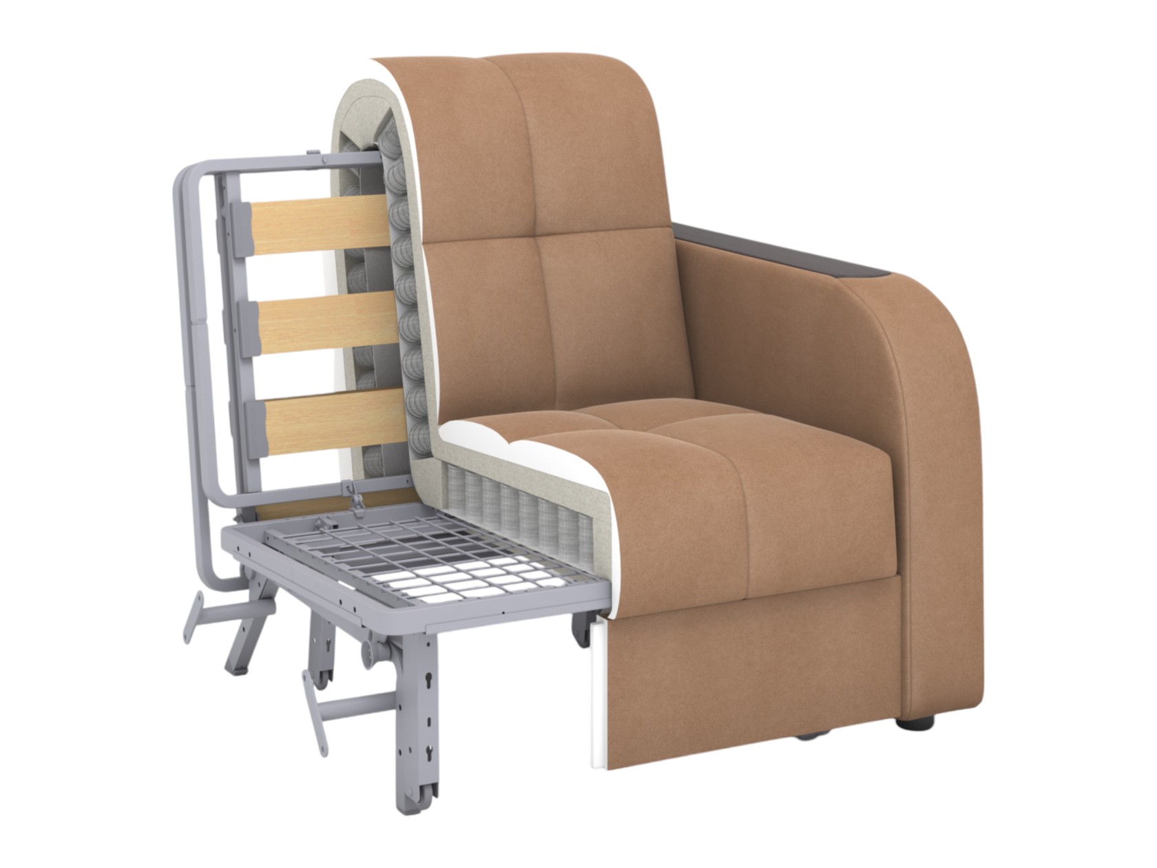 Кресло-кровать Тревис — уютная и практичная модель, которая совмещает место для отдыха и сна. Металлический каркас обеспечивает прочность и долговечность конструкции. В разложенном виде — это удобная альтернатива односпальной кровати.