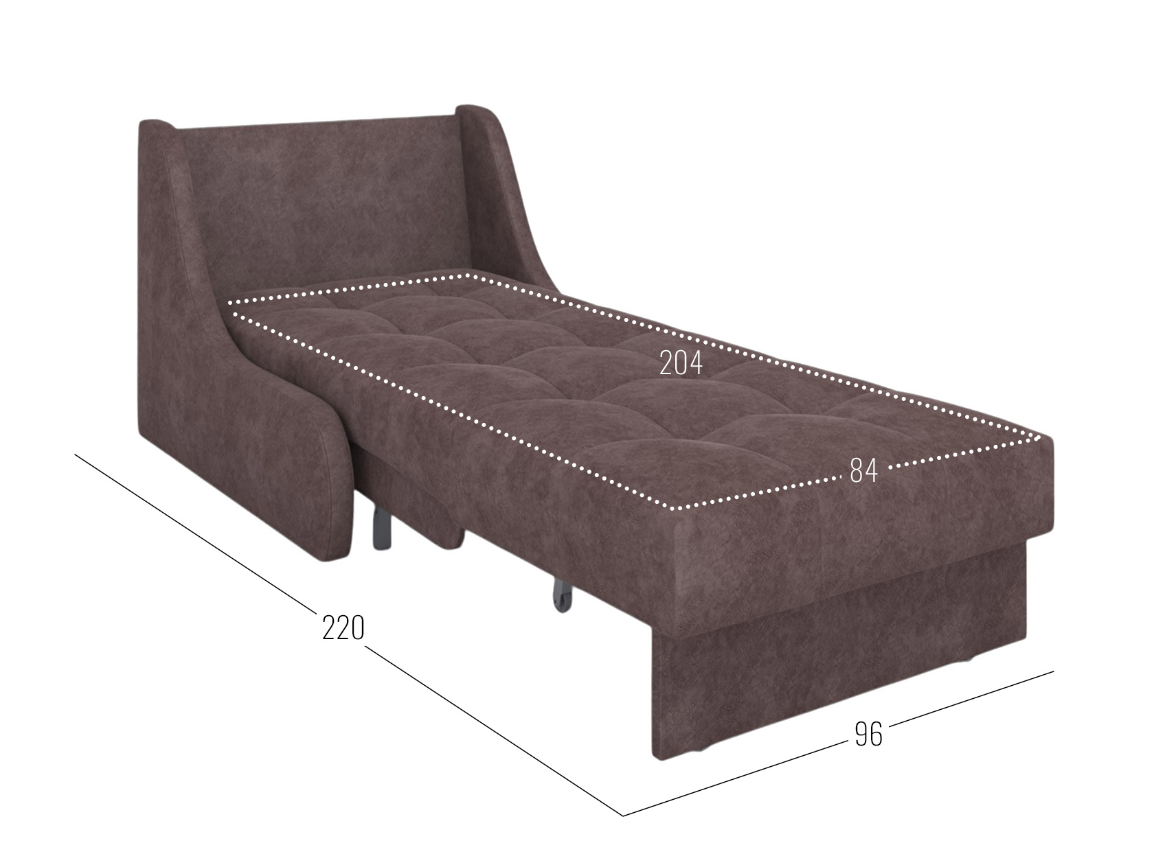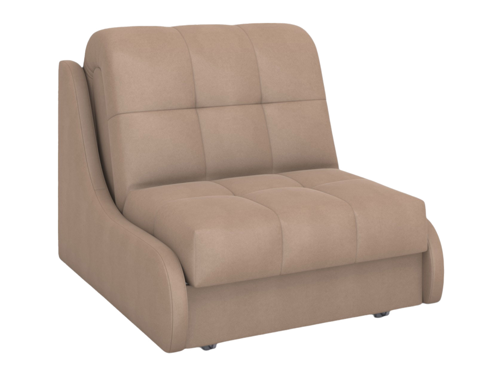 Кресло-кровать Бранд — компактная модель, которая с помощью надежного механизма легко превращается в полноценное спальное место. Узкие подлокотники экономят пространство и позволяют установить кресло в небольшой комнате, на кухне или даче. Симметричная стежка служит лаконичным акцентом и защищает обивку от деформации.