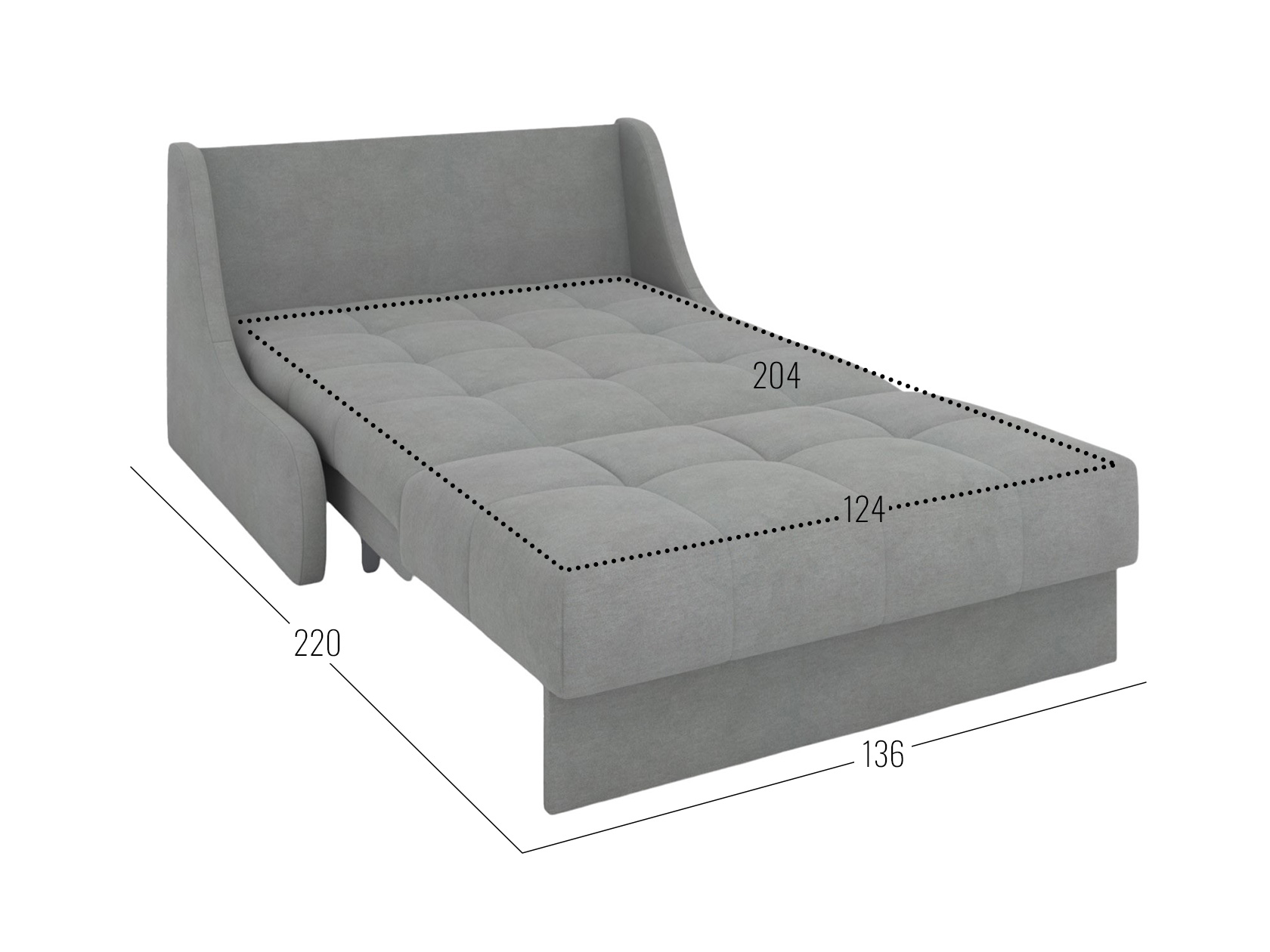 Серо-голубой, велюр. 124х204 см. Без ящика