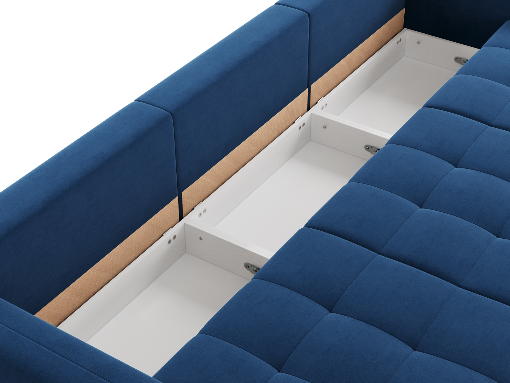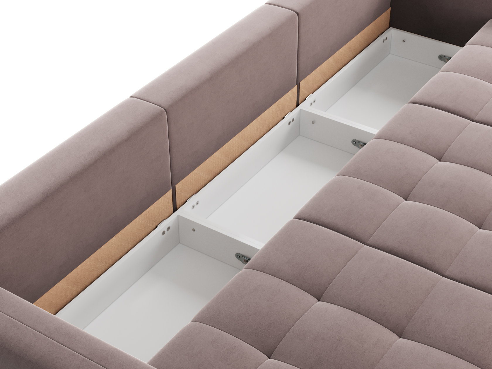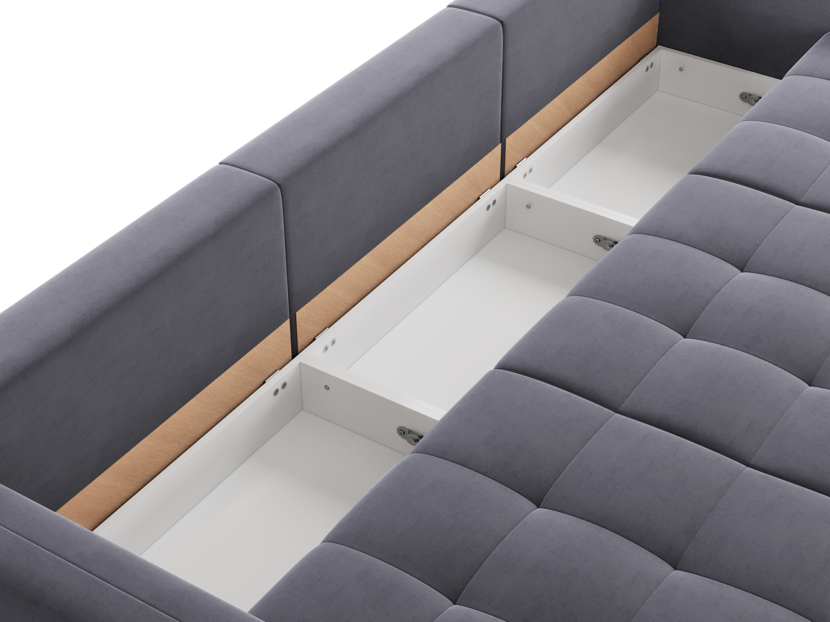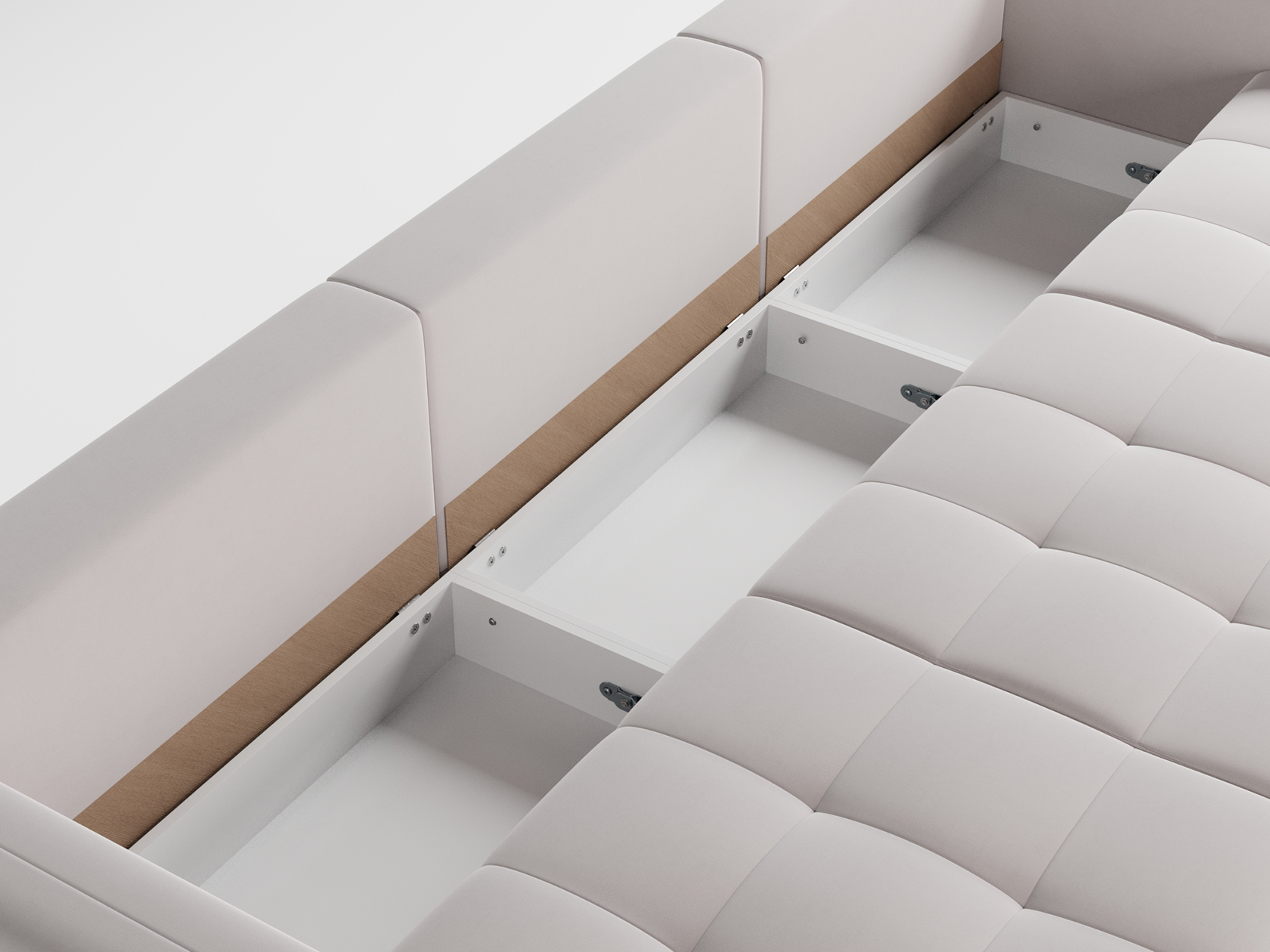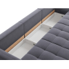 Надежный механизм трансформации легко превращает диван в ровное спальное место. Благодаря продуманному наполнению его можно использовать для ежедневного сна. Модель комплектуется вместительным коробом для хранения постельных принадлежностей.