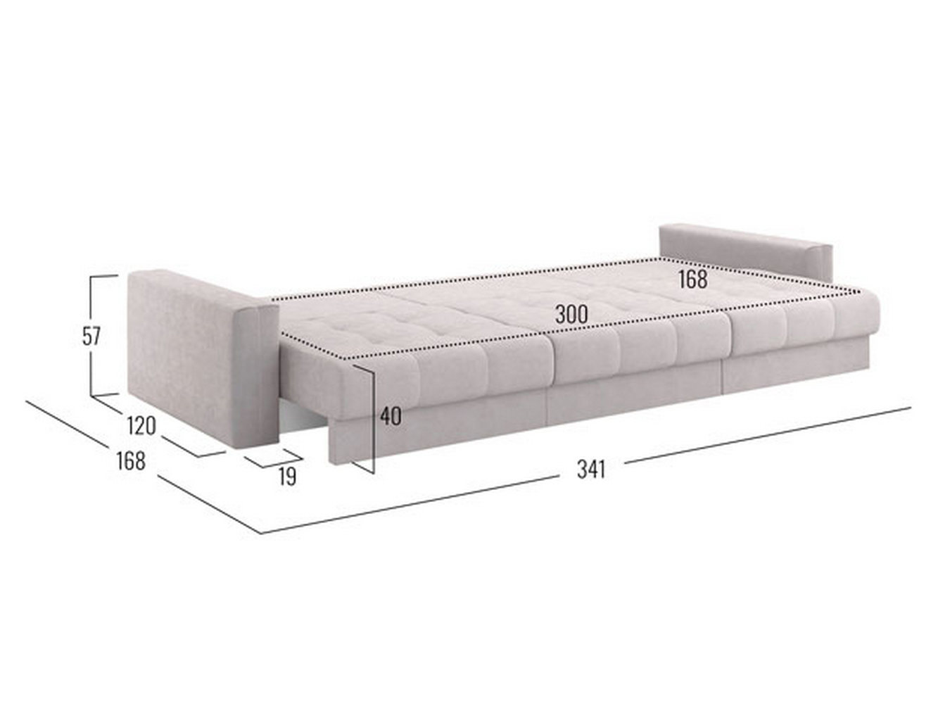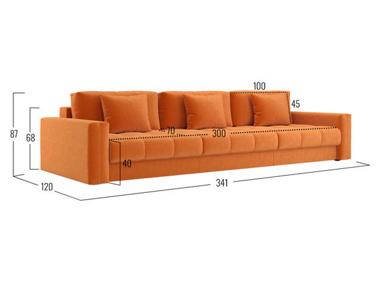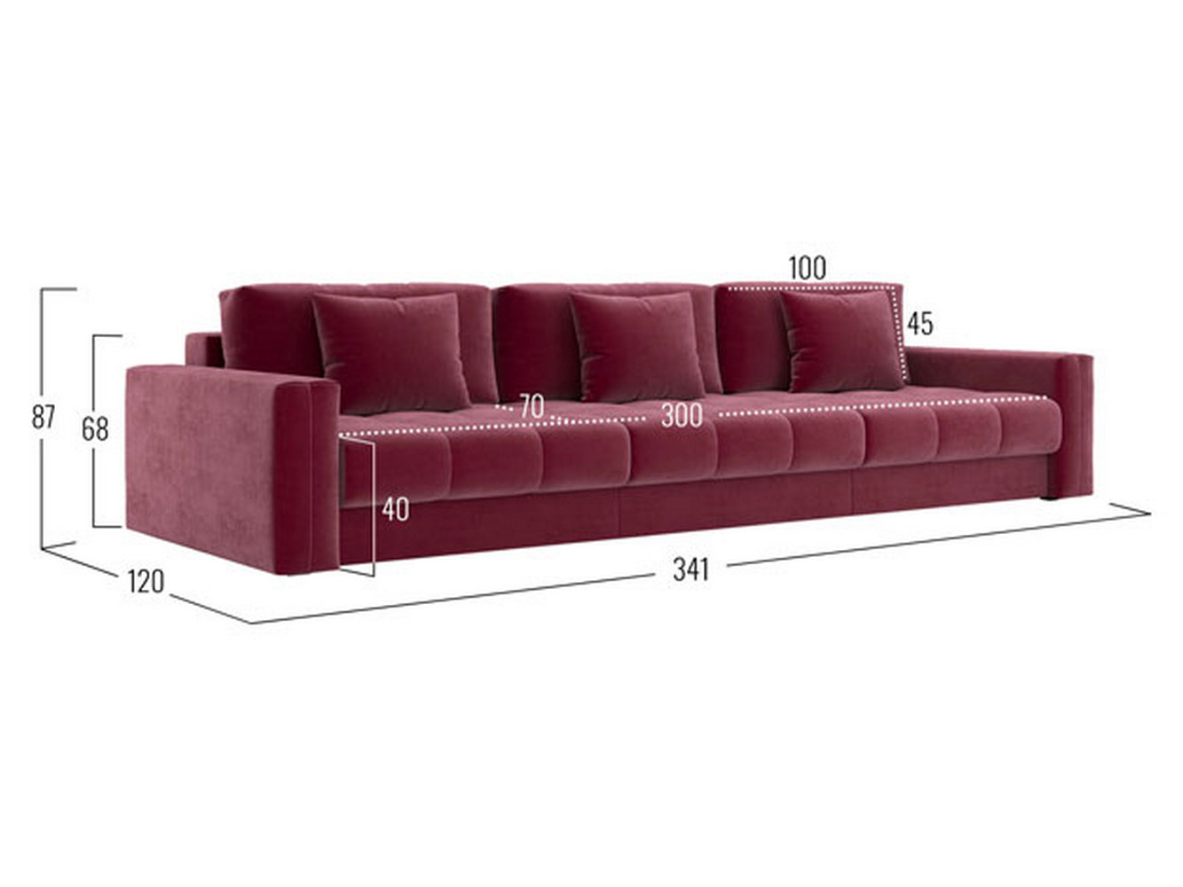 Посадочное место без подушек (ШхГ): 300 х 100 см.