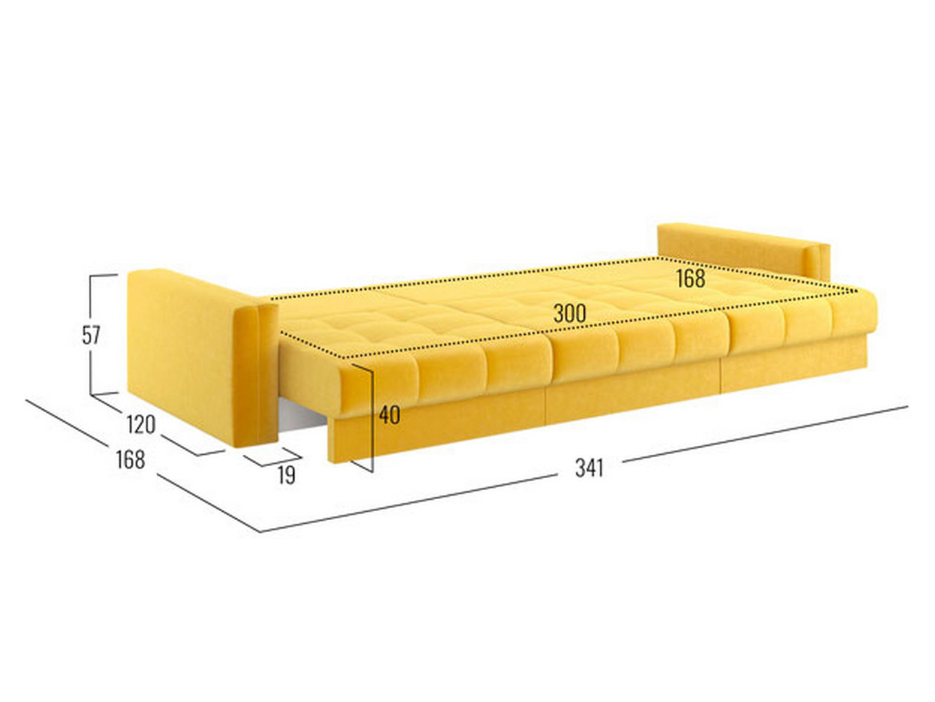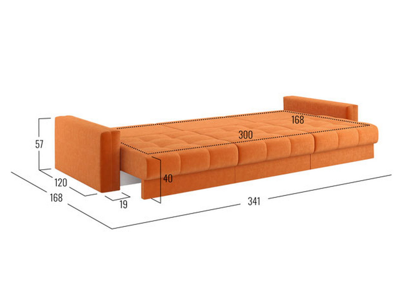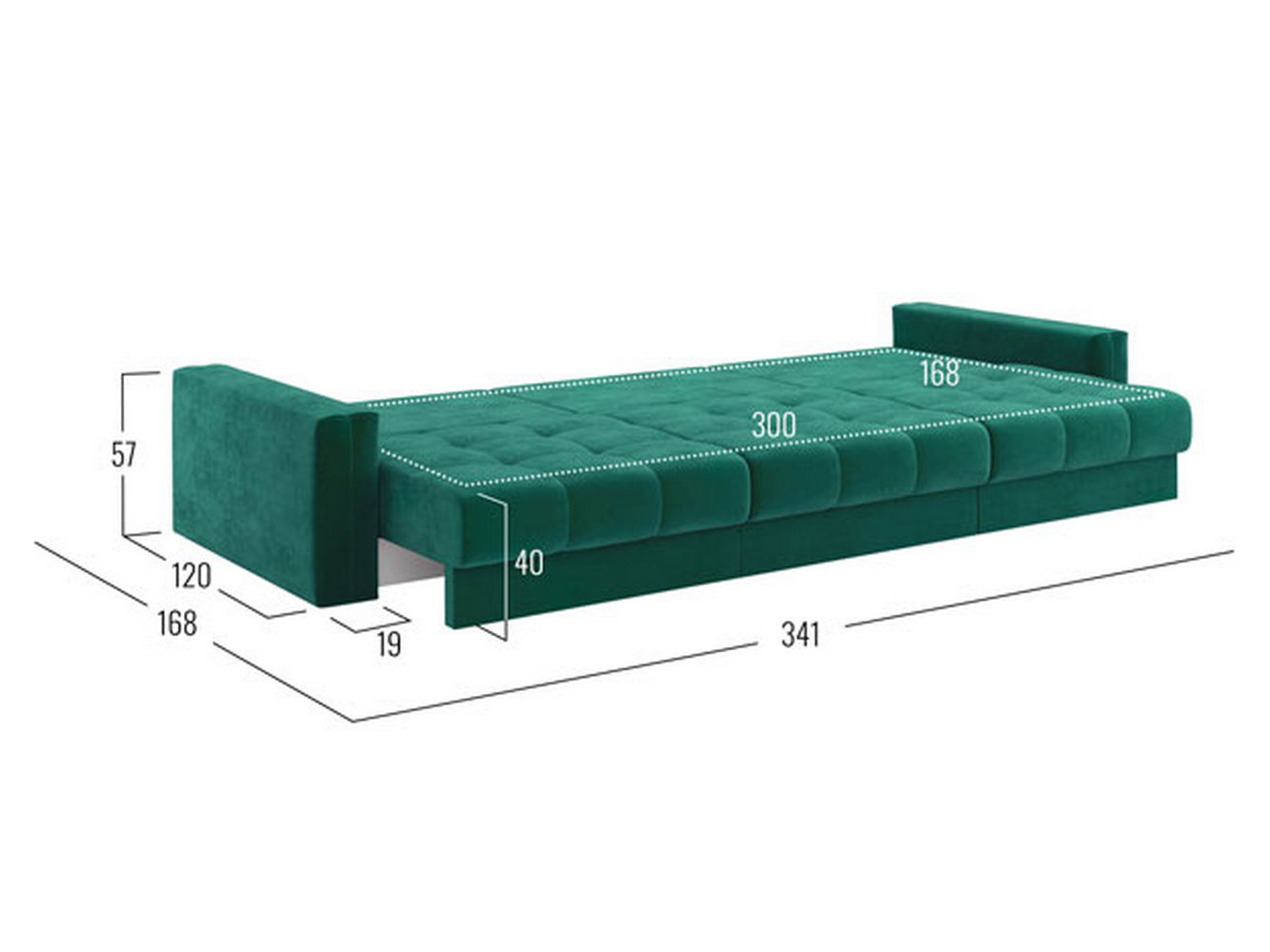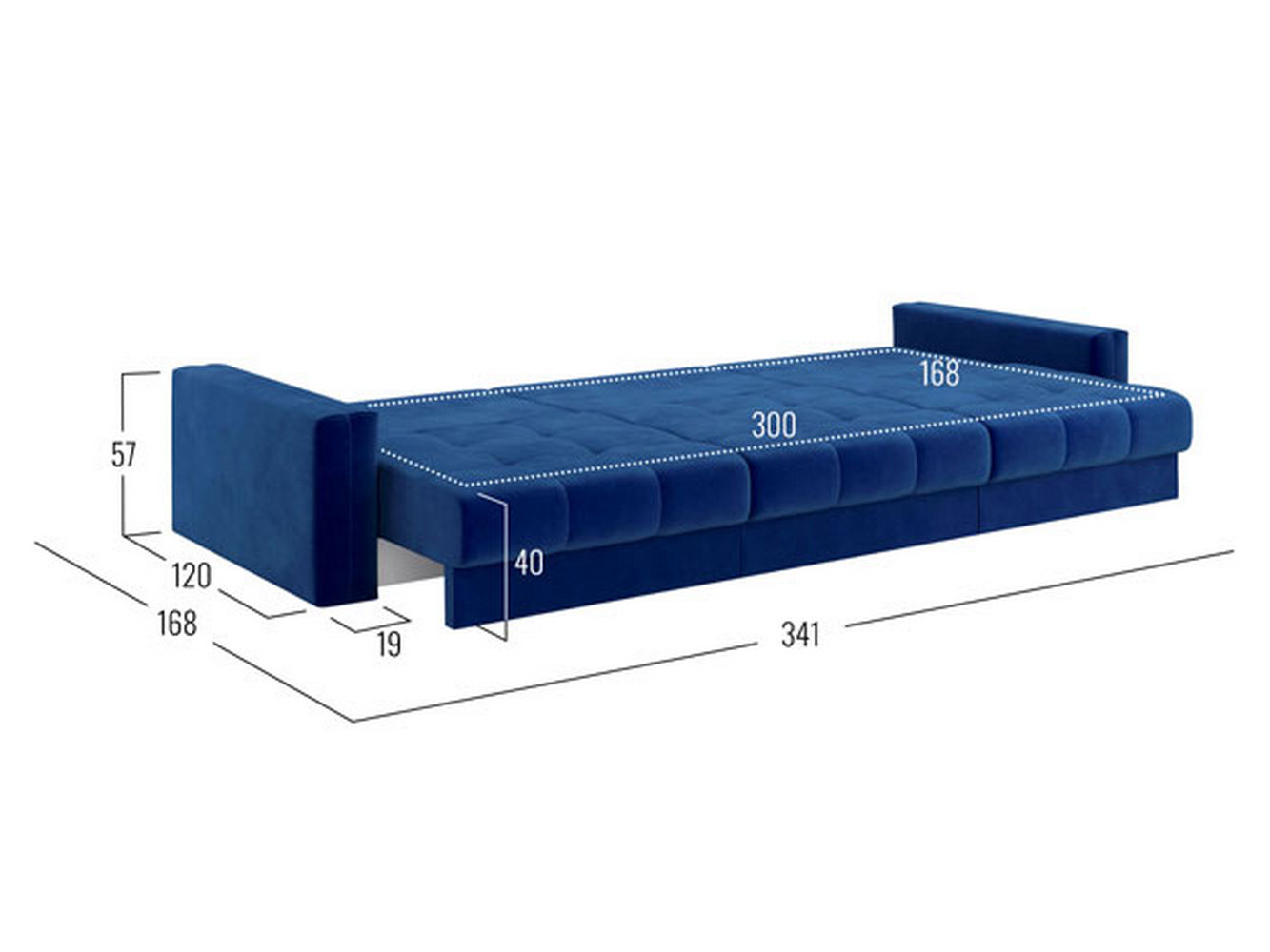 Посадочное место без подушек (ШхГ): 300 х 100 см.