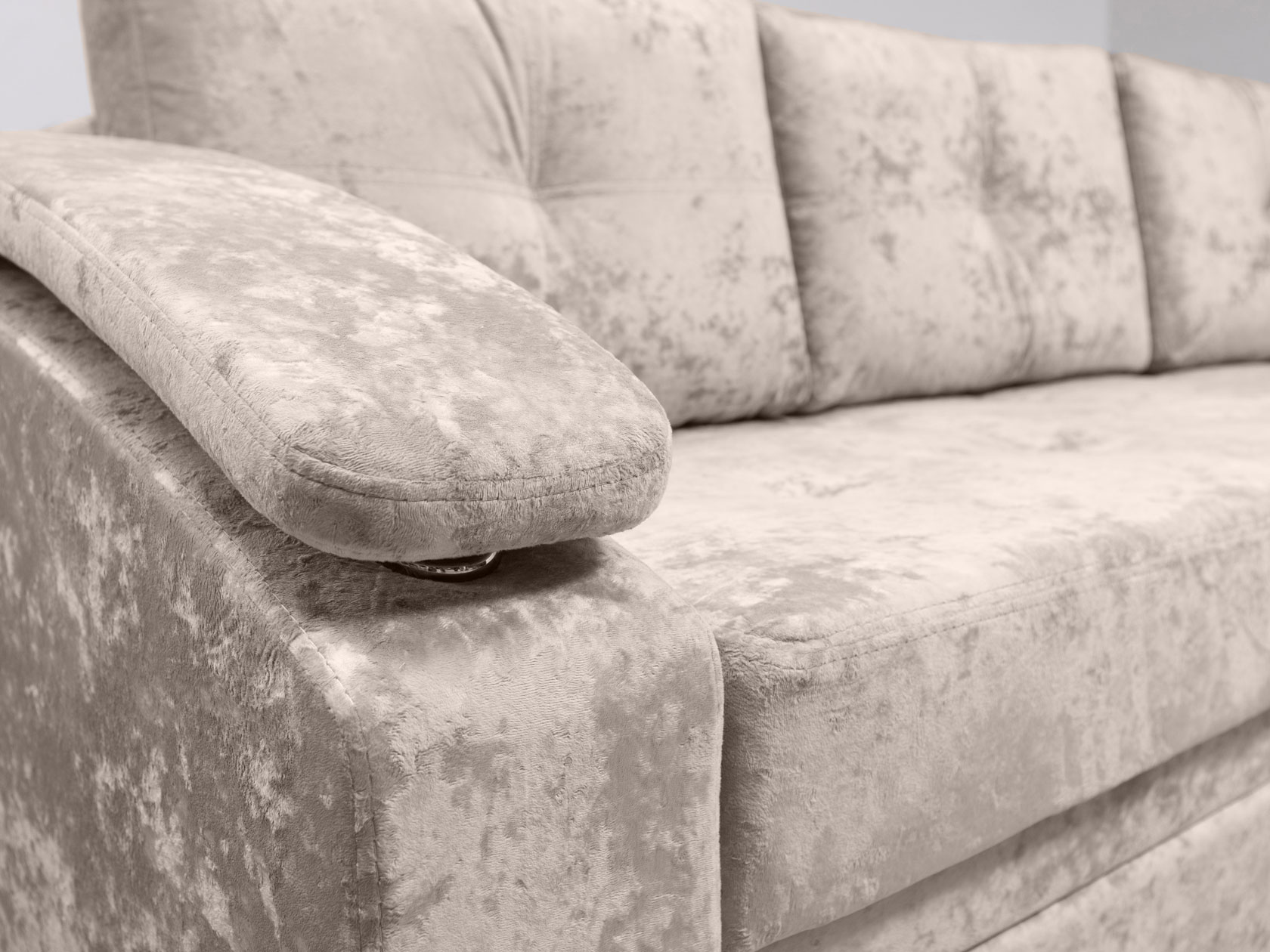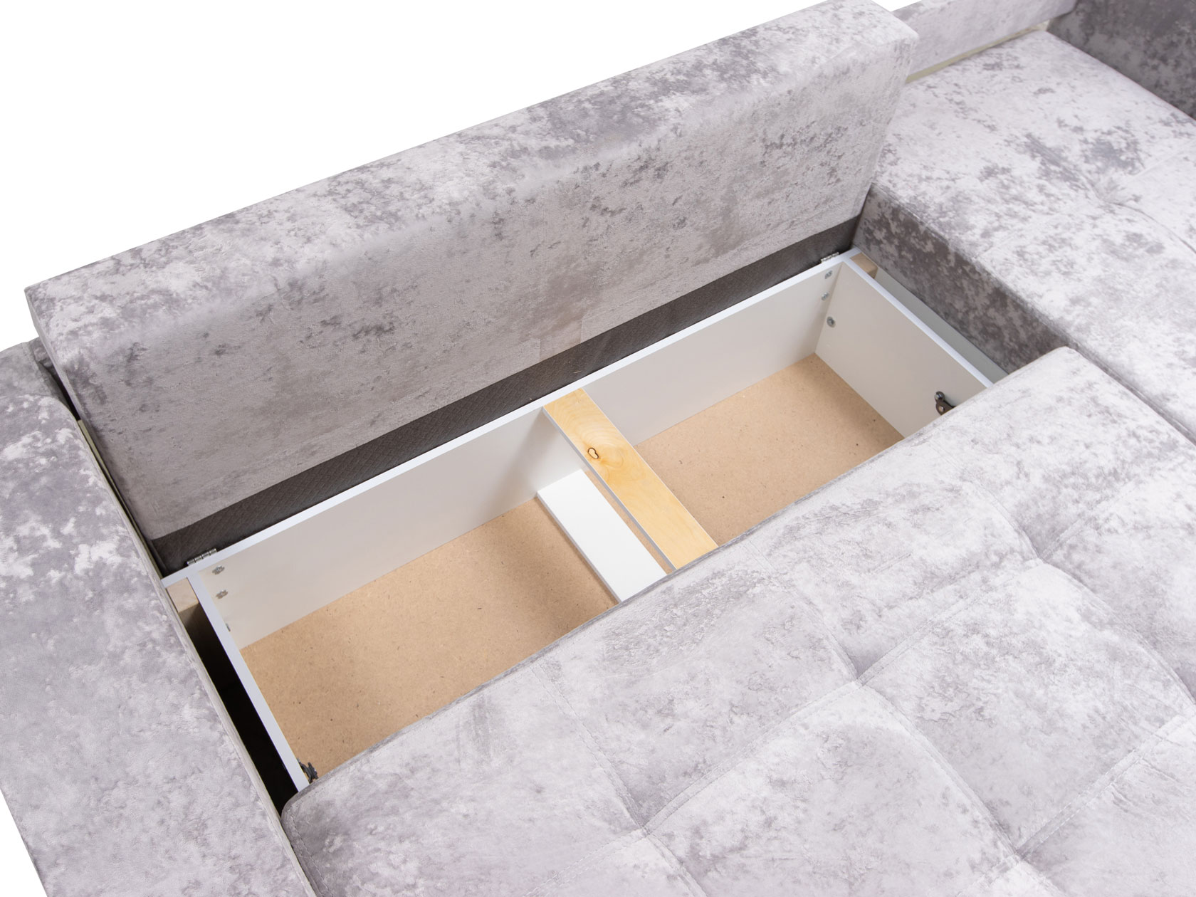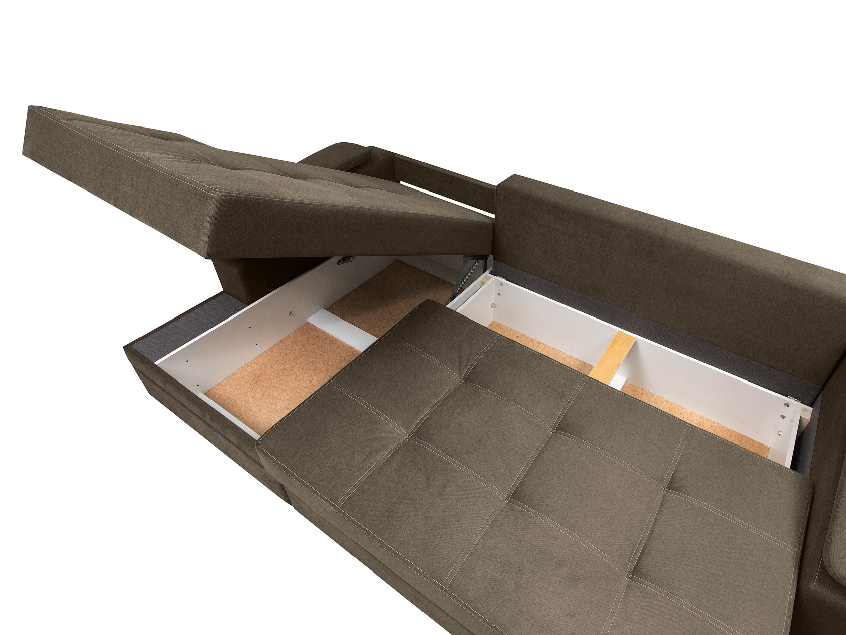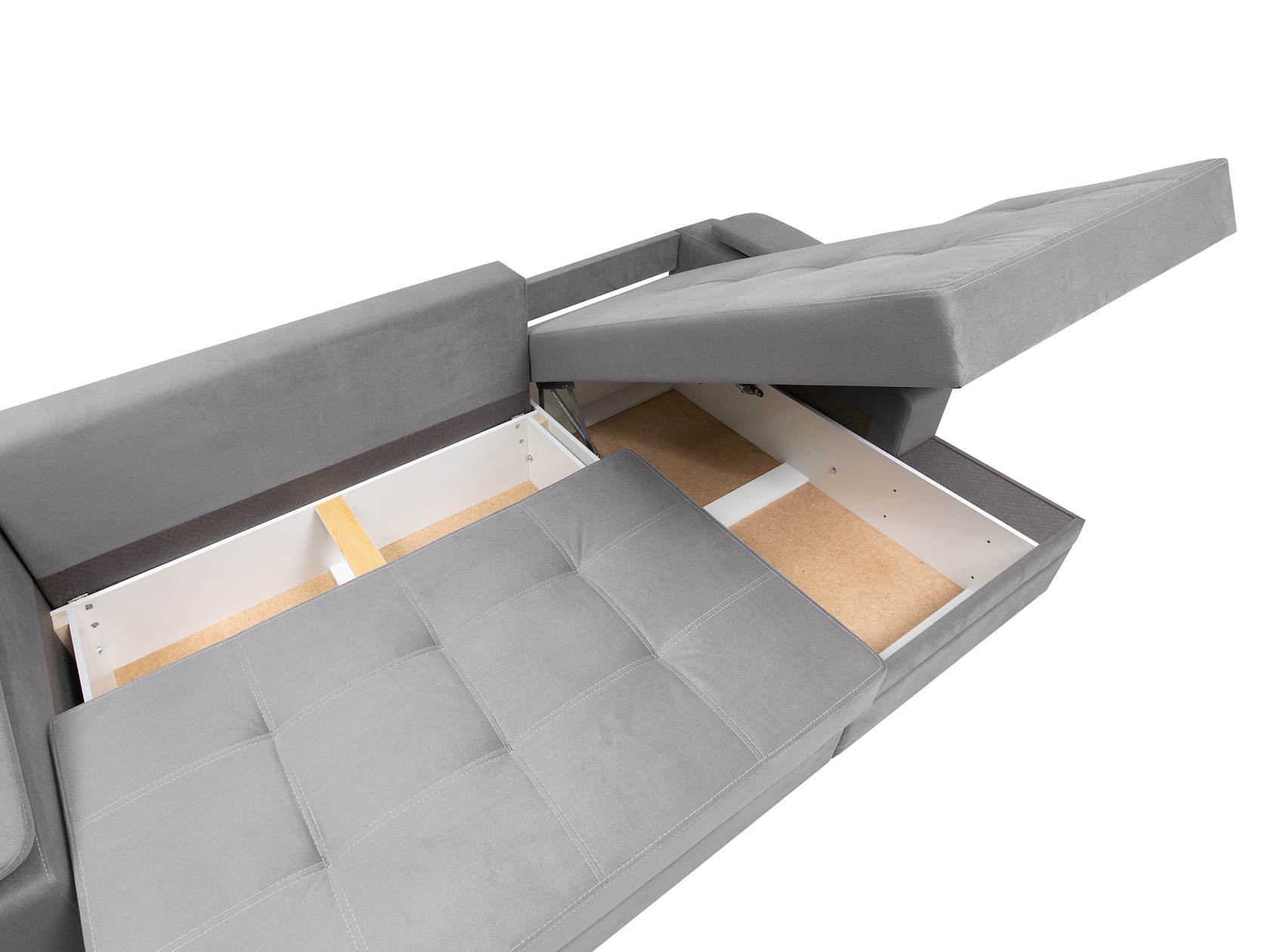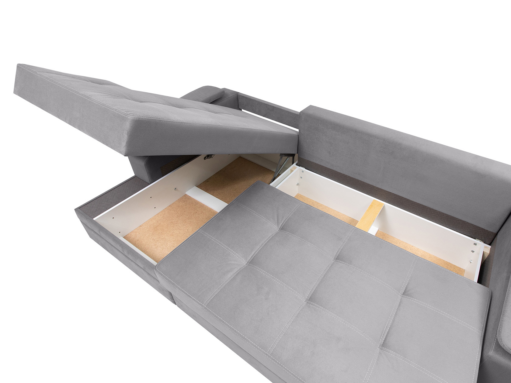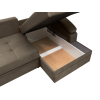 Важное преимущество дивана — возможность быстрой трансформации в полноценное спальное место. В основании и оттоманке предусмотрены коробы для постельного белья, запасных одеял, подушек или пледов.