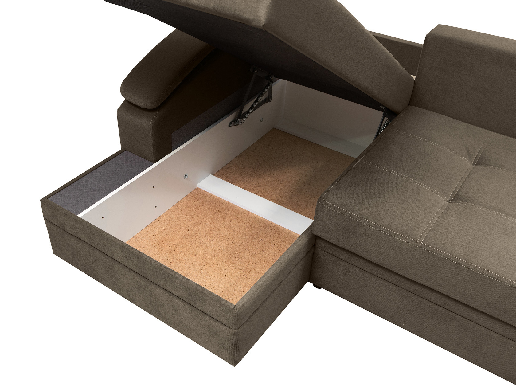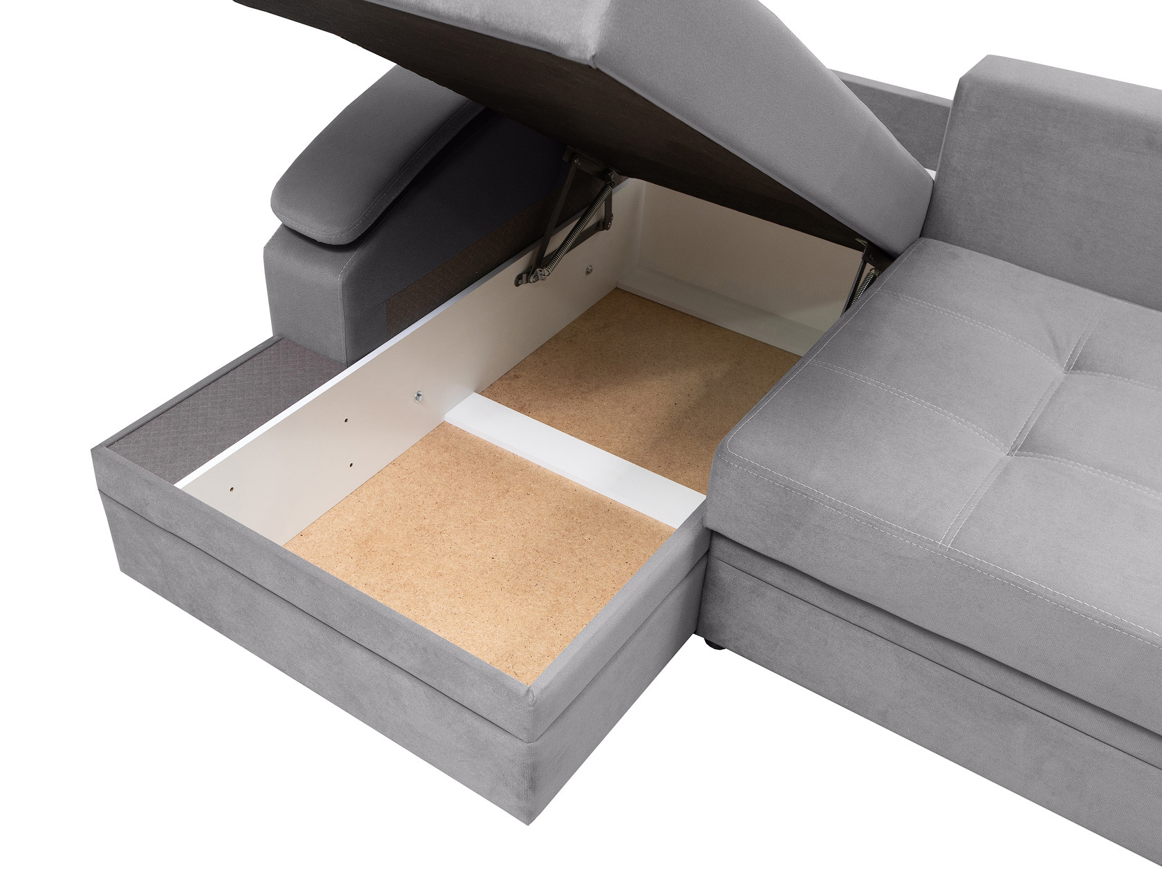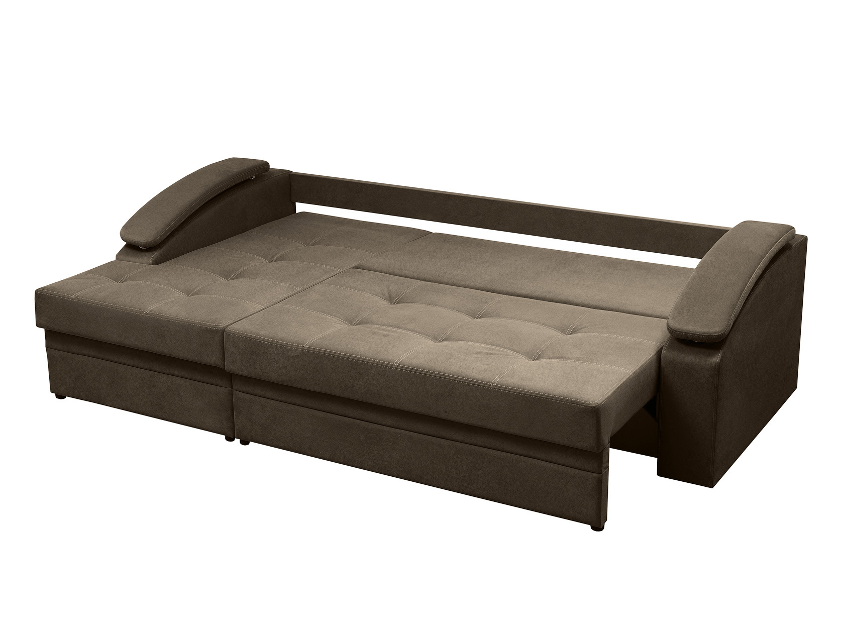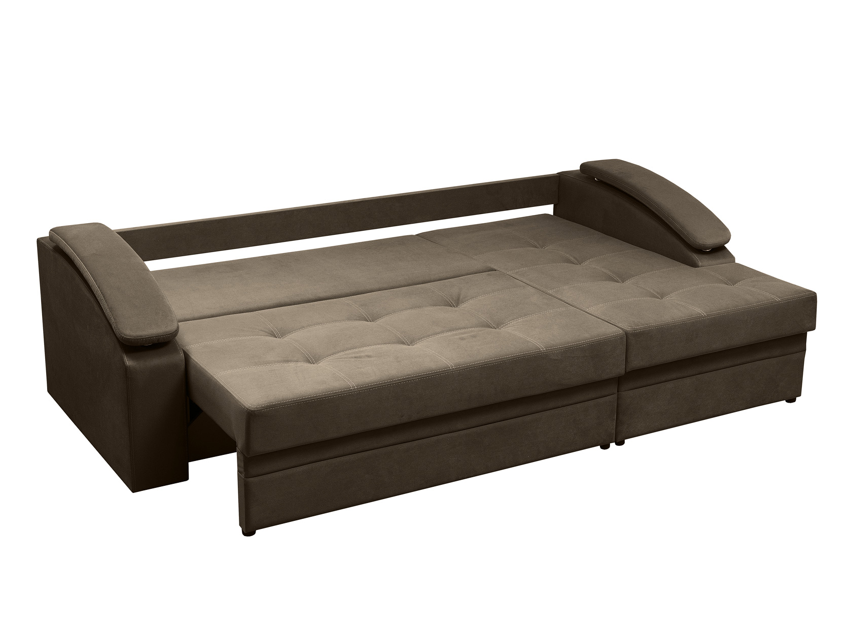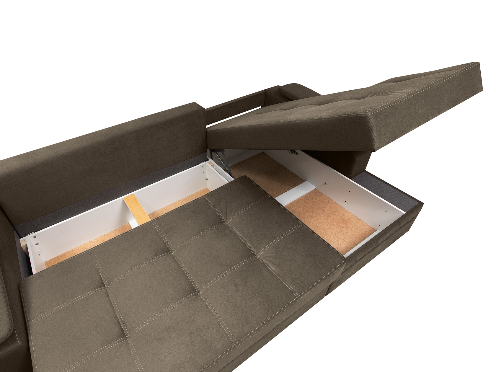 Важное преимущество дивана — возможность быстрой трансформации в полноценное спальное место. В основании и оттоманке предусмотрены коробы для постельного белья, запасных одеял, подушек или пледов.
