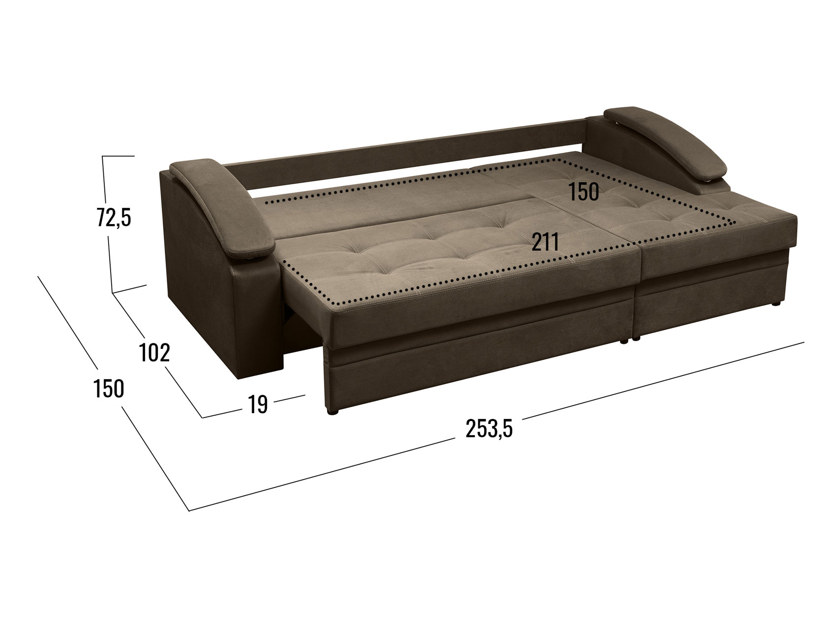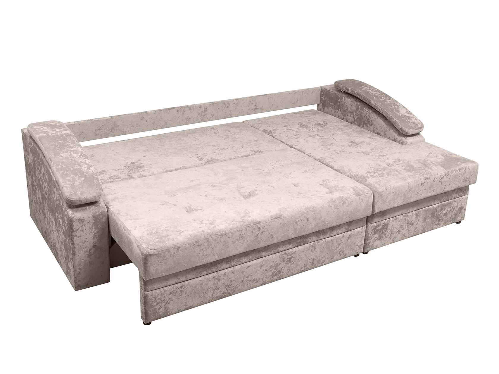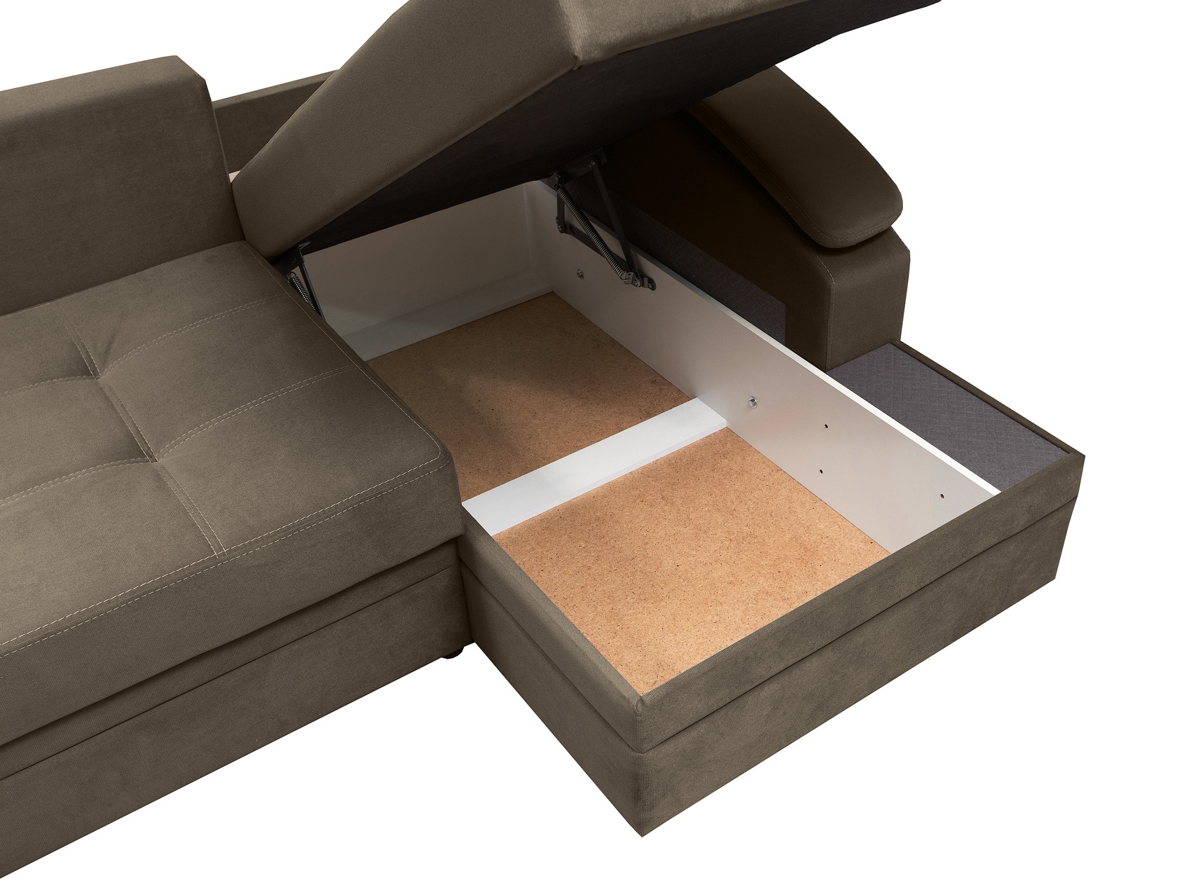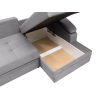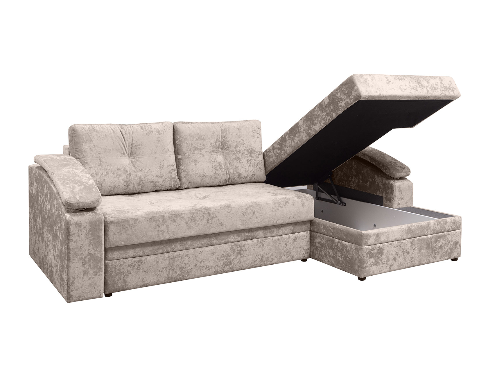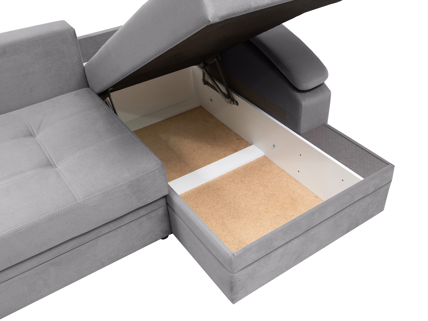 Важное преимущество дивана — возможность быстрой трансформации в полноценное спальное место. В основании и оттоманке предусмотрены коробы для постельного белья, запасных одеял, подушек или пледов.