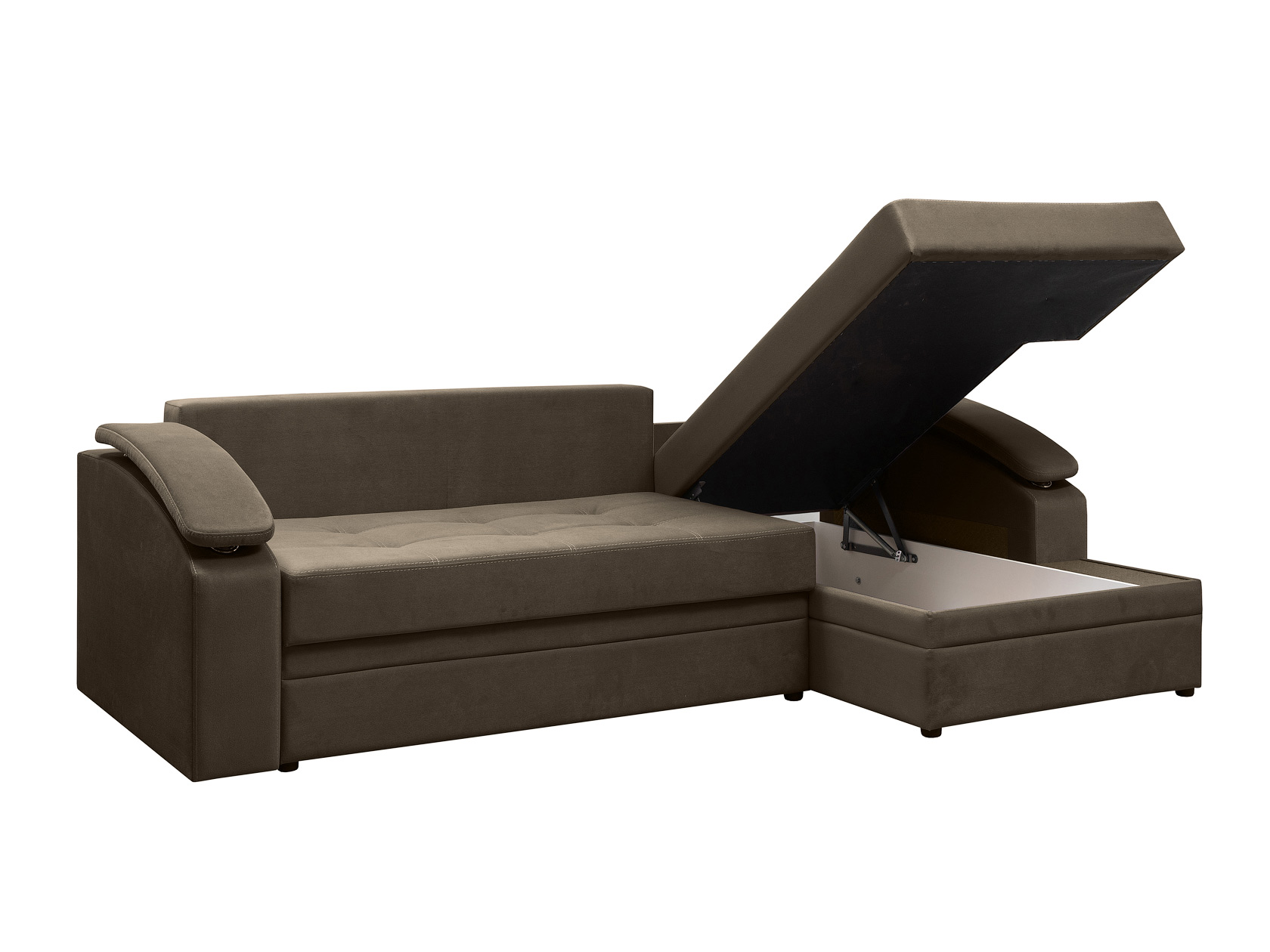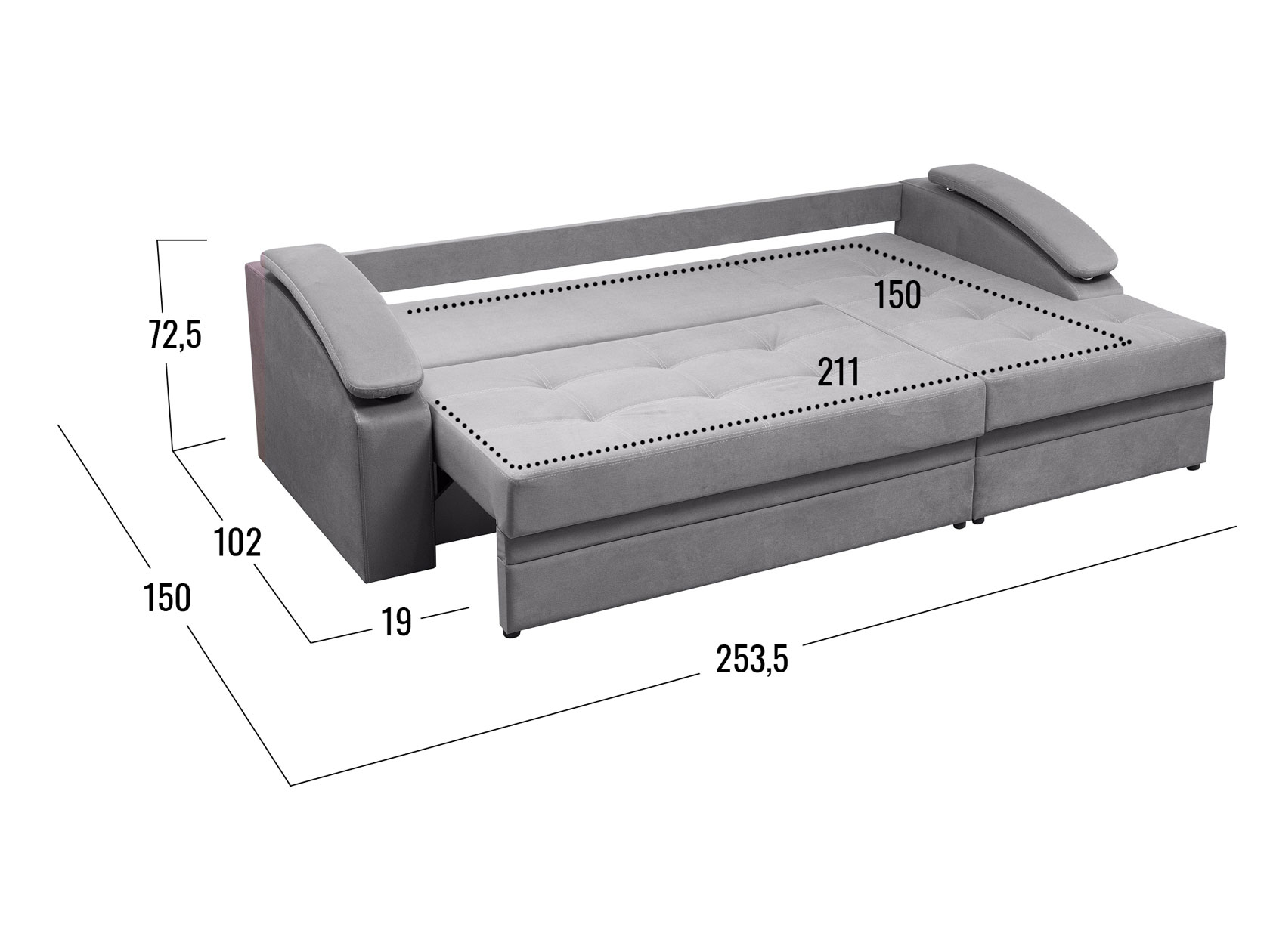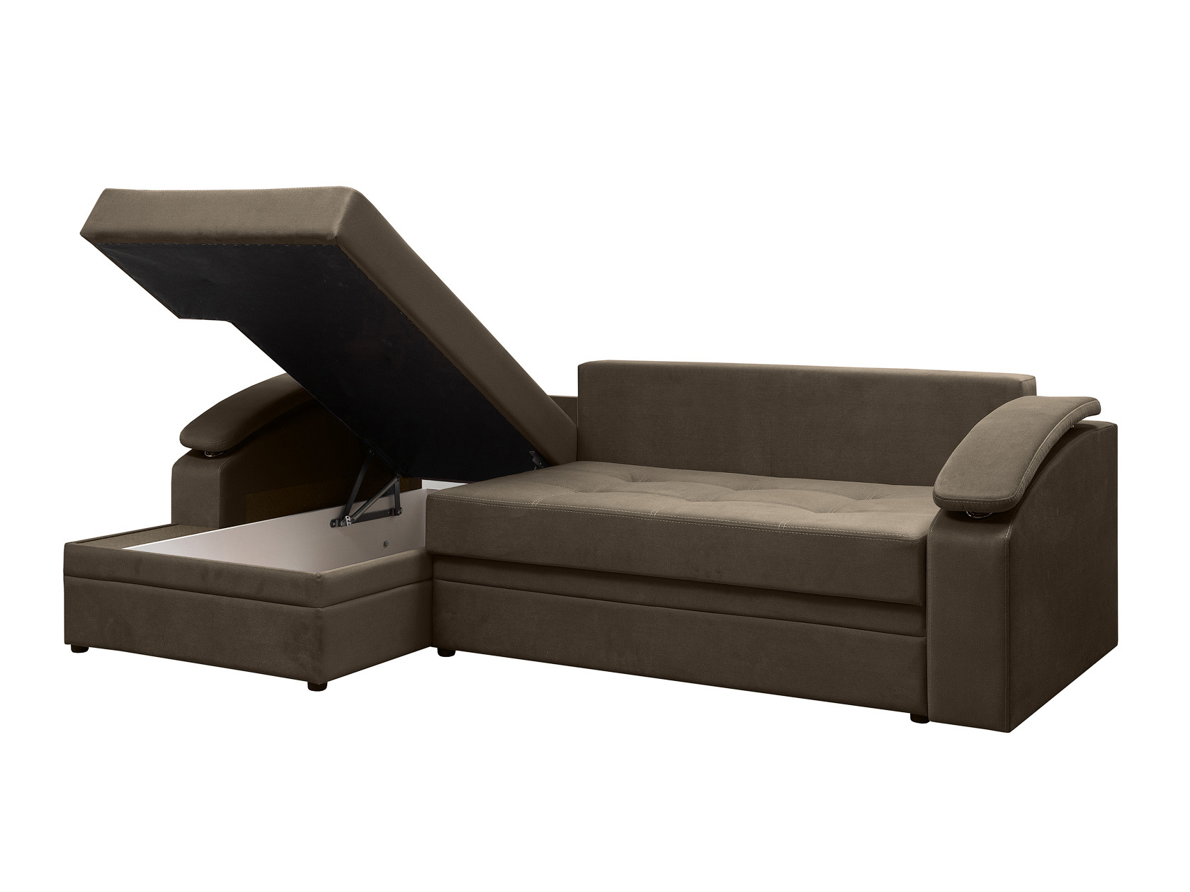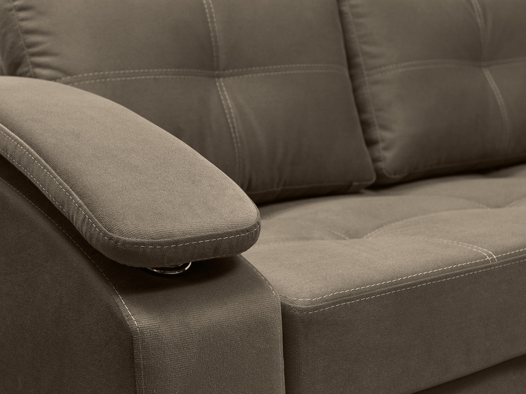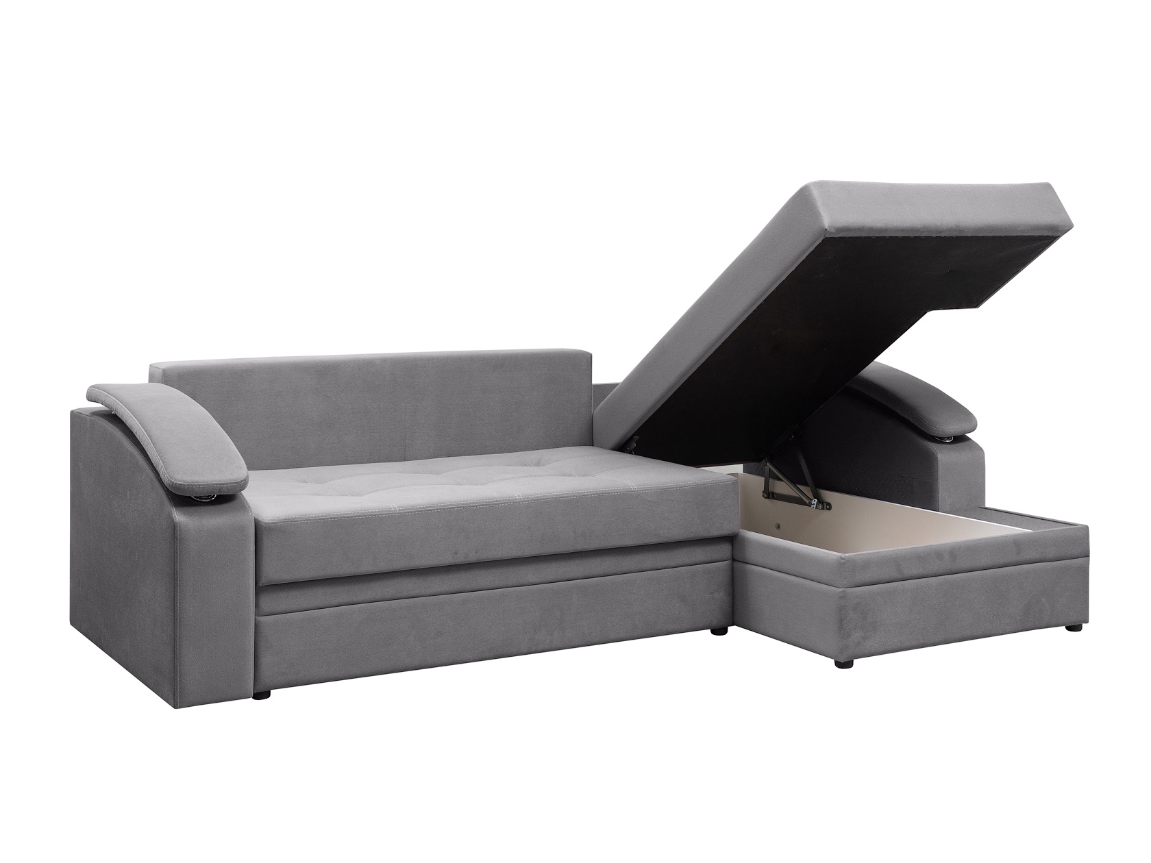 Важное преимущество дивана — возможность быстрой трансформации в полноценное спальное место. В основании и оттоманке предусмотрены коробы для постельного белья, запасных одеял, подушек или пледов.