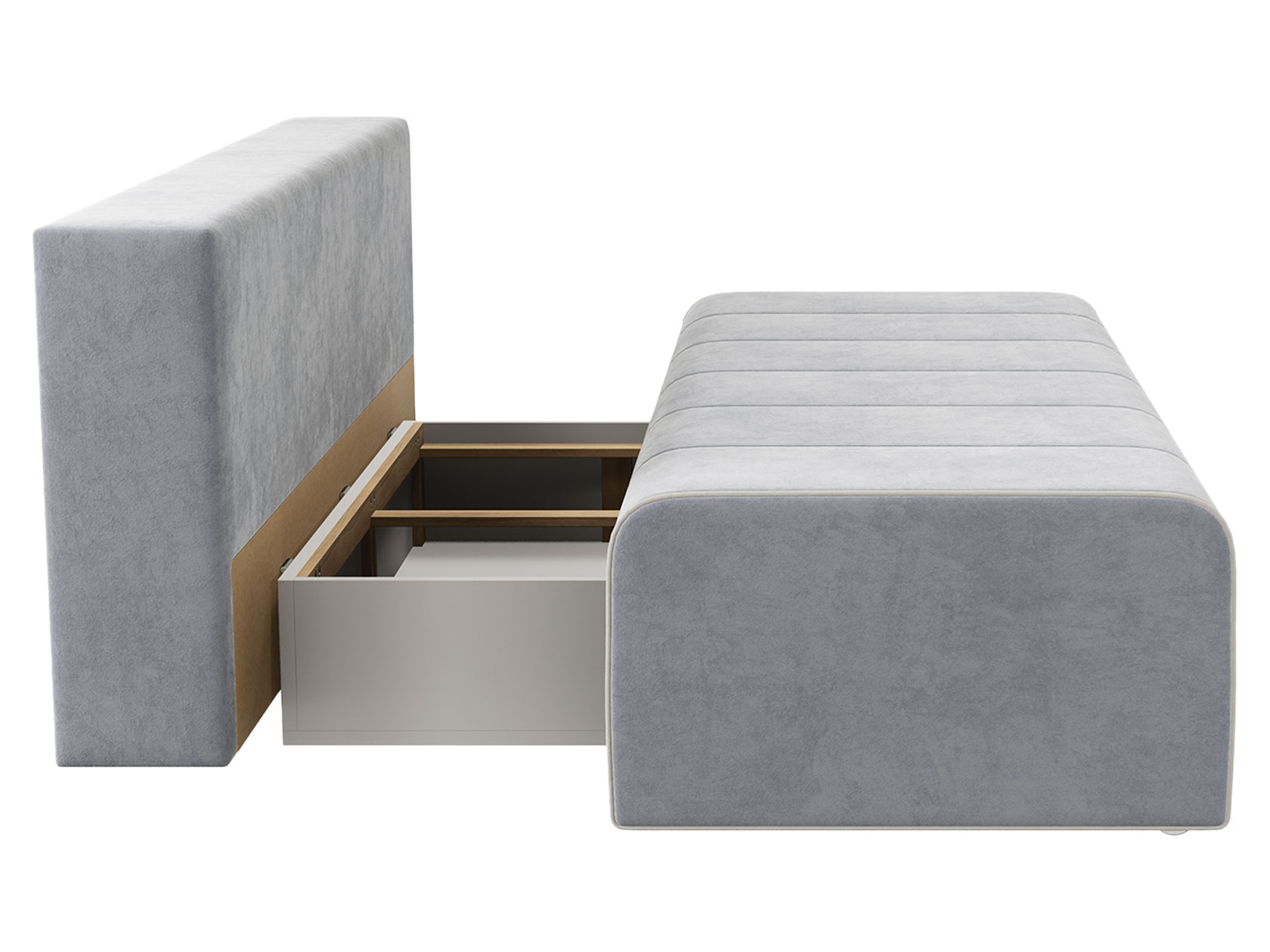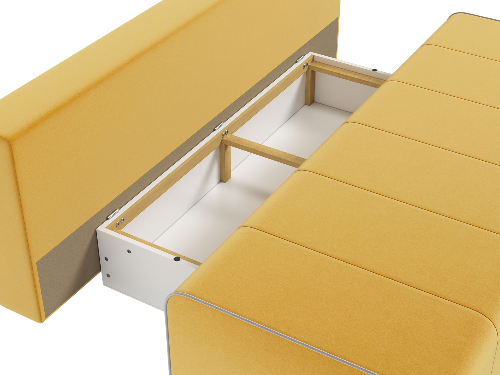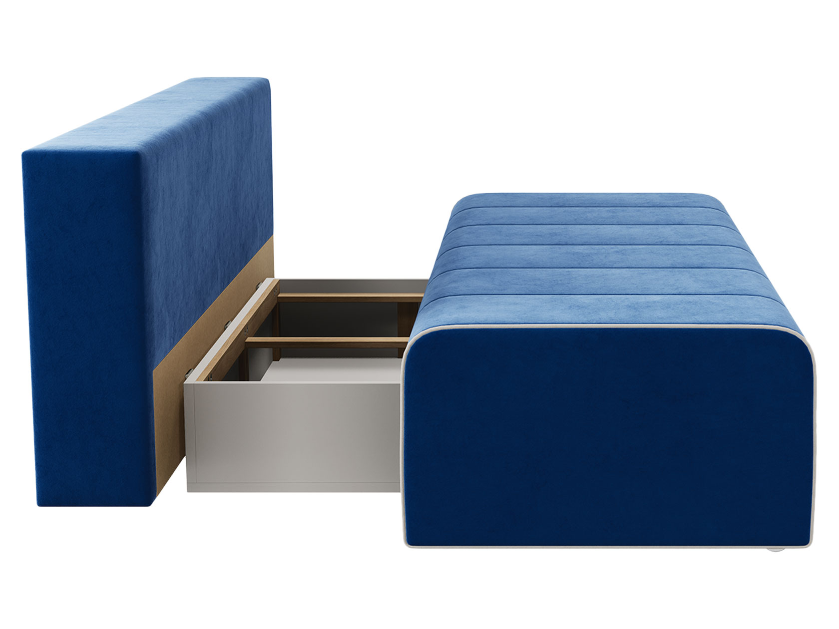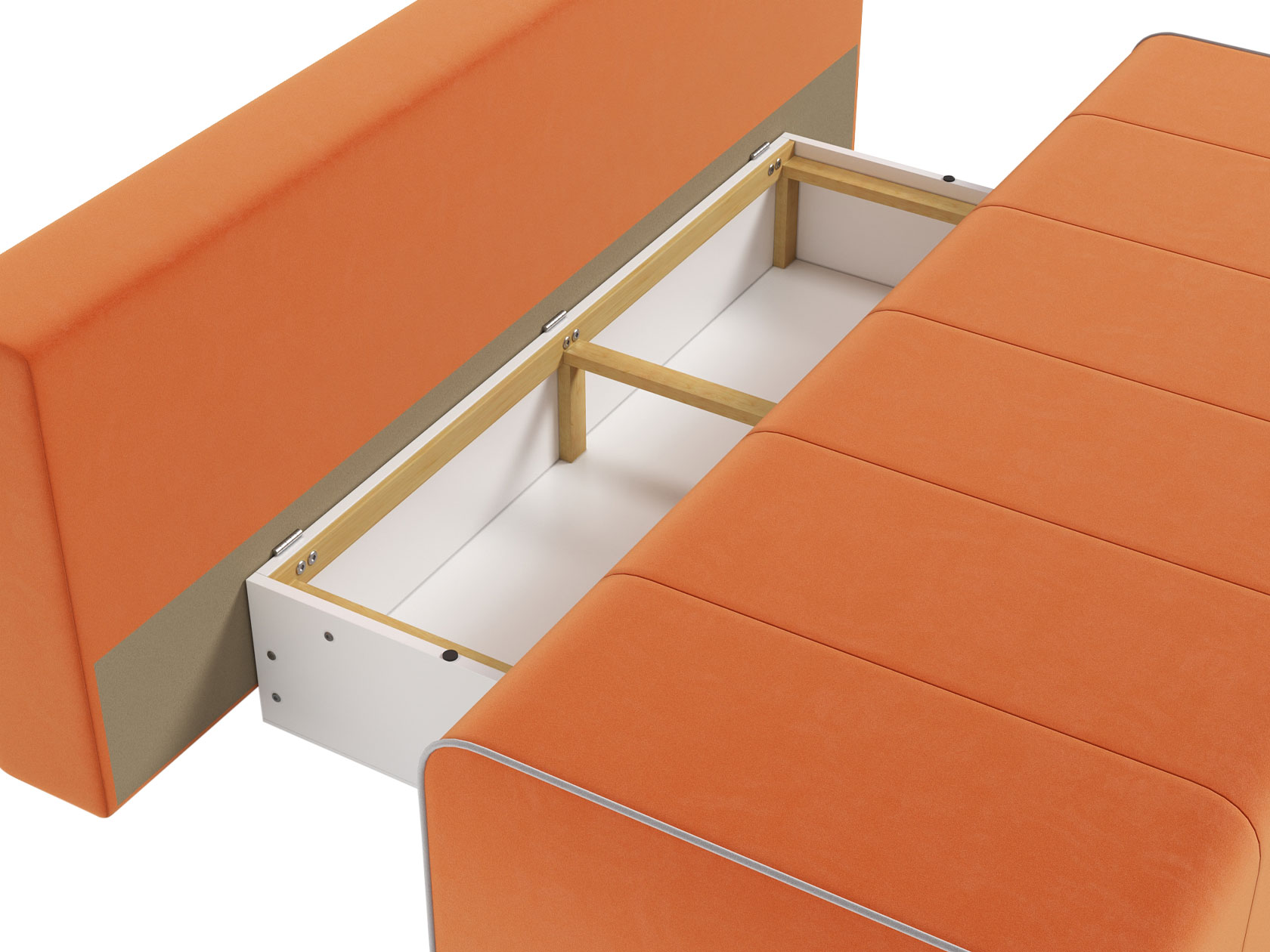 Конструкция равномерно распределяет нагрузку, а механизм трансформации мгновенно превращает диван в полноценную спальную зону. Модель также предусматривает вместительный короб для хранения постельных принадлежностей.