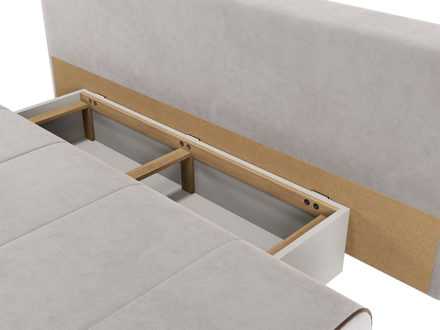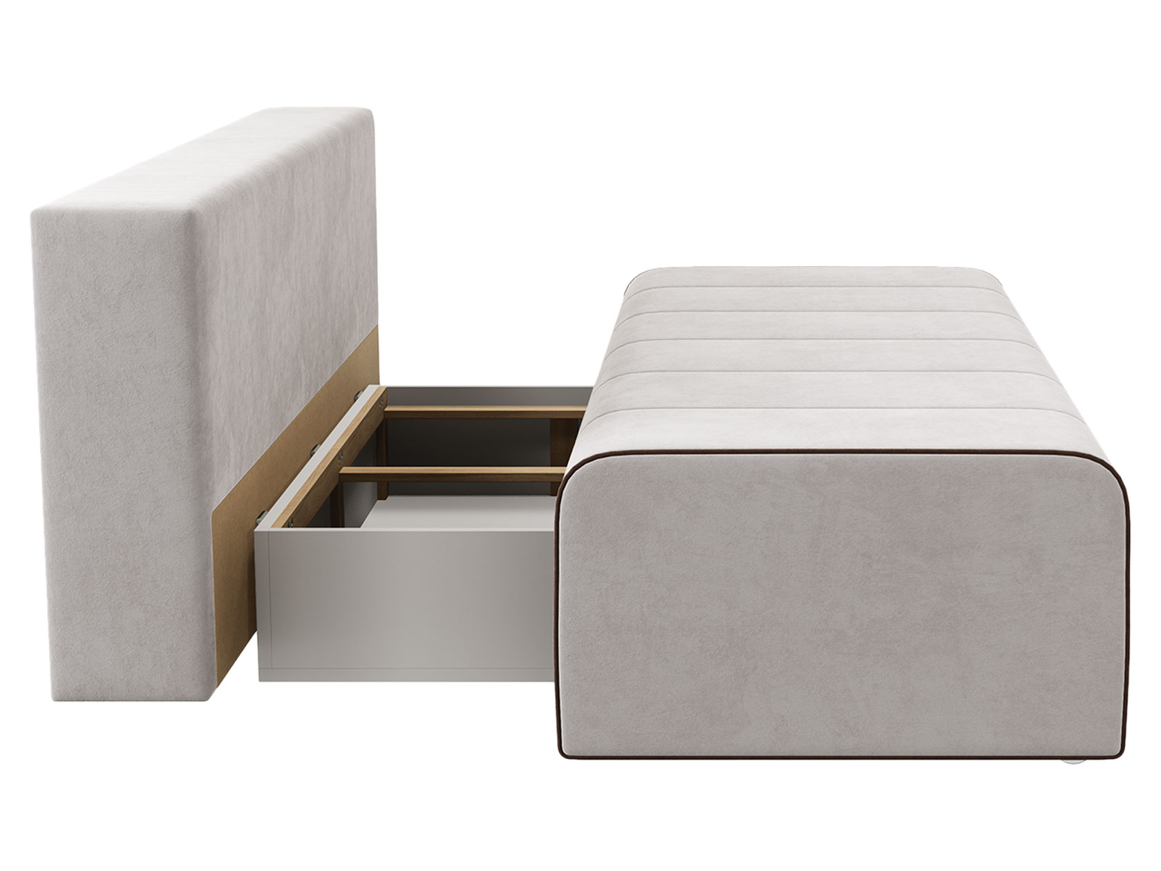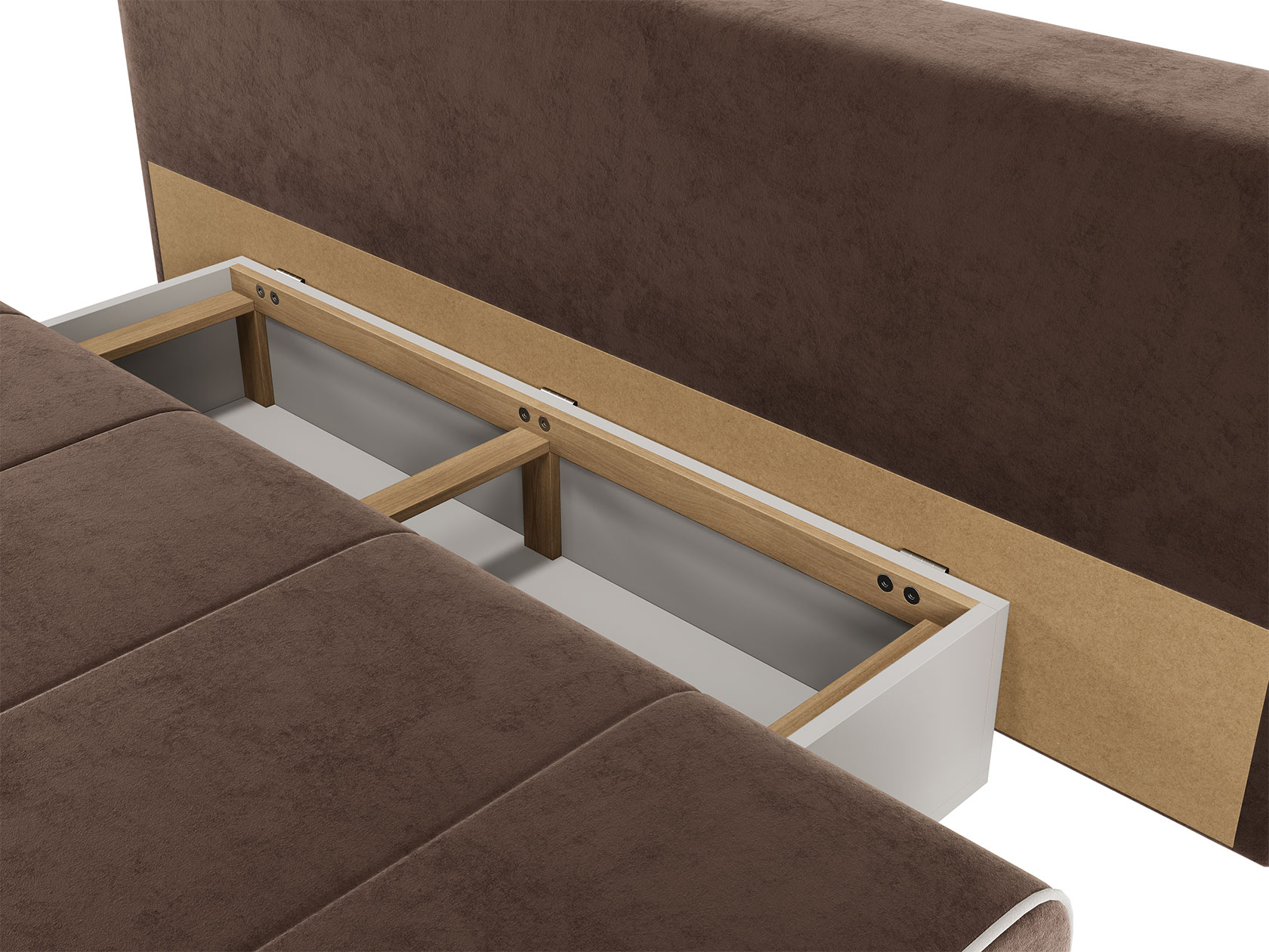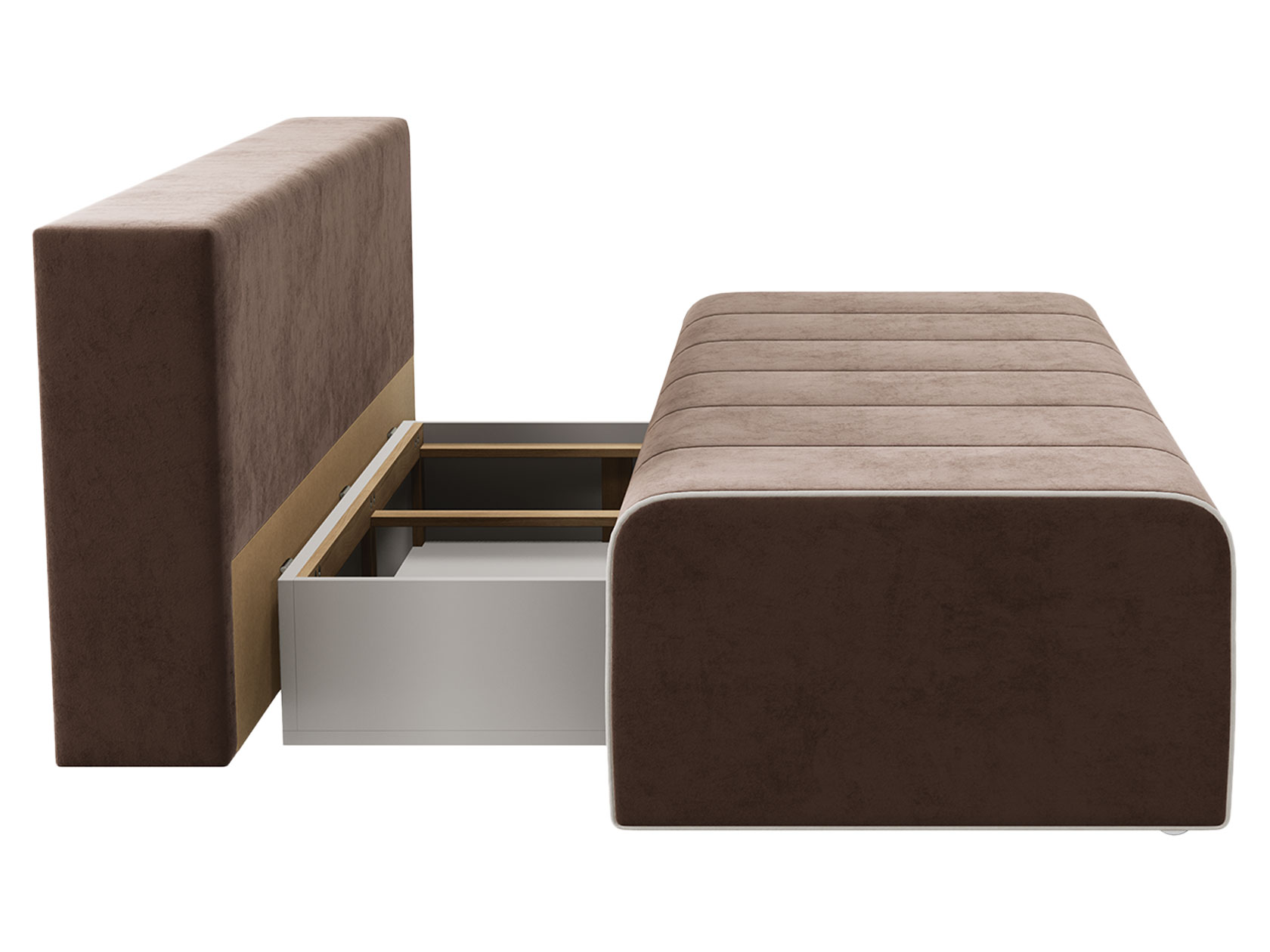 Конструкция равномерно распределяет нагрузку, а механизм трансформации мгновенно превращает диван в полноценную спальную зону. Модель также предусматривает вместительный короб для хранения постельных принадлежностей.