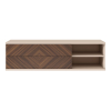 ТВ-тумба Хармони 2 ящика разместит необходимые предметы в быстром доступе. Подвесная конструкция экономит пространство на полу и облегчает уборку. На поверхности можно расположить мультимедийную технику, а на полках и в ящиках — печатную продукцию и книги. Изящный и в то же время простой дизайн с природным узором привлекательно смотрится в интерьере.