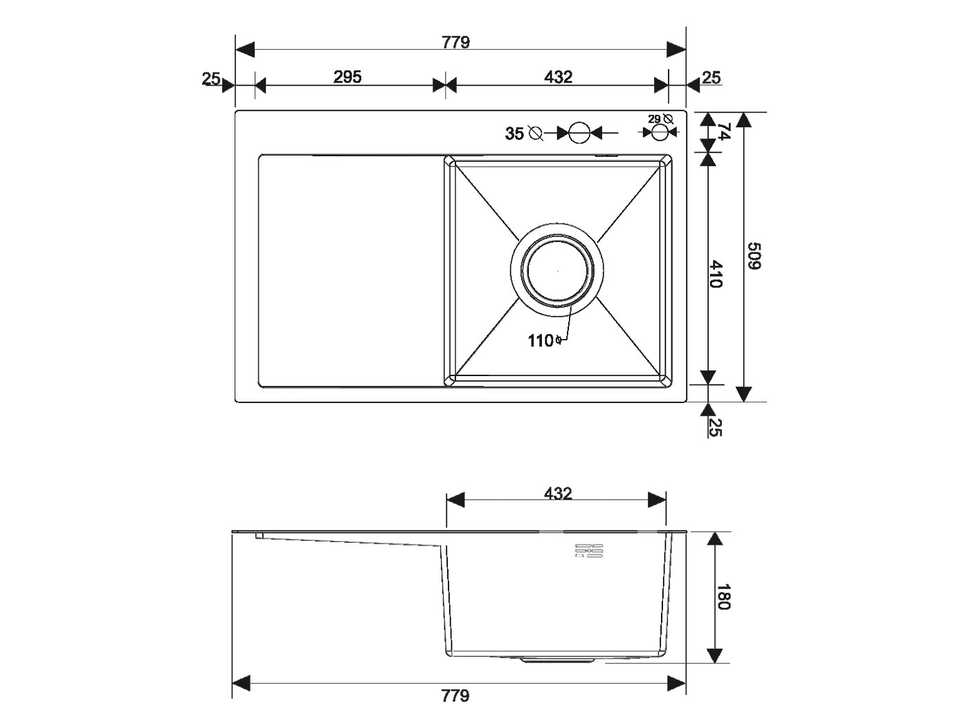 Габариты мойки: 77,9 х 50,9 х 18 см.