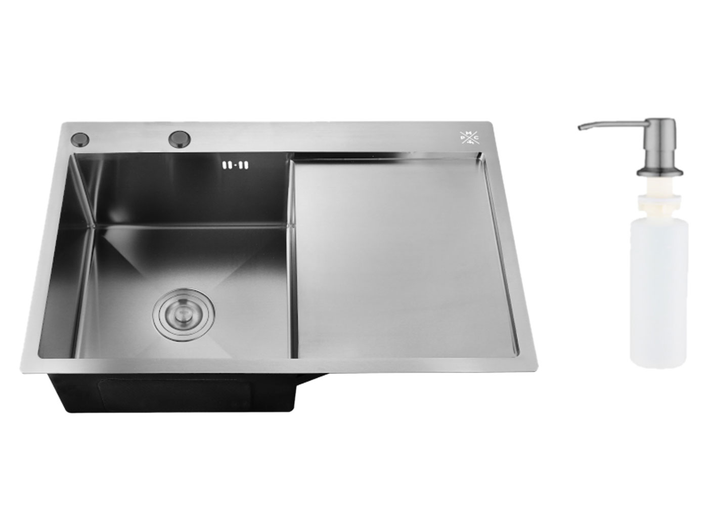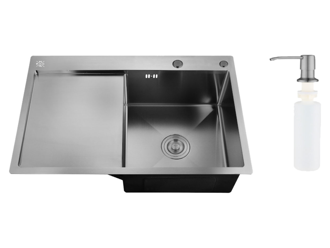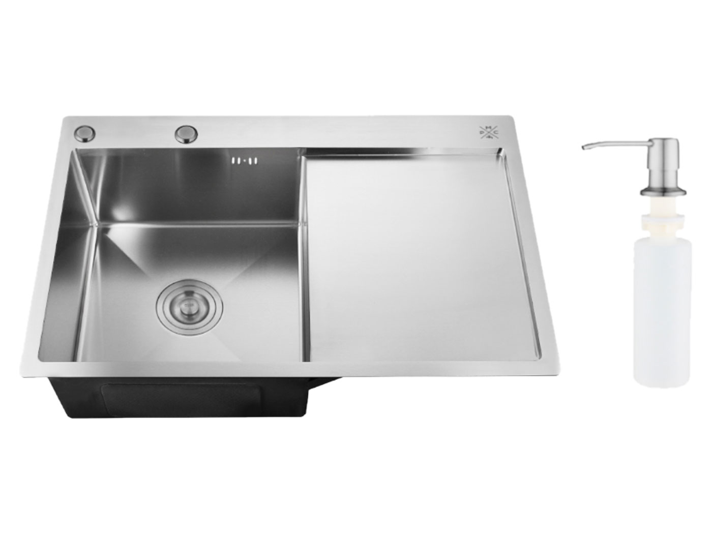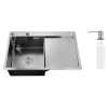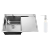 Врезная мойка с дозатором MRK-7851 подойдут для тех, кто ценит практичность и минимализм. Вместительная чаша с отверстием под смеситель дополнит кухонный гарнитур и станет надежным помощником в выполнении повседневных обязанностей. В дозаторе удобно хранить жидкое мыло или моющие средства.