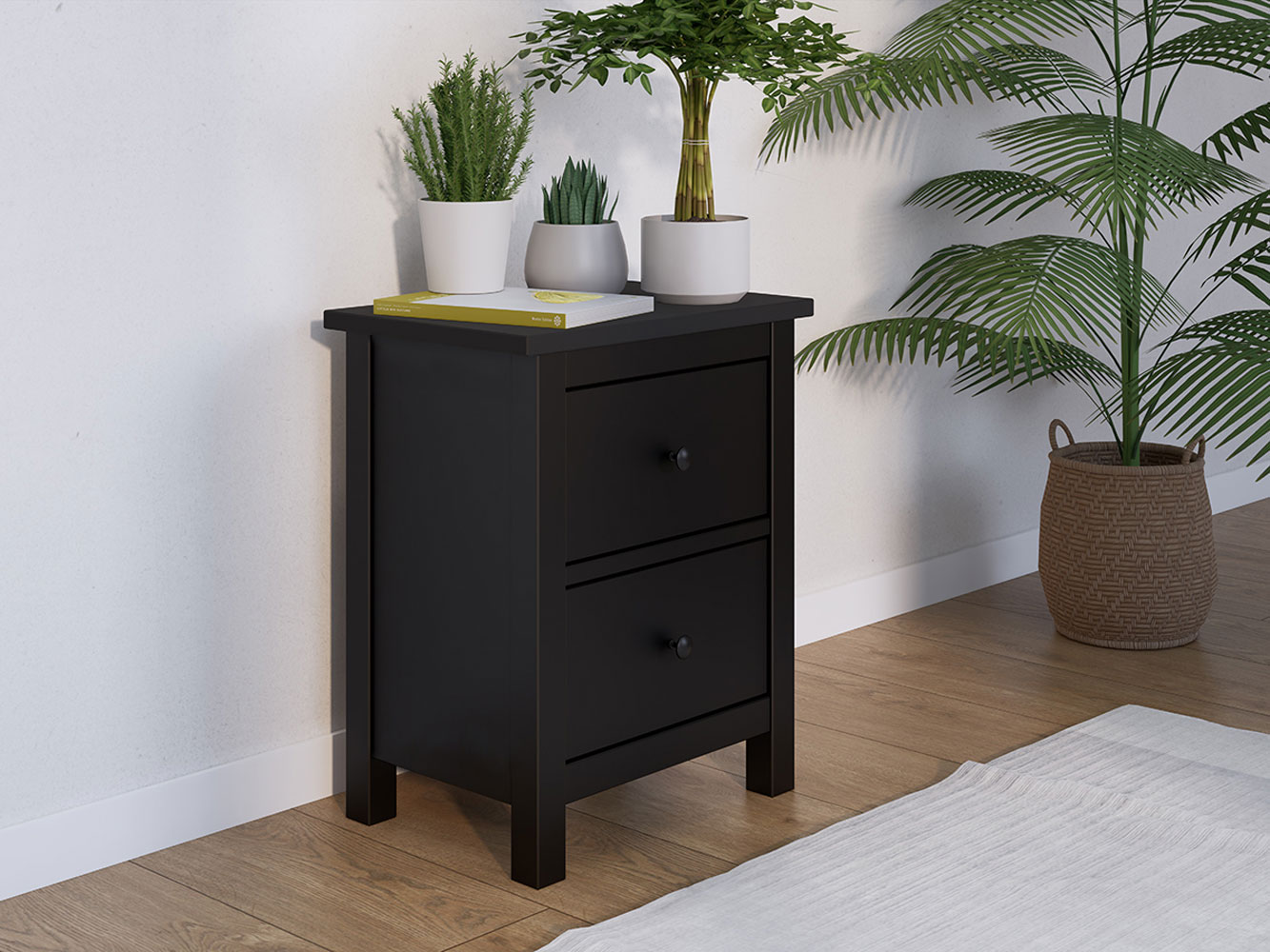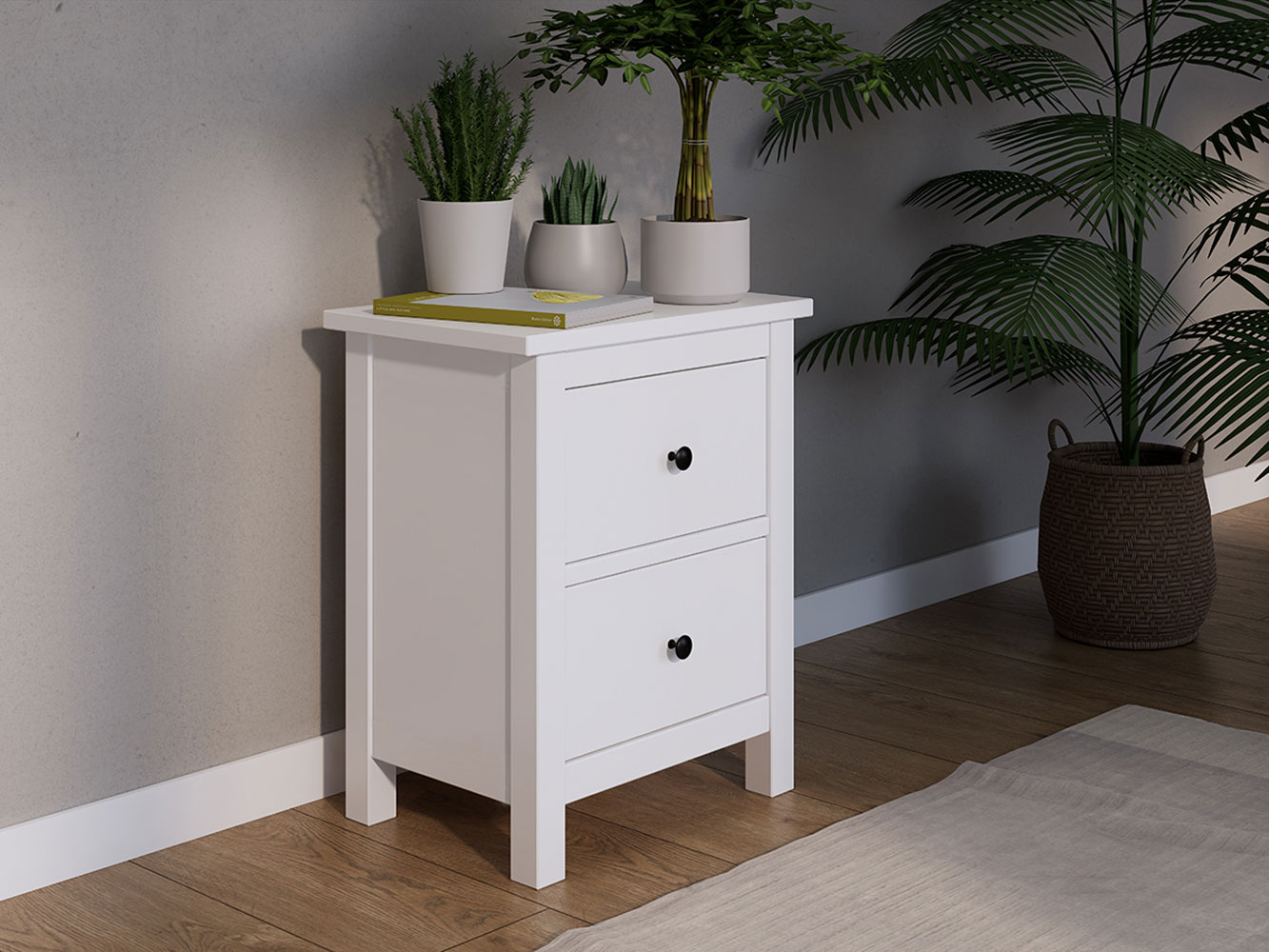 Комод Кымор 2 ящика — важный элемент мебели для комфортной обстановки в современной комнате. Выдвижные ящики помогут хранить различные мелочи, которые должны быть под рукой: электронную книгу, очки или зарядку для телефона. На поверхности можно разместить небольшой ночник или графин с водой. Модель достаточно компактная, а значит, подходит для ограниченного пространства.