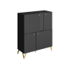 Комод Рено с дверцами — необычная модель, которая украсит интерьер любой комнаты. Компактная конструкция с четырьмя распашными фасадами позволит организовать хранение одежды, документов, аксессуаров и других вещей. Фрезеровка в виде вертикальных линий и золотистые ножки в цвет фурнитуры создают стильные акценты меблировки.