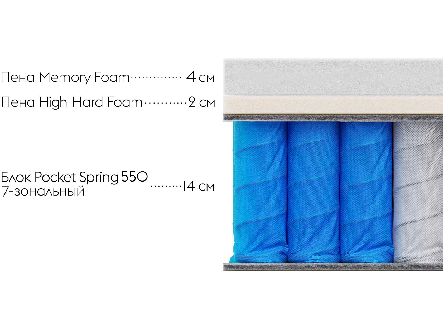 Comfort Plus SL 25 memory — самый мягкий в линейке. Мультизональный блок независимых пружин точечно поддерживает тело и способствует равномерному распределению веса по поверхности. Высокий слой пены с эффектом памяти мягко обволакивает контуры, снижая нагрузку на проблемные зоны.