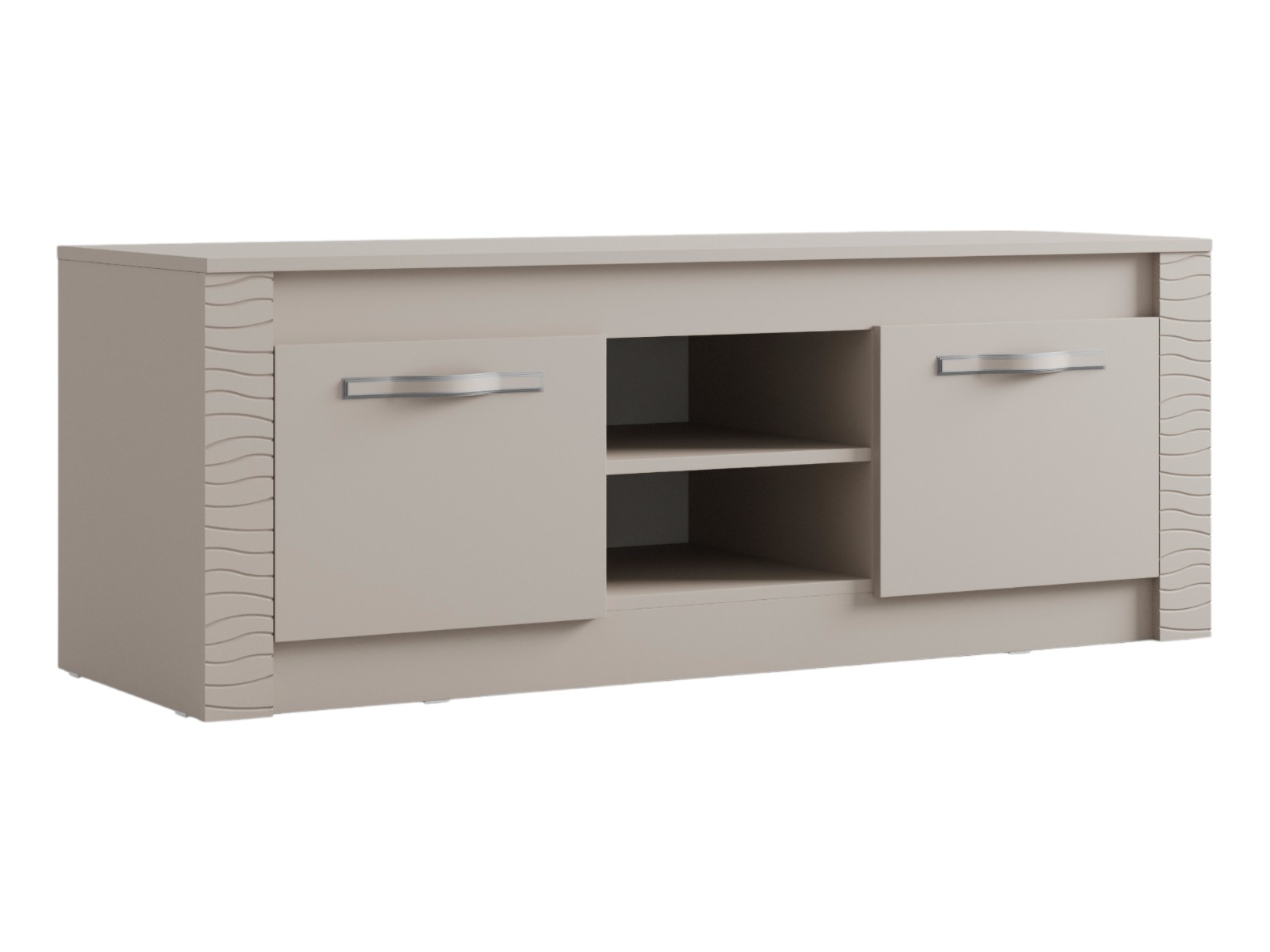 ТВ-тумба Далия — практичная модель для меблировки гостиной или спальни. В отделениях за распашными дверцами и открытой нише достаточно места для мультимедийной техники, дисков и различных гаджетов. Фрезеровка по бокам добавляет стильные акценты интерьеру комнаты.