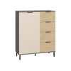 Детский комод Марвэл 4 ящика 1 дверца — практичное решение для хранения разных категорий вещей. Отделение со штангой можно использовать для юбок и брюк от школьных костюмов, а в выдвижных ящиках — разместить белье, ремни, галстуки, шарфы и другие аксессуары. Минималистичная фурнитура позволяет легко открывать и закрывать фасады.