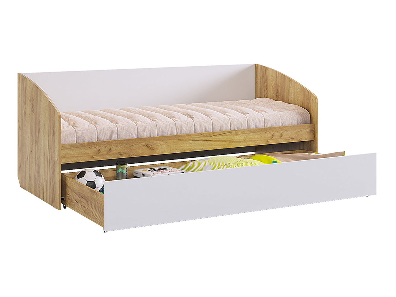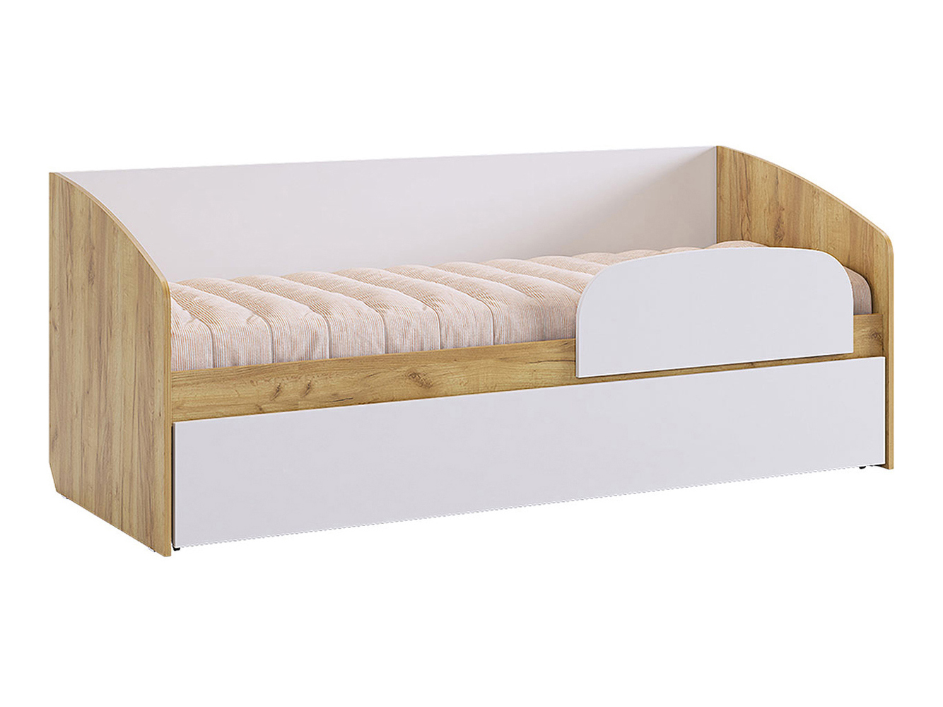 Детская кровать Форсаж станет удобным и безопасным местом для отдыха ребенка. Бортики и спинка защищают от падения во сне, а выдвижной ящик можно использовать для хранения постельных принадлежностей. Прочный каркас устойчив и надежен в ежедневном использовании.