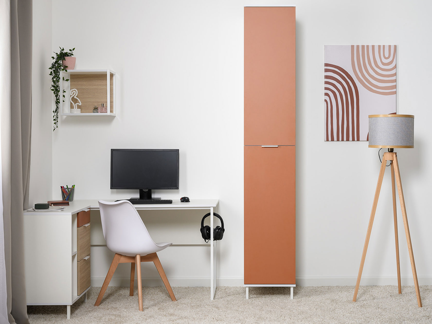 Детский шкаф Марвэл с выкатной секцией оборудован двумя разноплановыми отделениями для удобного расположения вещей. Модель станет идеальным дополнением рабочей зоны с письменным столом. За распашной дверцей находится секция с полками, которые можно использовать для хранения учебных материалов, книг и тетрадей. Выкатная тумба обеспечит место для канцелярских принадлежностей.
